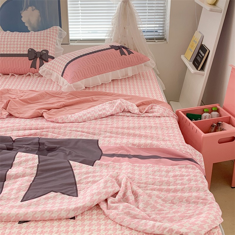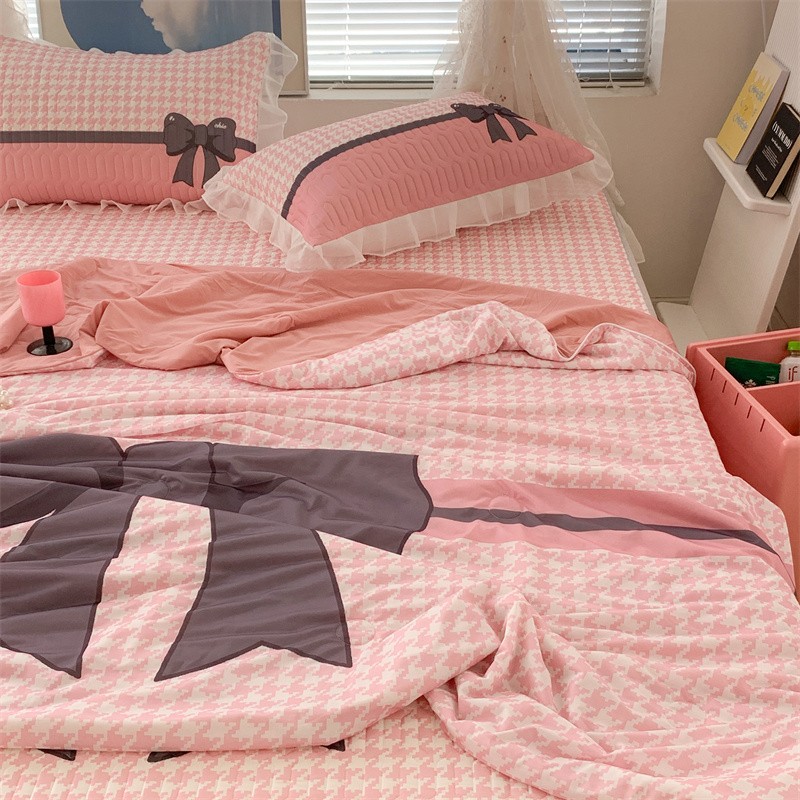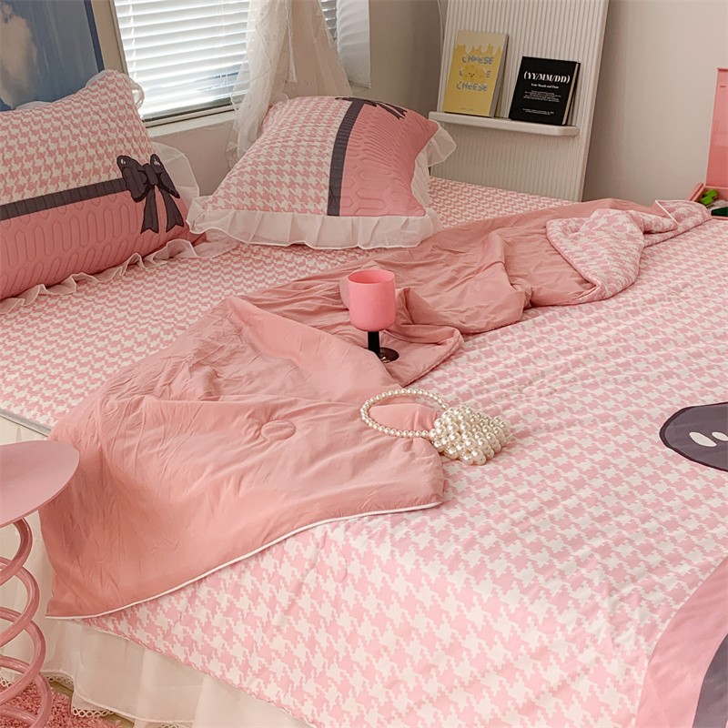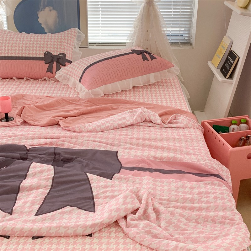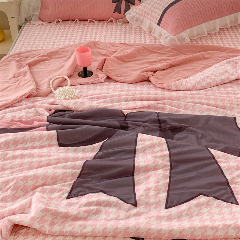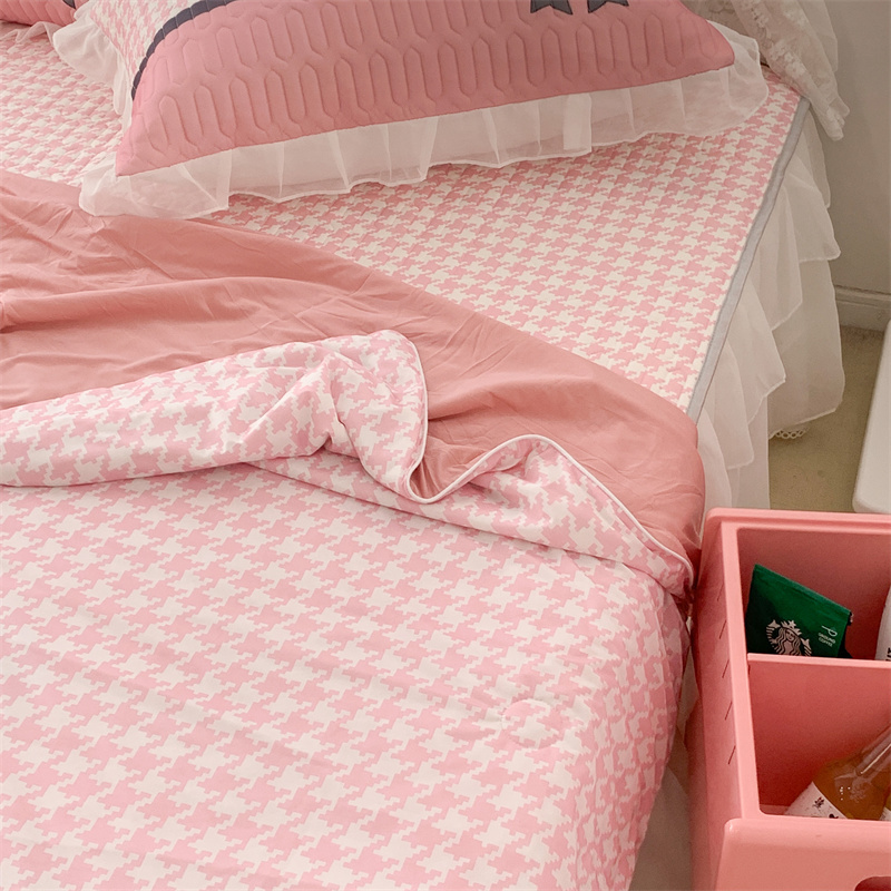 昔可 大版数码印花凉感夏被 粉粉千鸟格