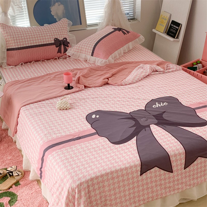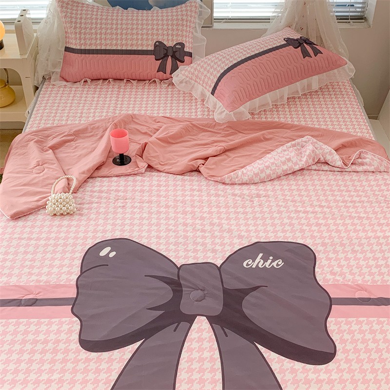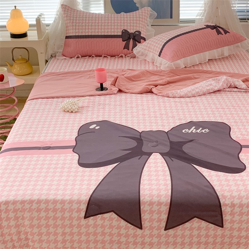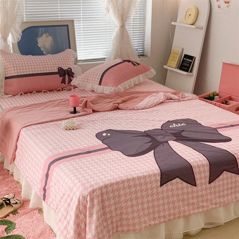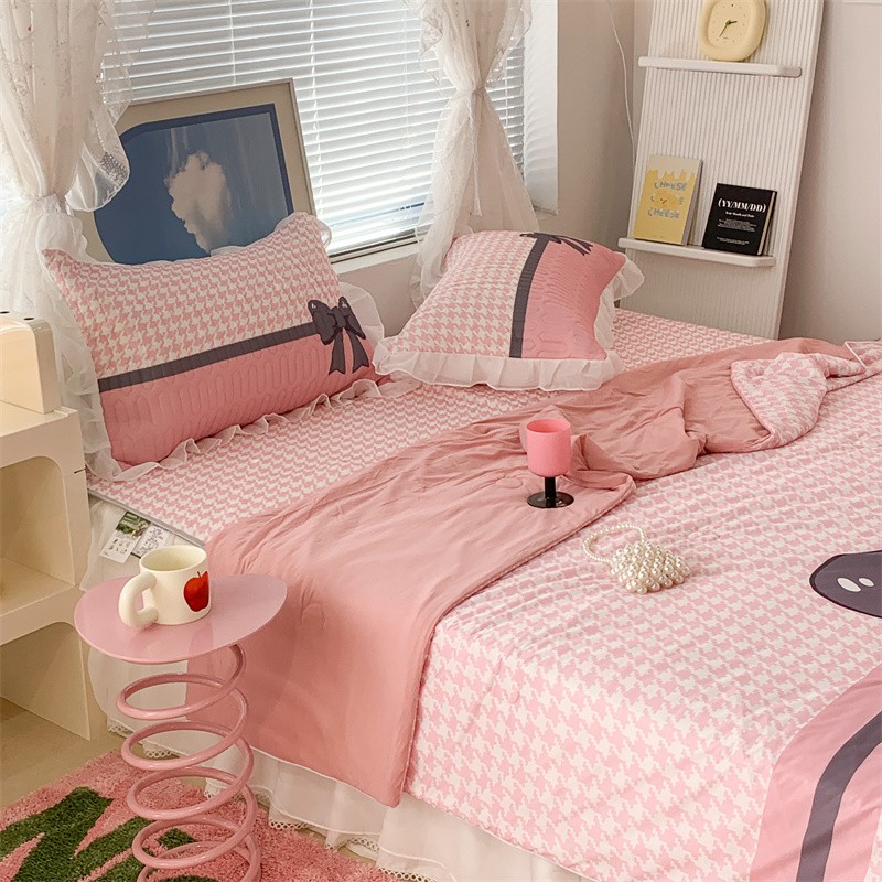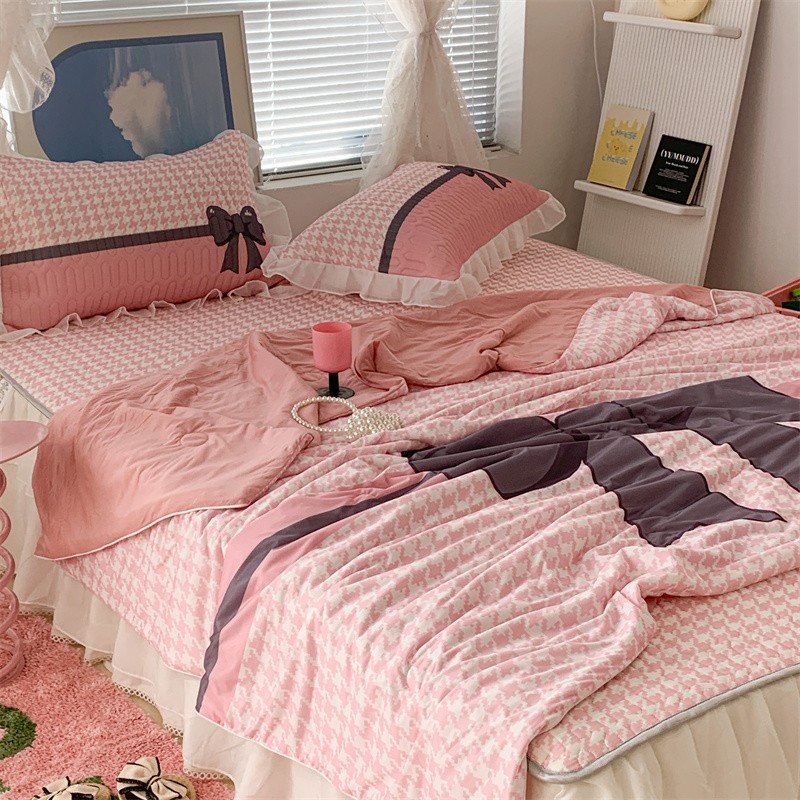 昔可 大版数码印花凉感夏被 粉粉千鸟格