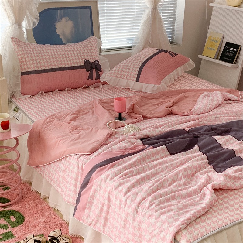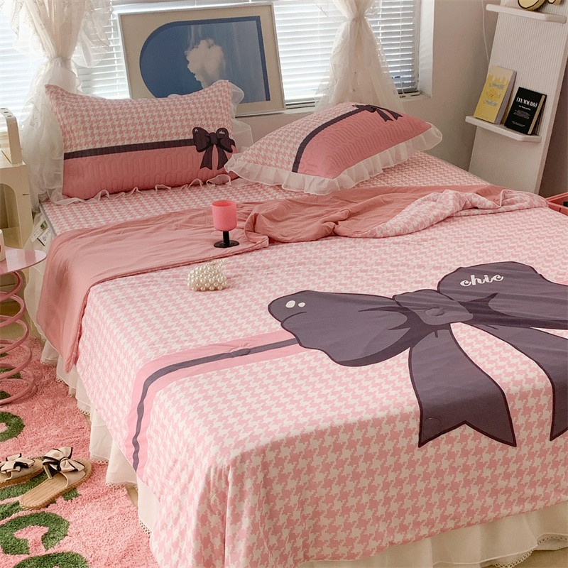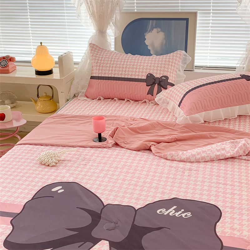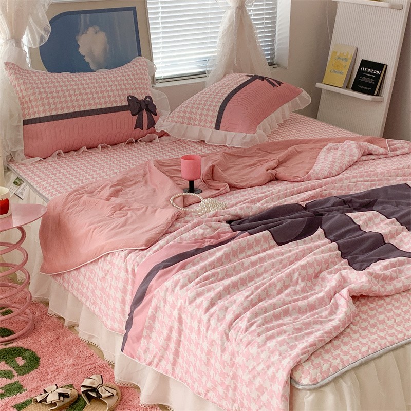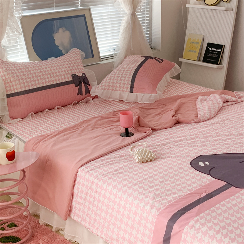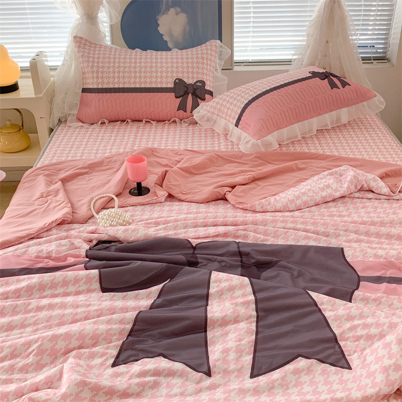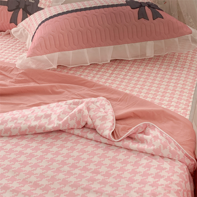 商品名称:昔可 大版数码印花凉感夏被 粉粉千鸟格
