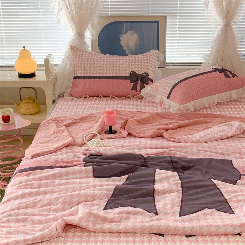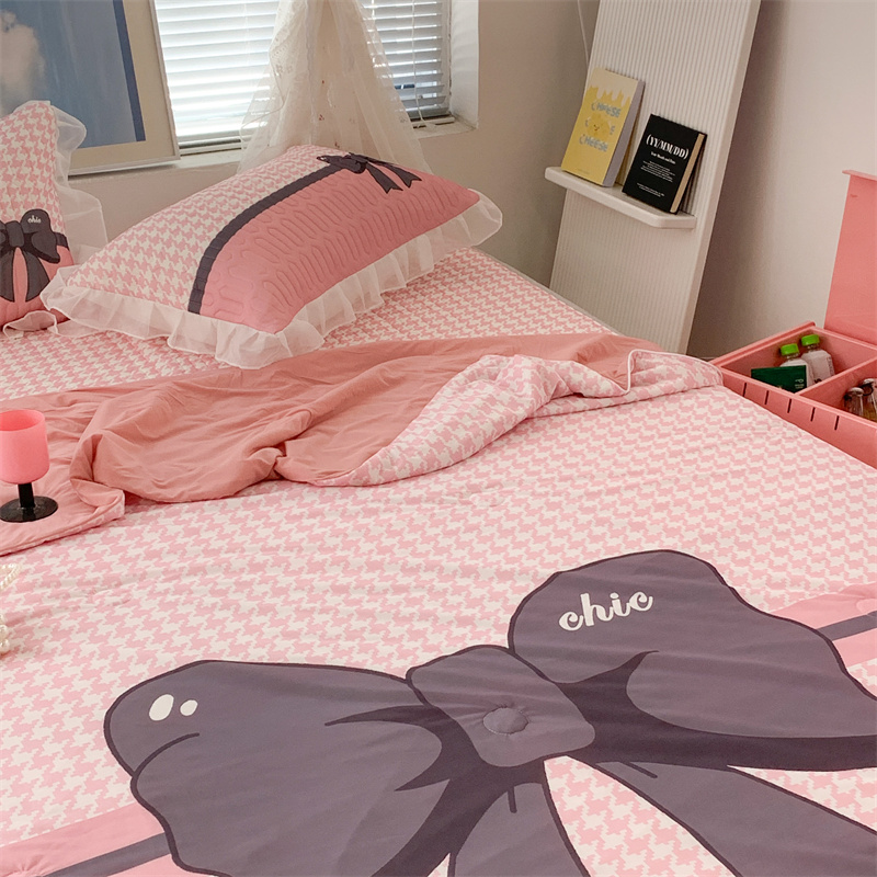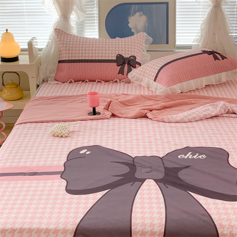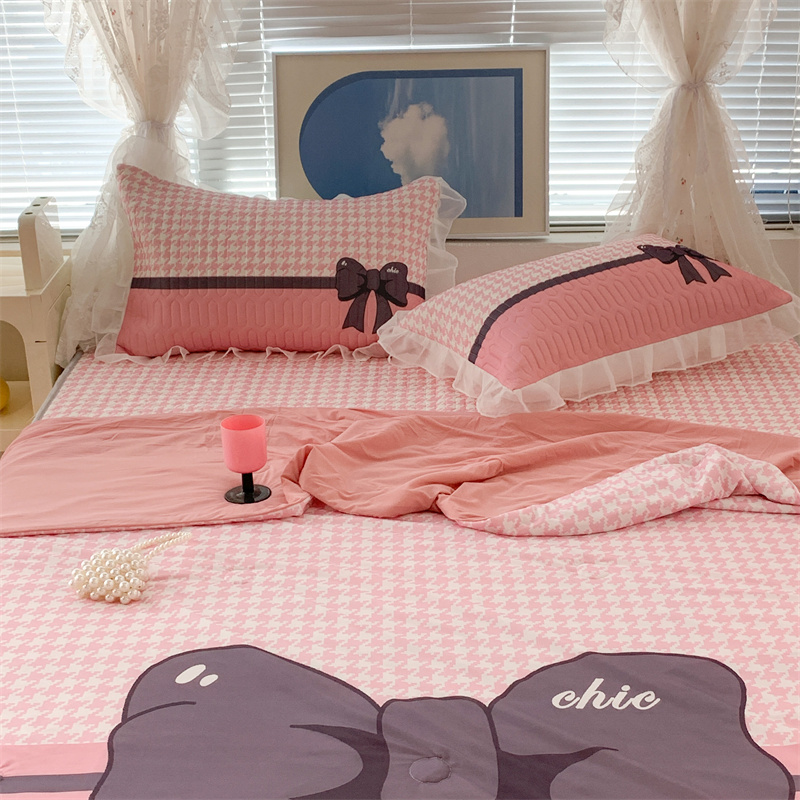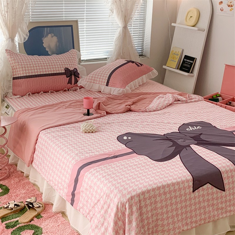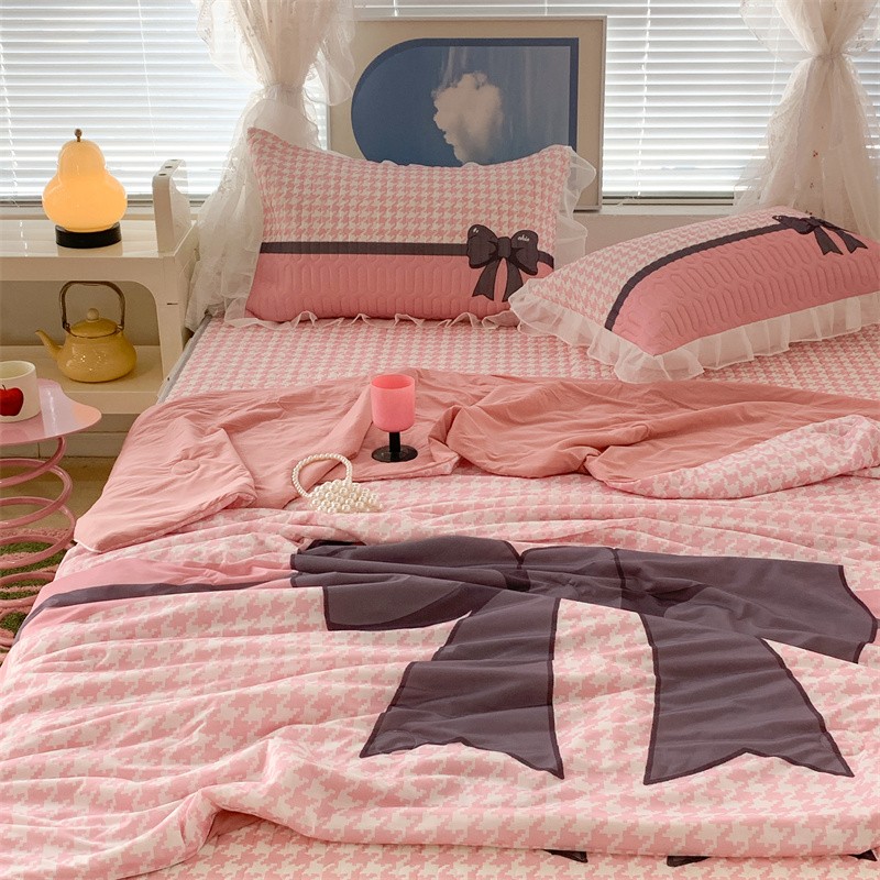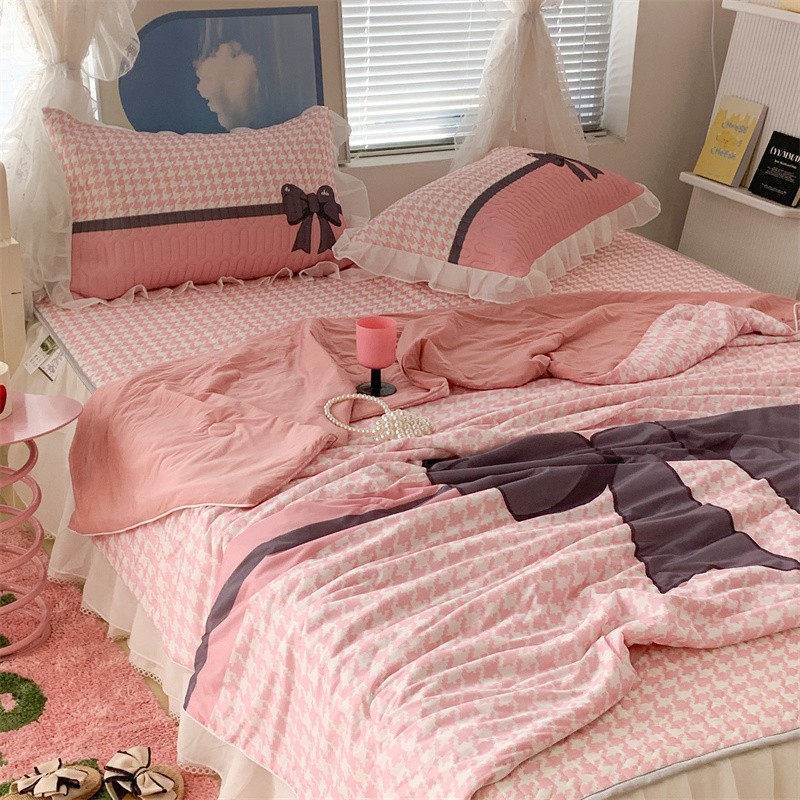 商品名称:昔可 大版数码印花凉感夏被 粉粉千鸟格