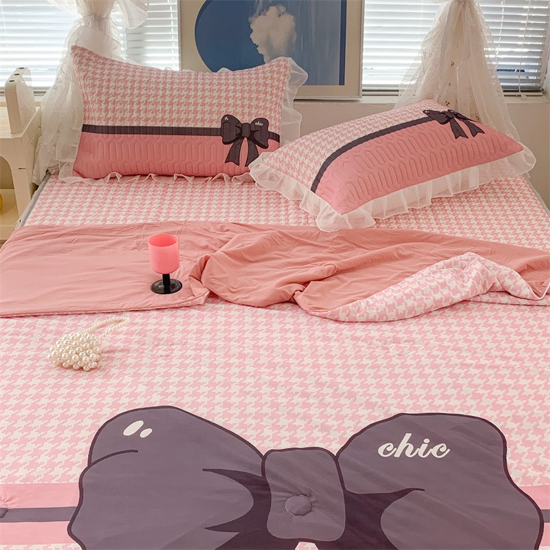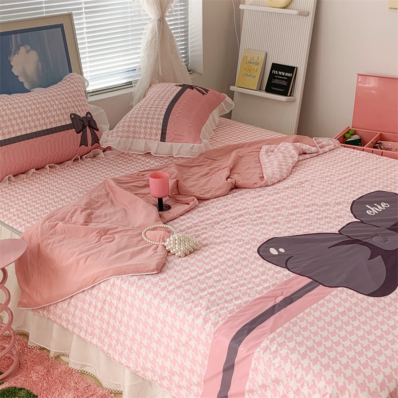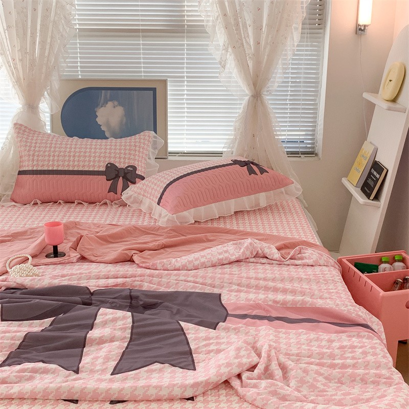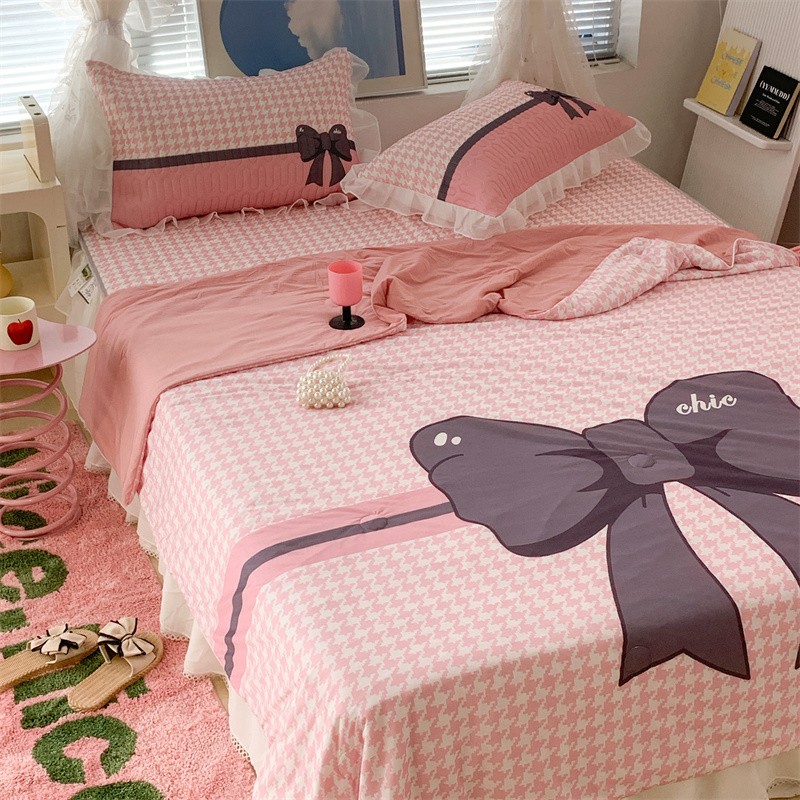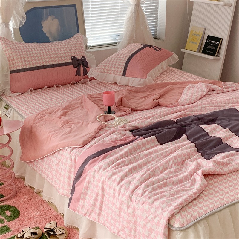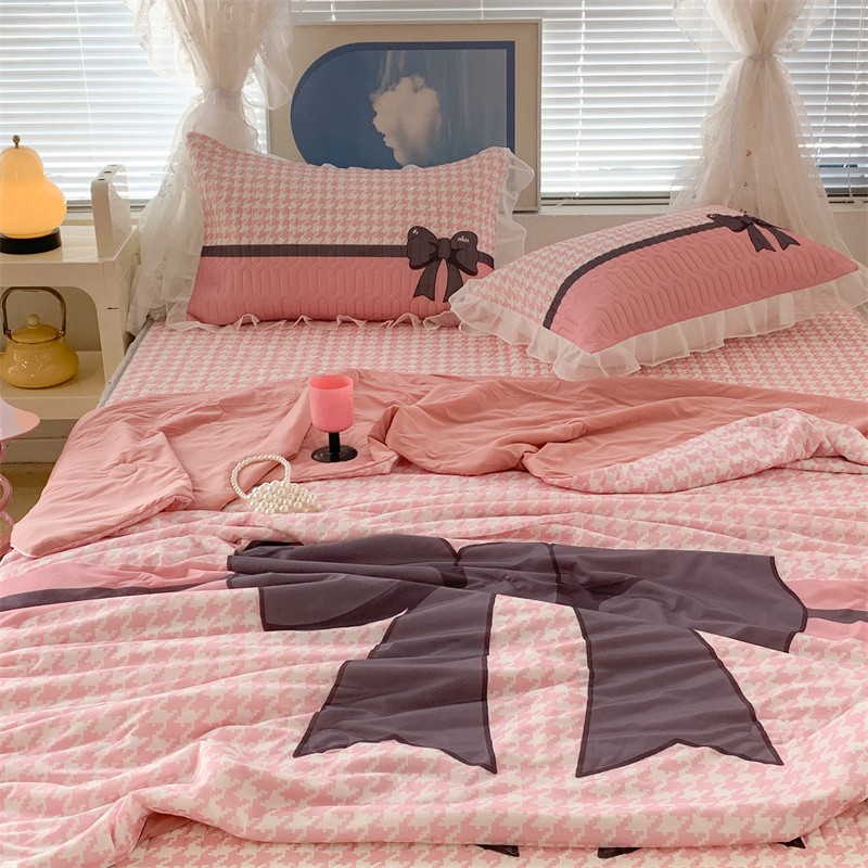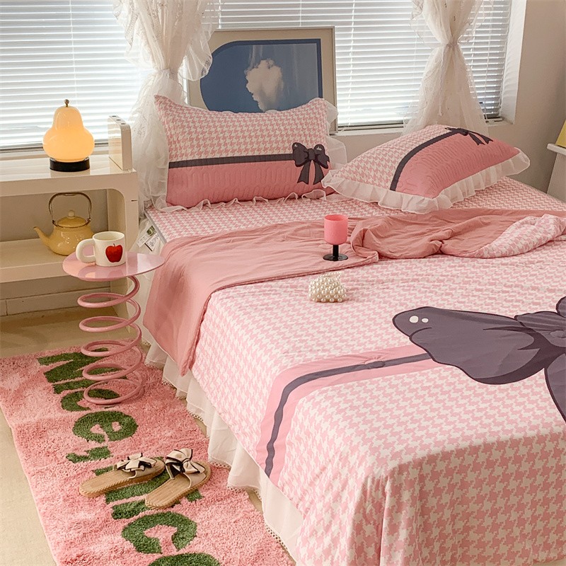 商品名称:昔可 大版数码印花凉感夏被 粉粉千鸟格
