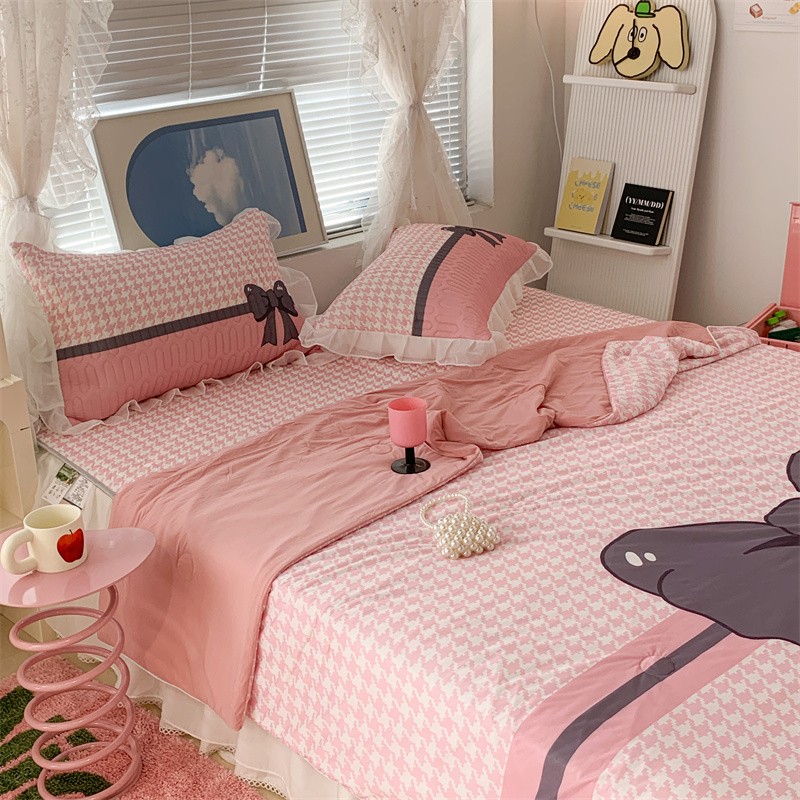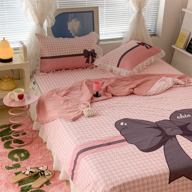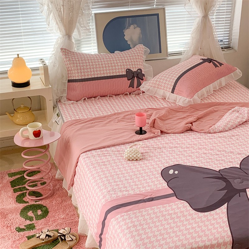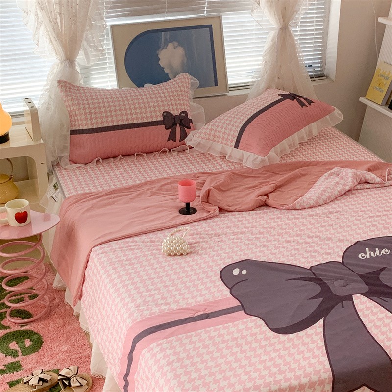 (总)昔可家纺 2024新款印花牛奶绒四件套系列-ins少女系列,芭蕾蛋糕,芭蕾美学,粉格蝴蝶结,黑粉芭蕾蝴蝶结,蓝格蝴蝶结,樱桃奶油蛋糕