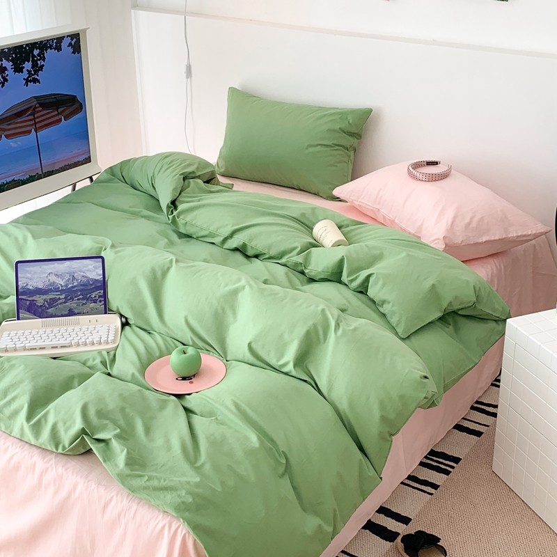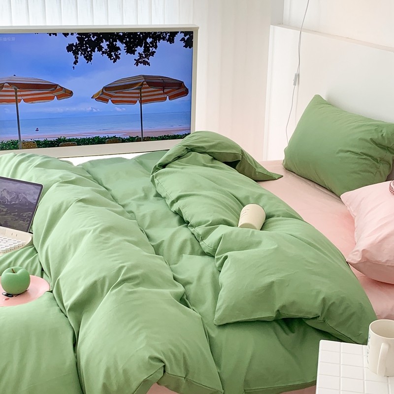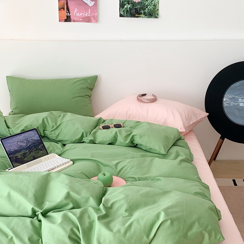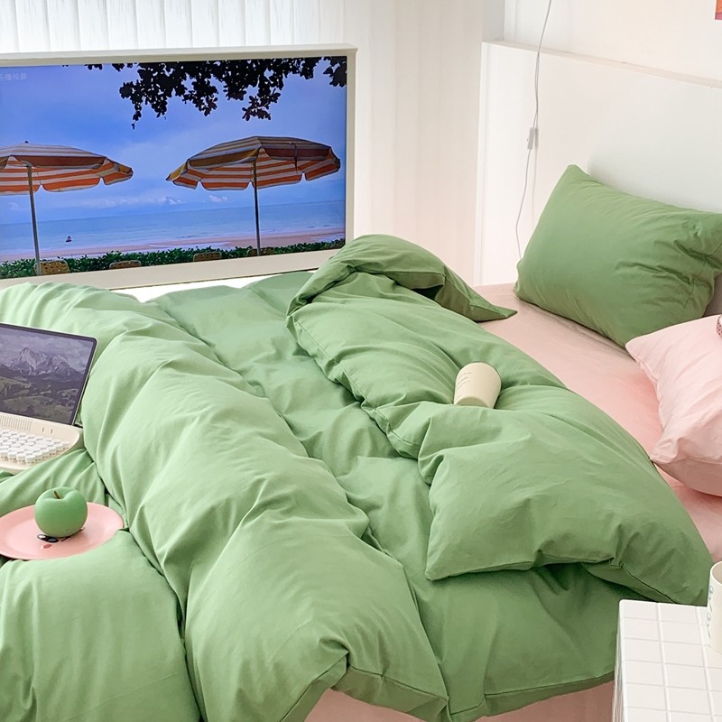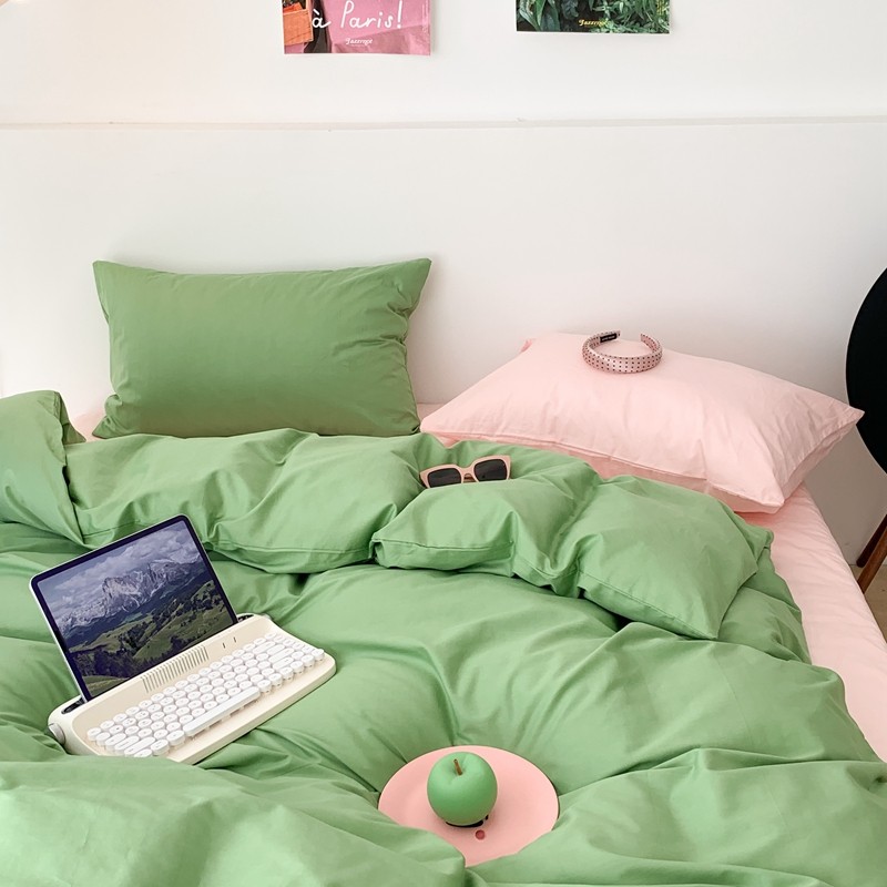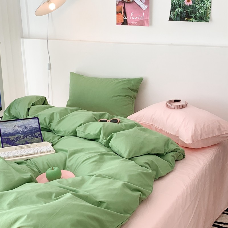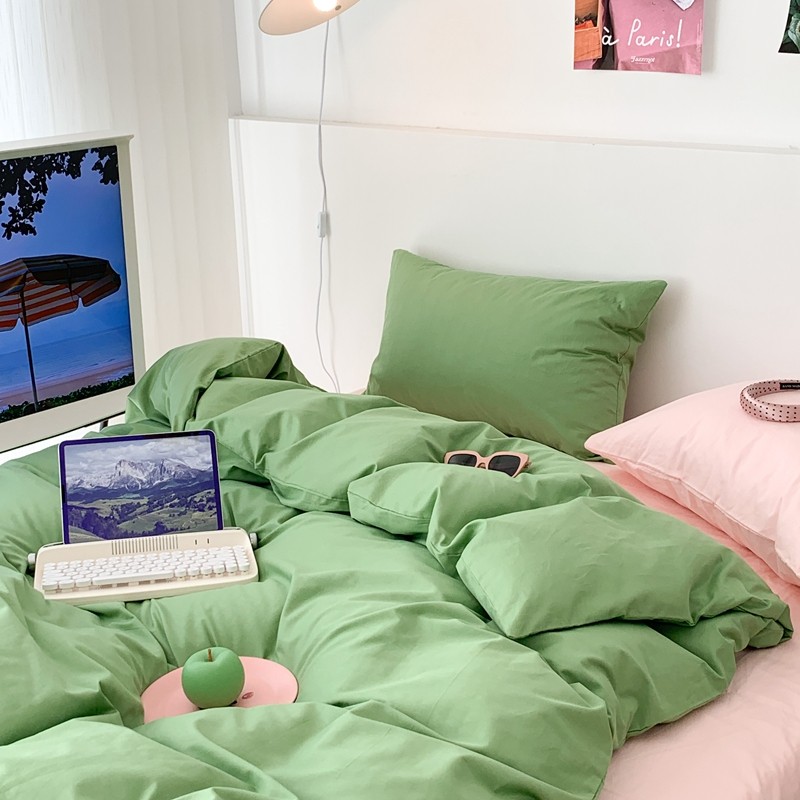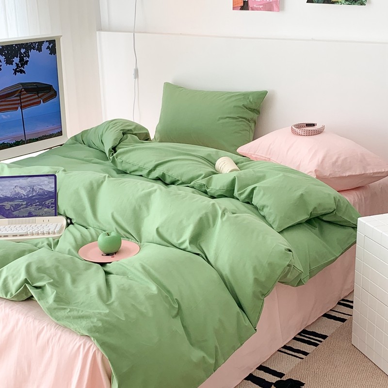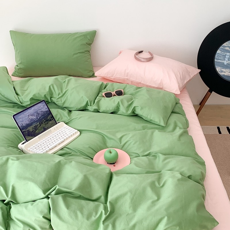 (总)昔可 2023新款全棉ins格子混搭系列四件套,ins简约绿格,粉蓝格,开心果格,学院格纹,粉绿格,海盐兰格,黄绿格,夏日蓝条,芝士黄条,紫芋泥芝士格