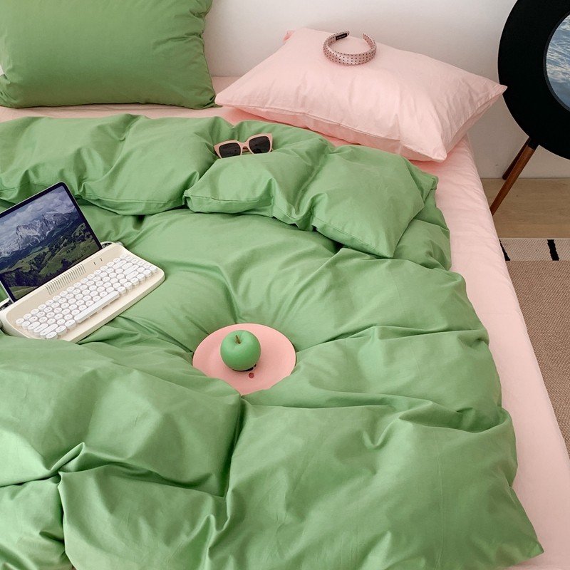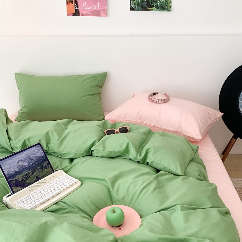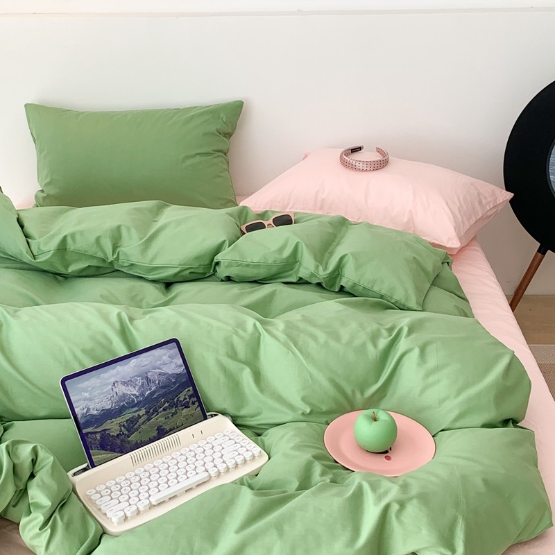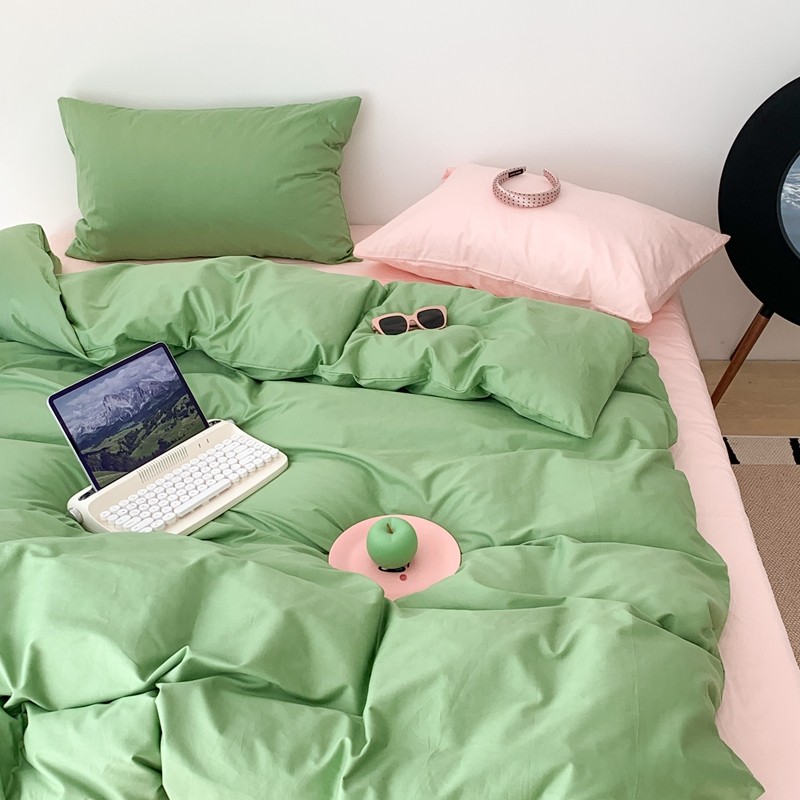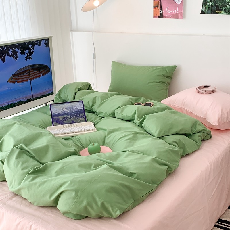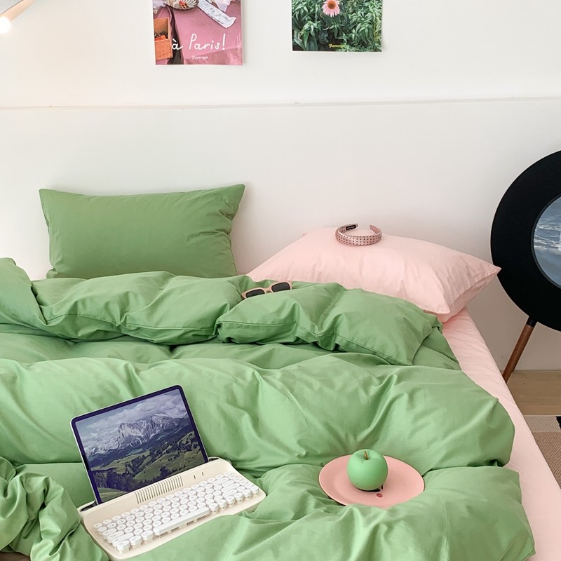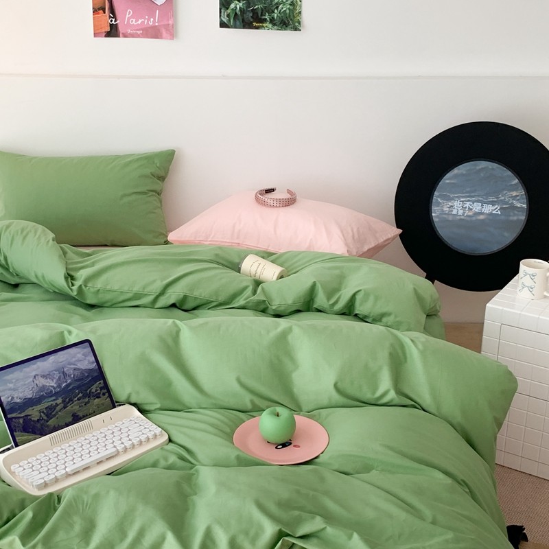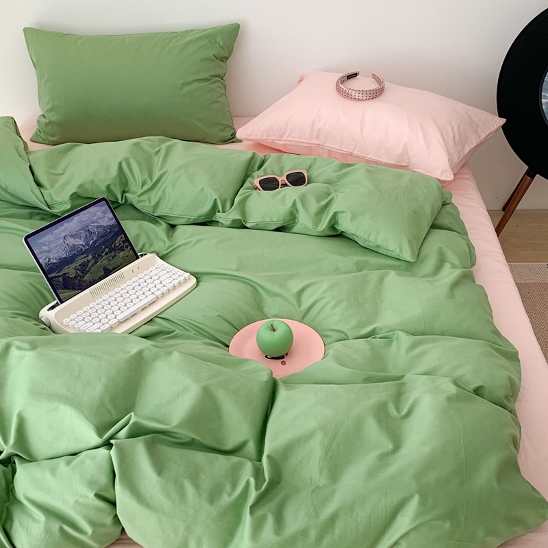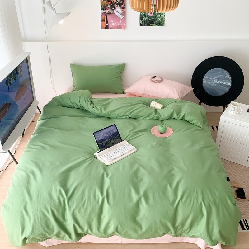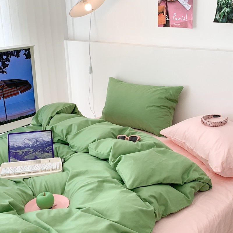 (总)昔可 2023新款全棉ins格子混搭系列四件套,ins简约绿格,粉蓝格,开心果格,学院格纹,粉绿格,海盐兰格,黄绿格,夏日蓝条,芝士黄条,紫芋泥芝士格