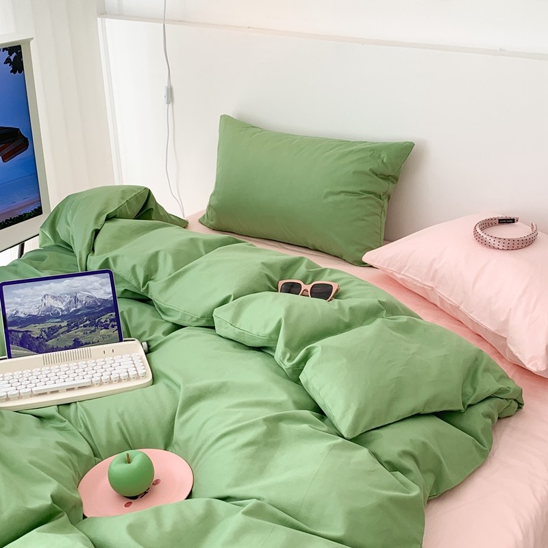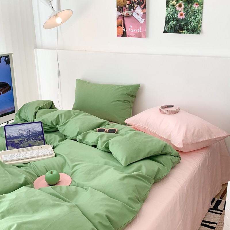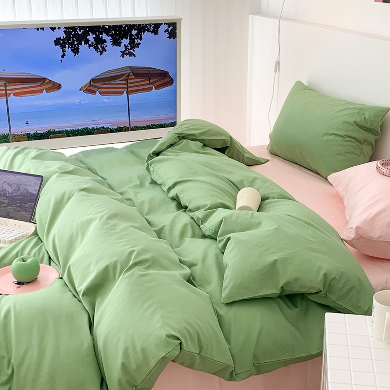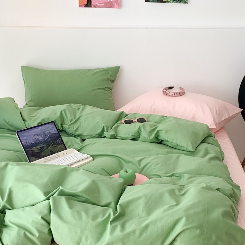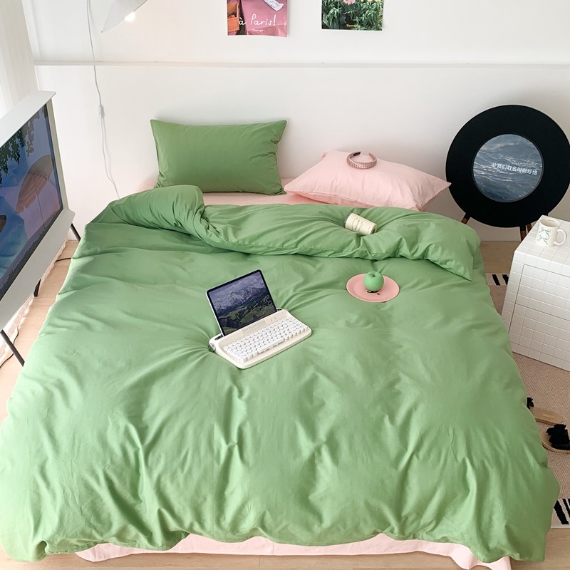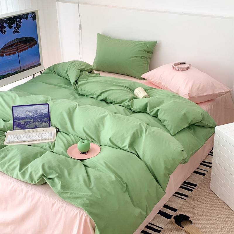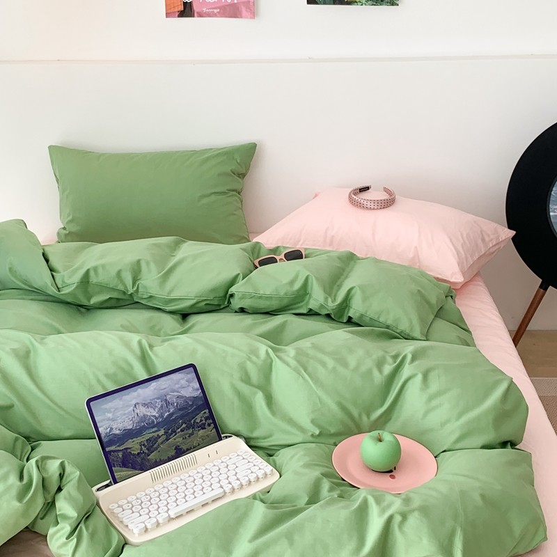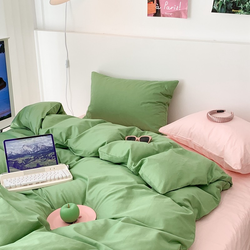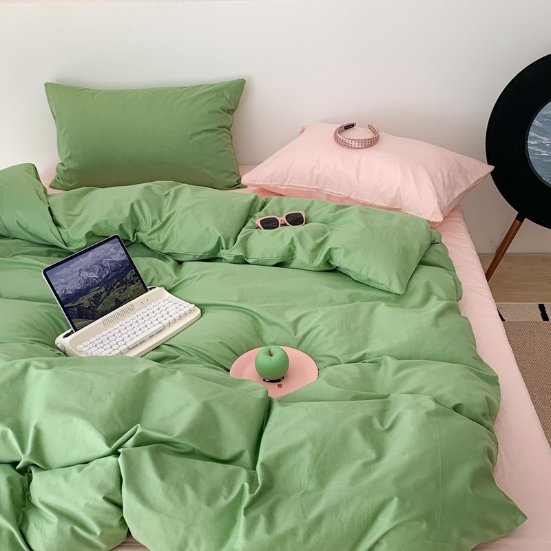 (总)昔可 2023新款全棉ins格子混搭系列四件套,ins简约绿格,粉蓝格,开心果格,学院格纹,粉绿格,海盐兰格,黄绿格,夏日蓝条,芝士黄条,紫芋泥芝士格