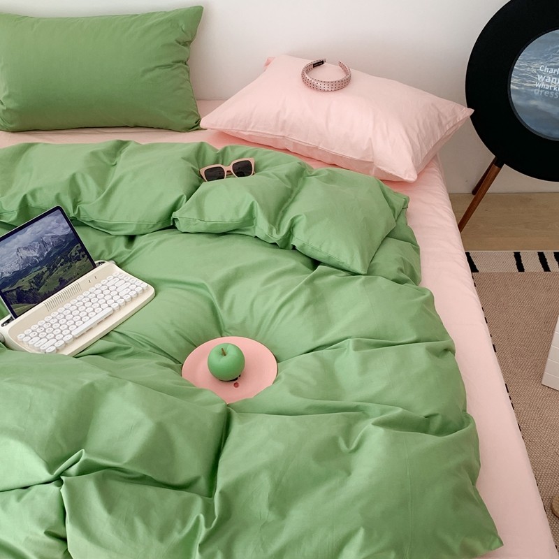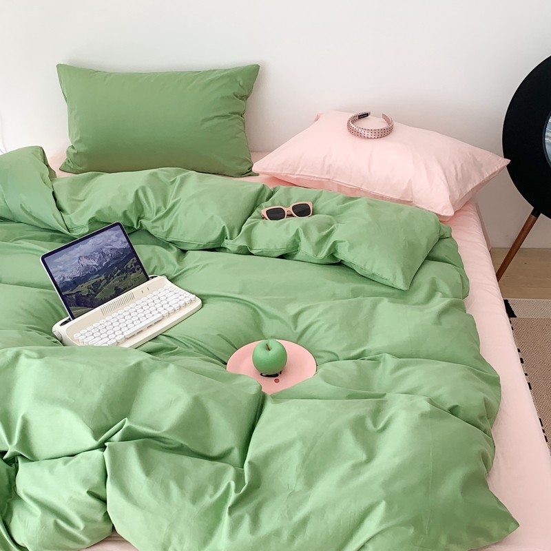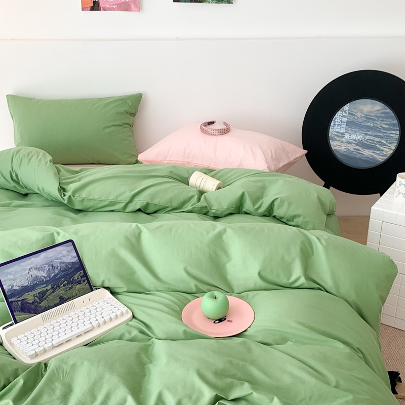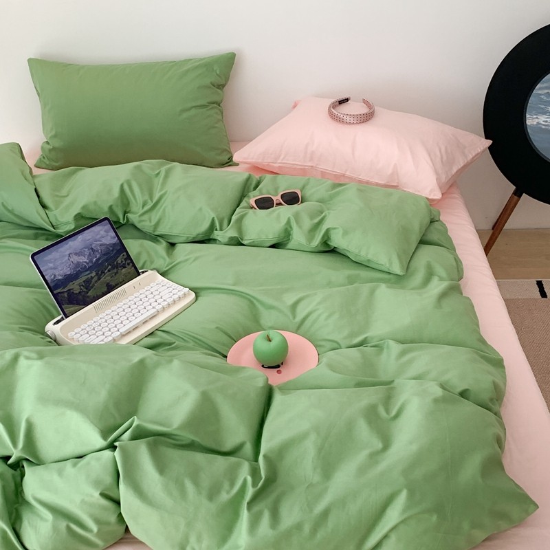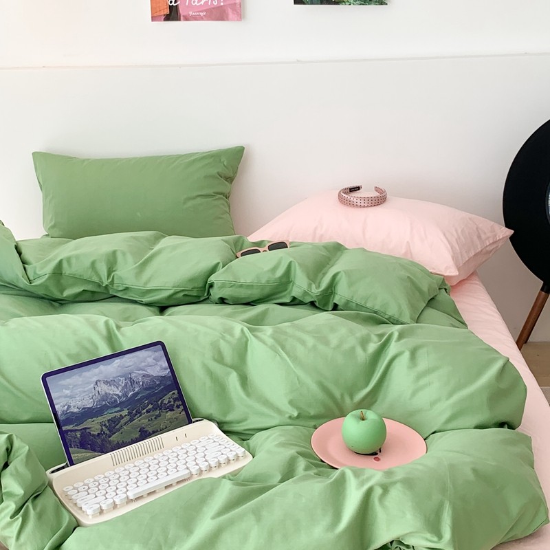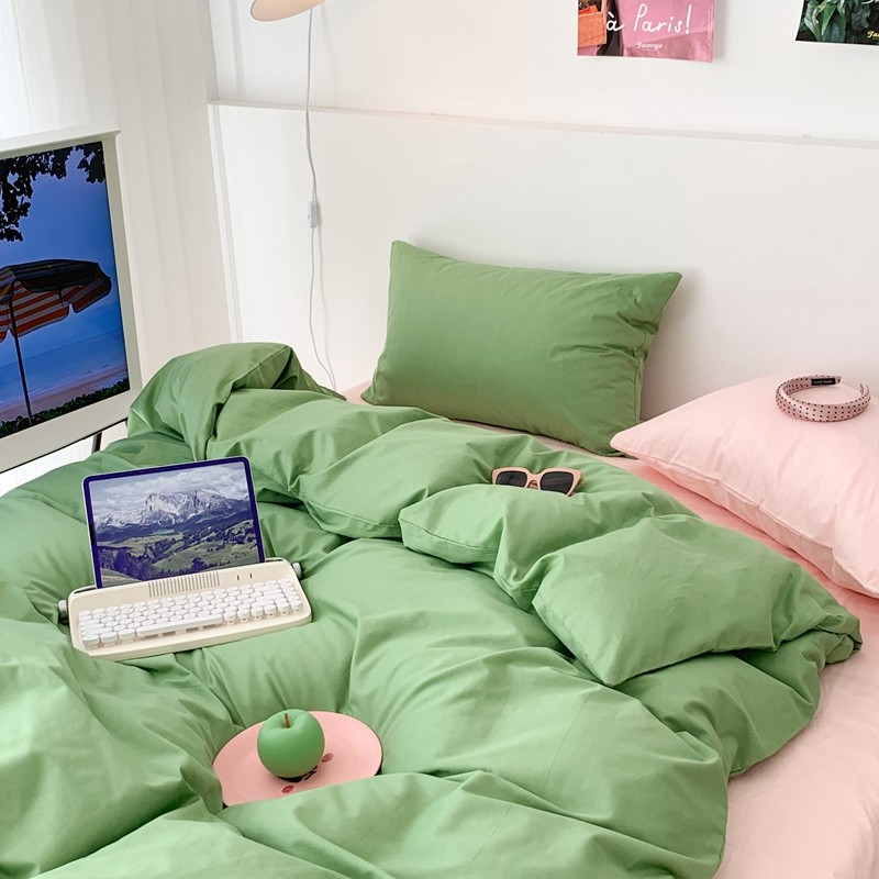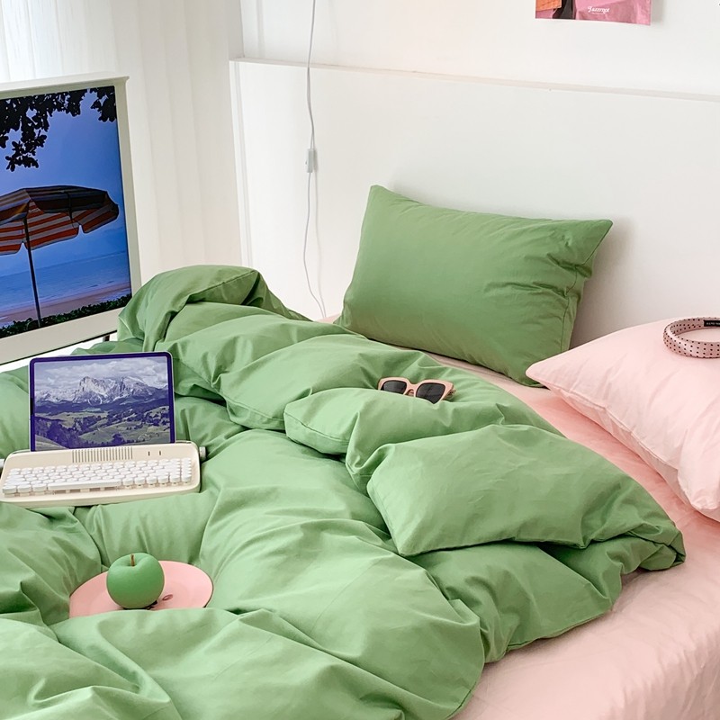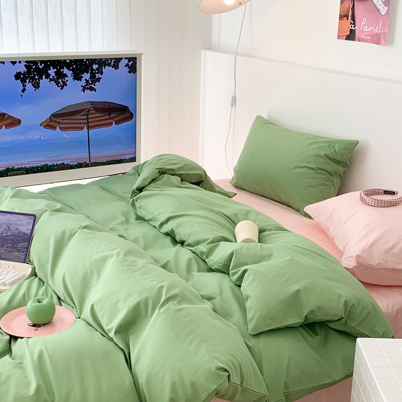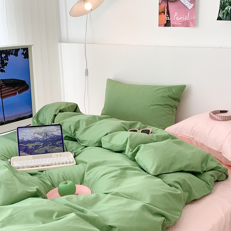(总)昔可 2023新款全棉ins格子混搭系列四件套,ins简约绿格,粉蓝格,开心果格,学院格纹,粉绿格,海盐兰格,黄绿格,夏日蓝条,芝士黄条,紫芋泥芝士格