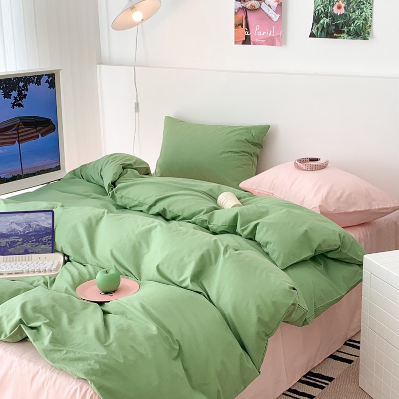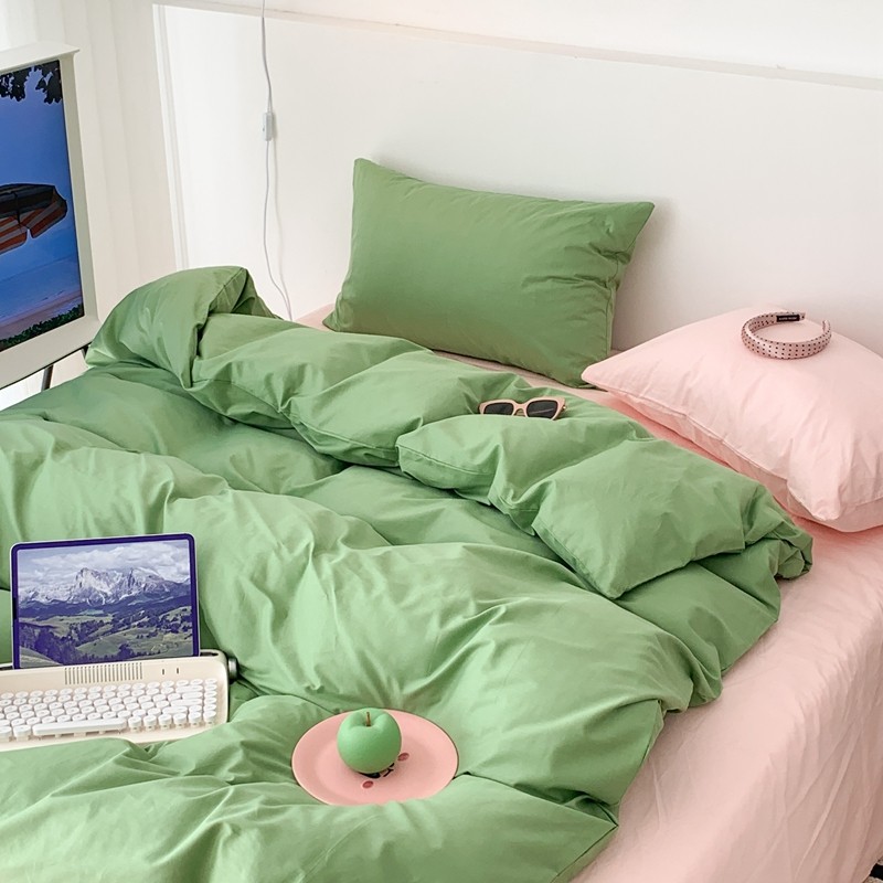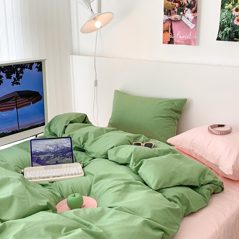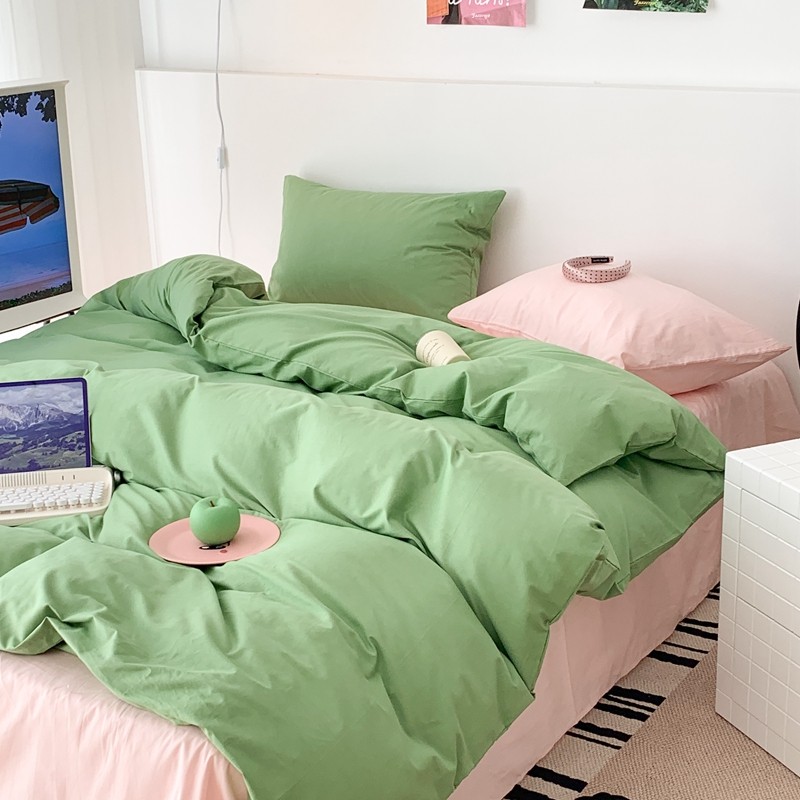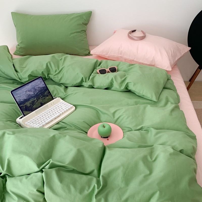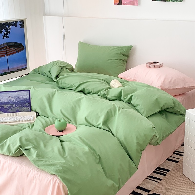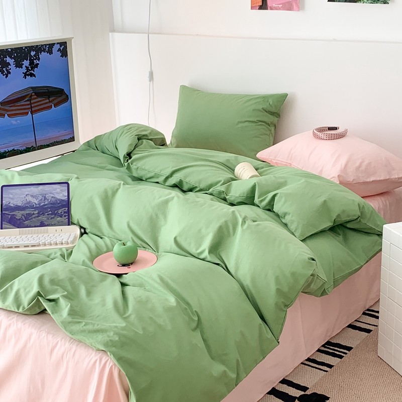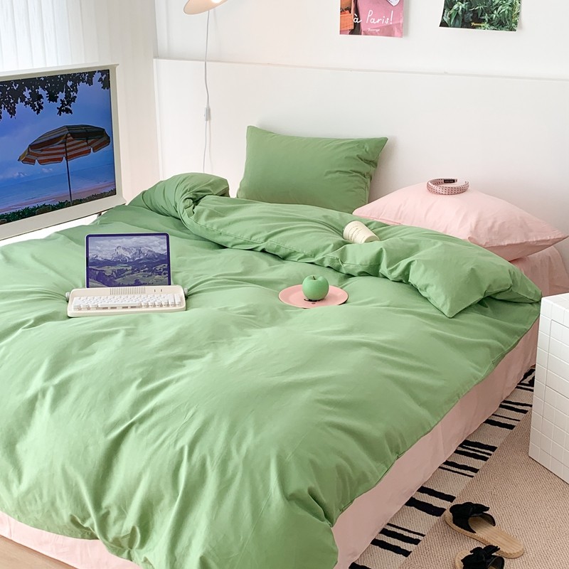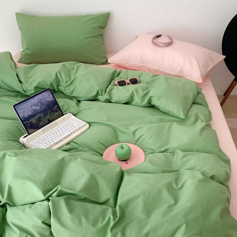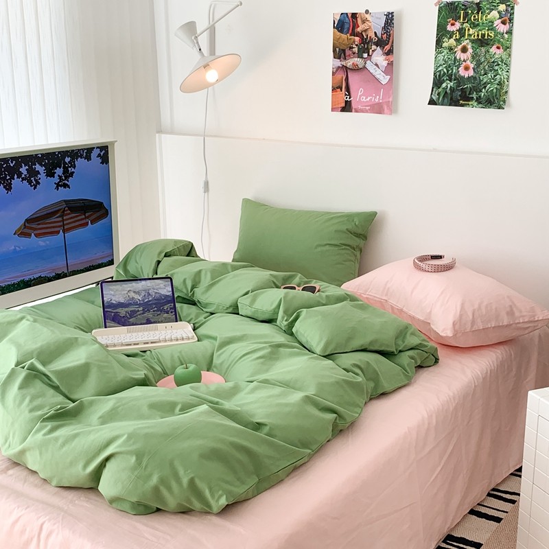 (总)昔可 2023新款全棉ins格子混搭系列四件套,ins简约绿格,粉蓝格,开心果格,学院格纹,粉绿格,海盐兰格,黄绿格,夏日蓝条,芝士黄条,紫芋泥芝士格
