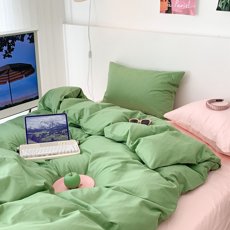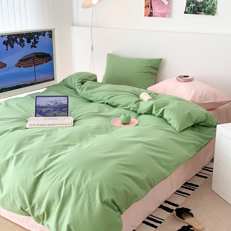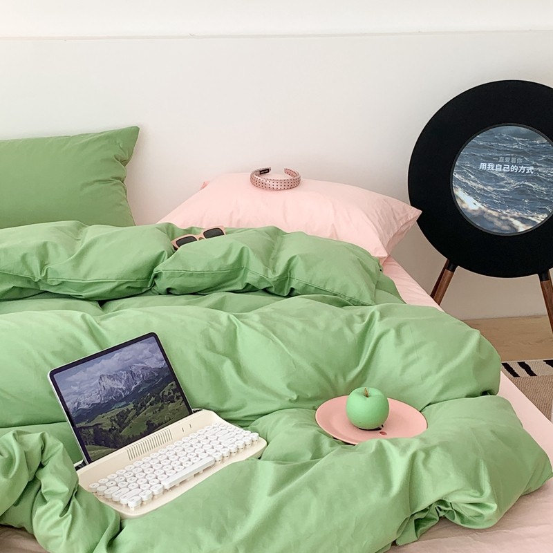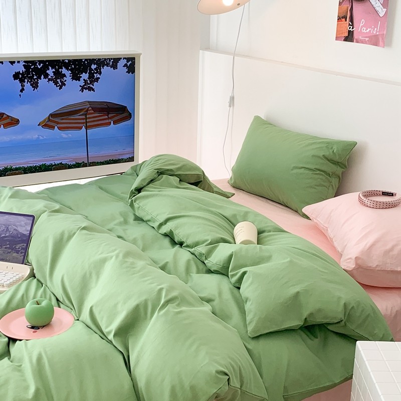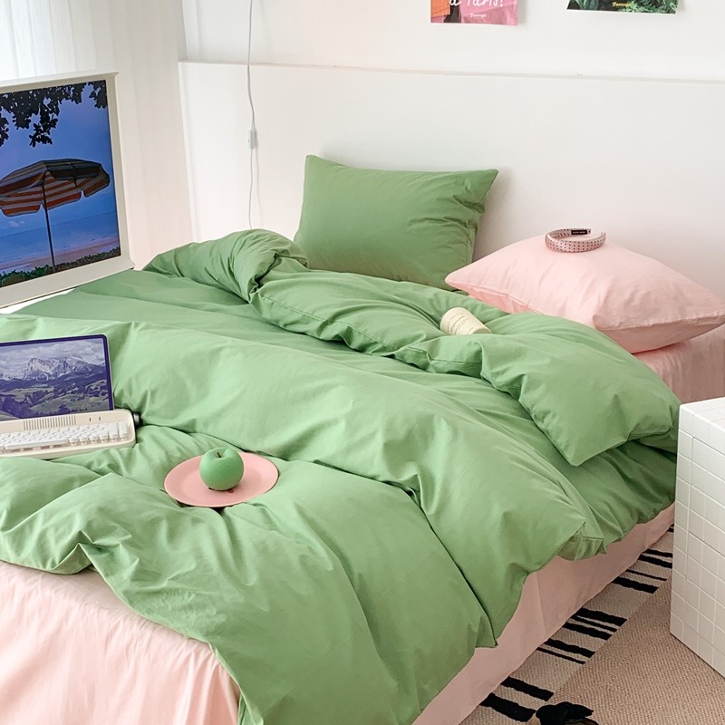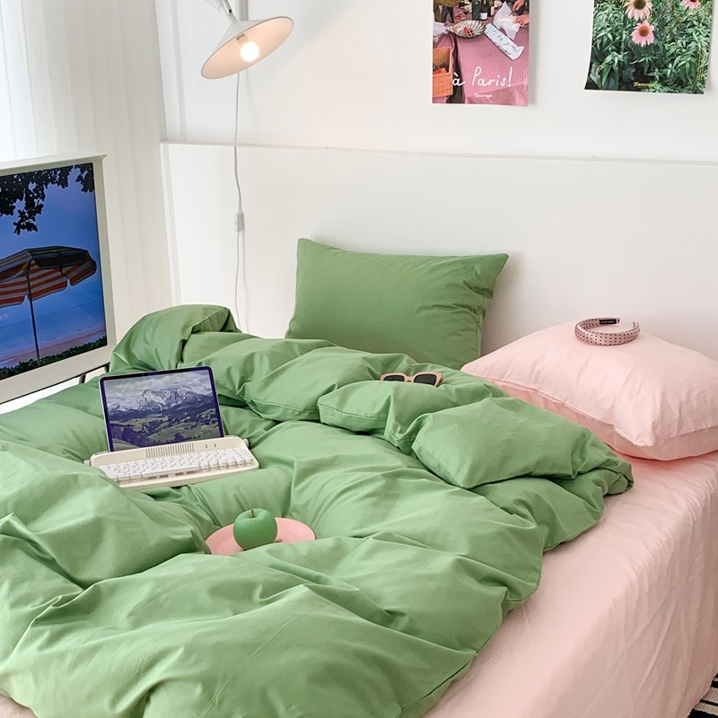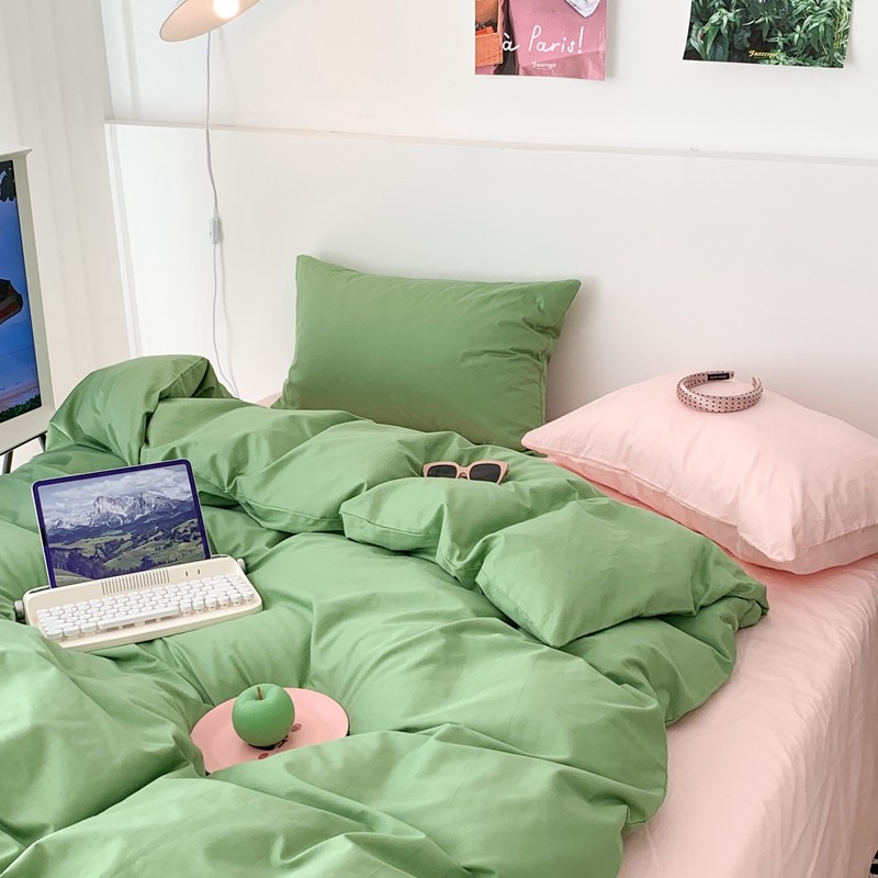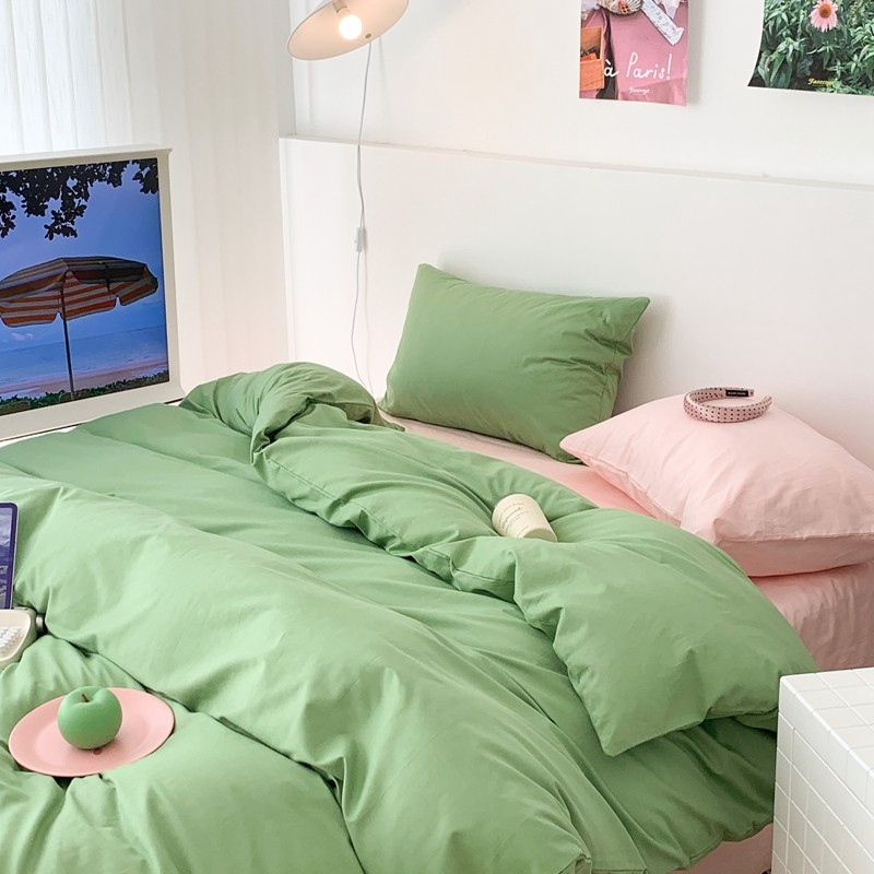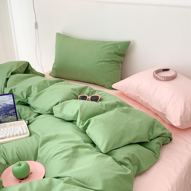 (总)昔可 2023新款全棉ins格子混搭系列四件套,ins简约绿格,粉蓝格,开心果格,学院格纹,粉绿格,海盐兰格,黄绿格,夏日蓝条,芝士黄条,紫芋泥芝士格