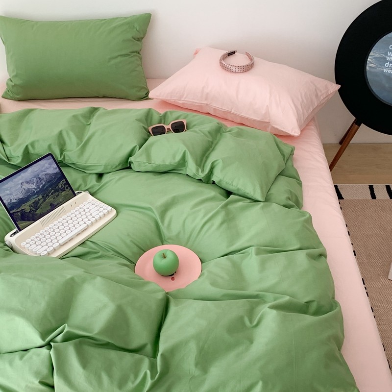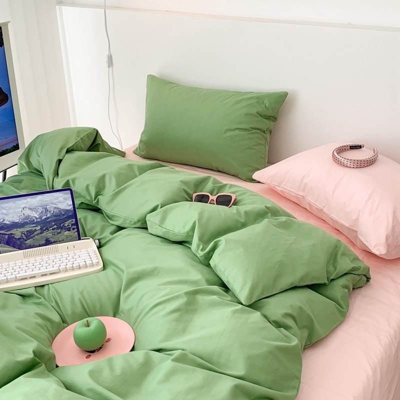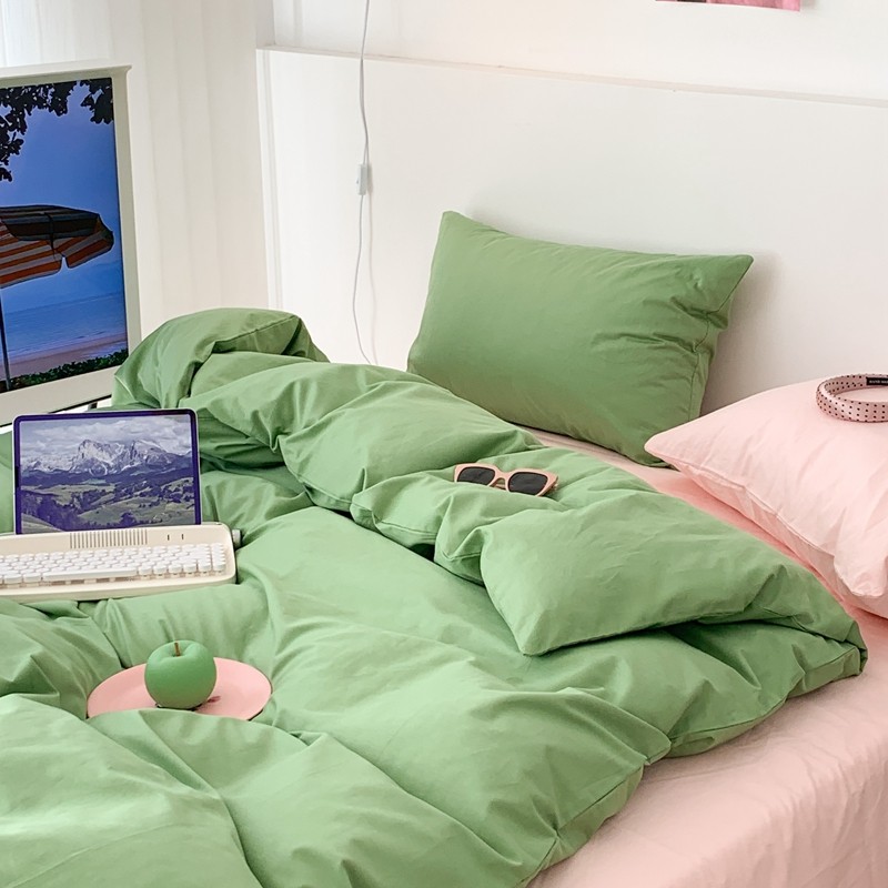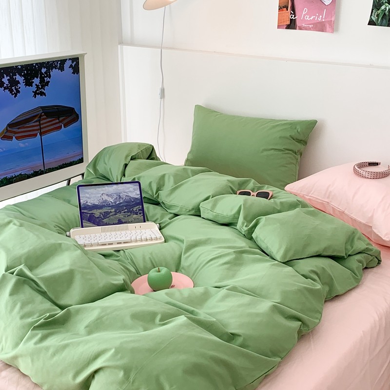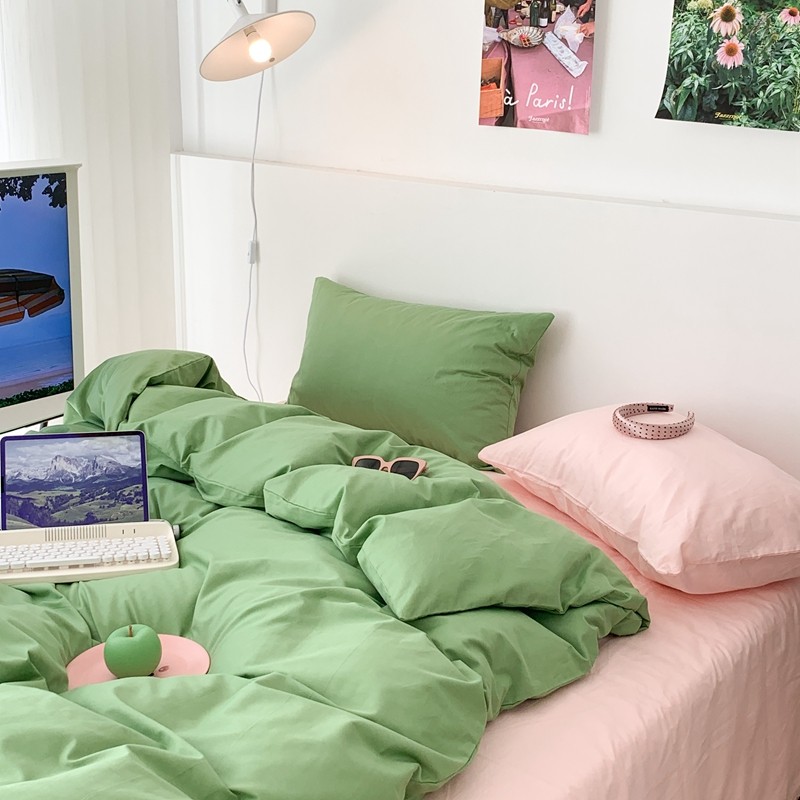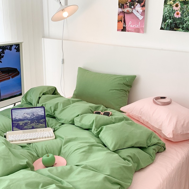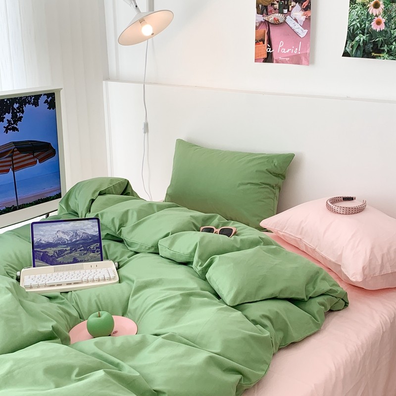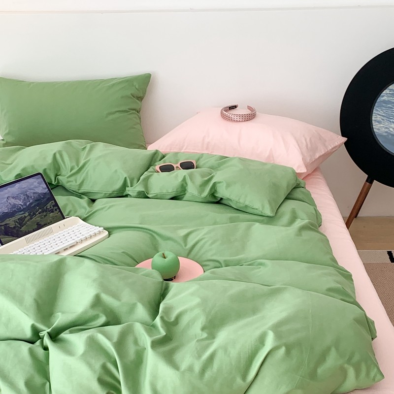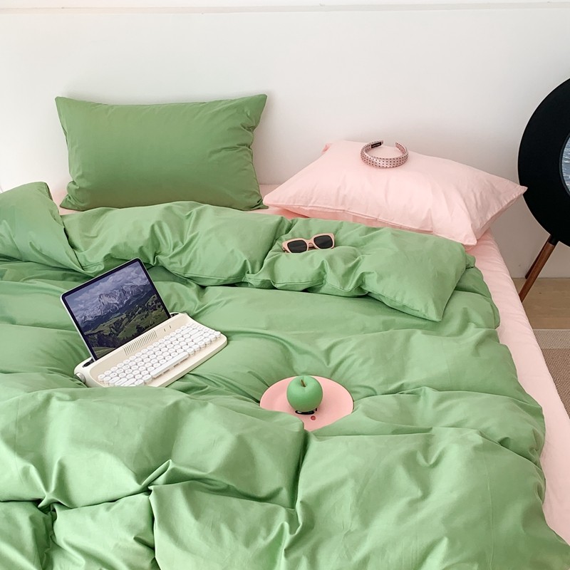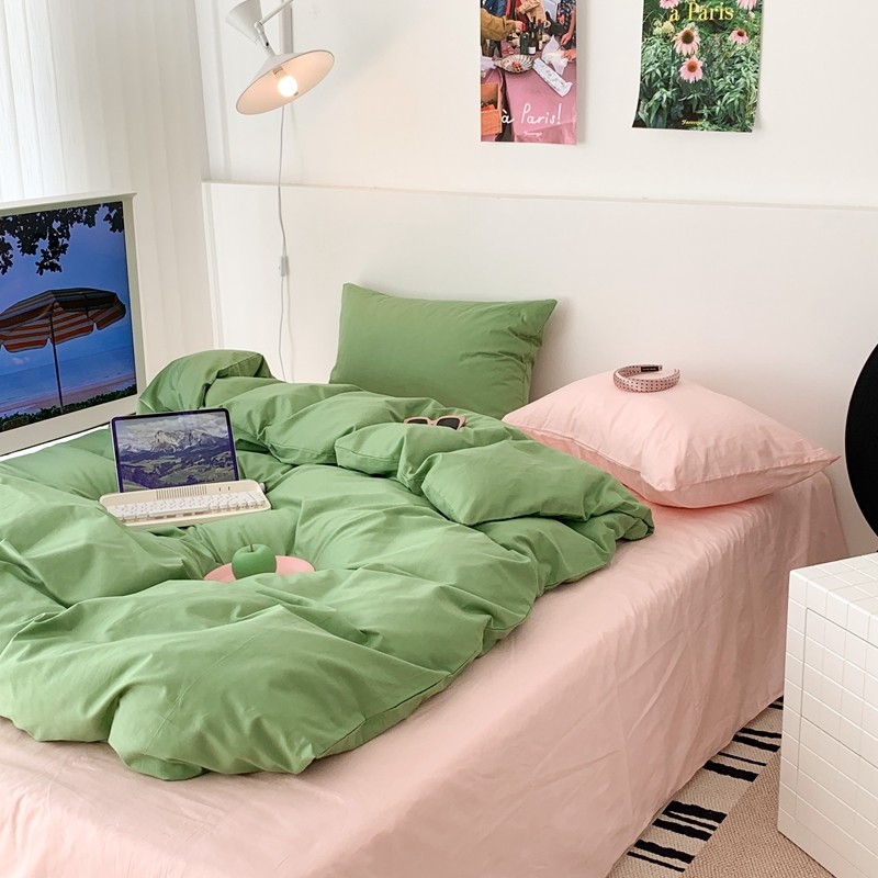 (总)昔可 2023新款全棉ins格子混搭系列四件套,ins简约绿格,粉蓝格,开心果格,学院格纹,粉绿格,海盐兰格,黄绿格,夏日蓝条,芝士黄条,紫芋泥芝士格