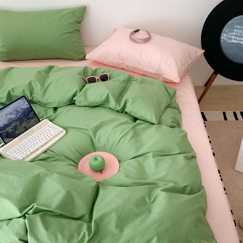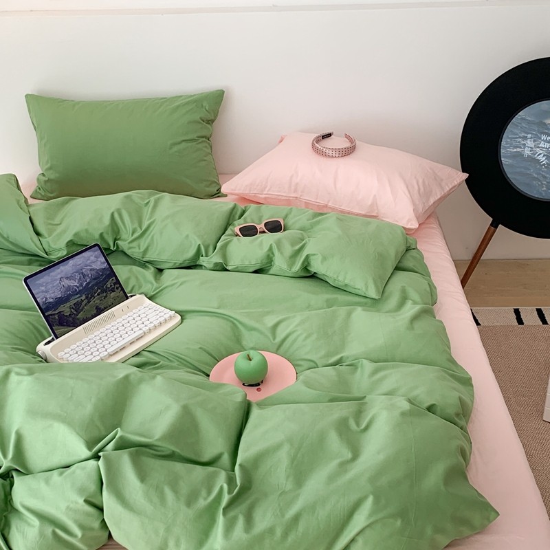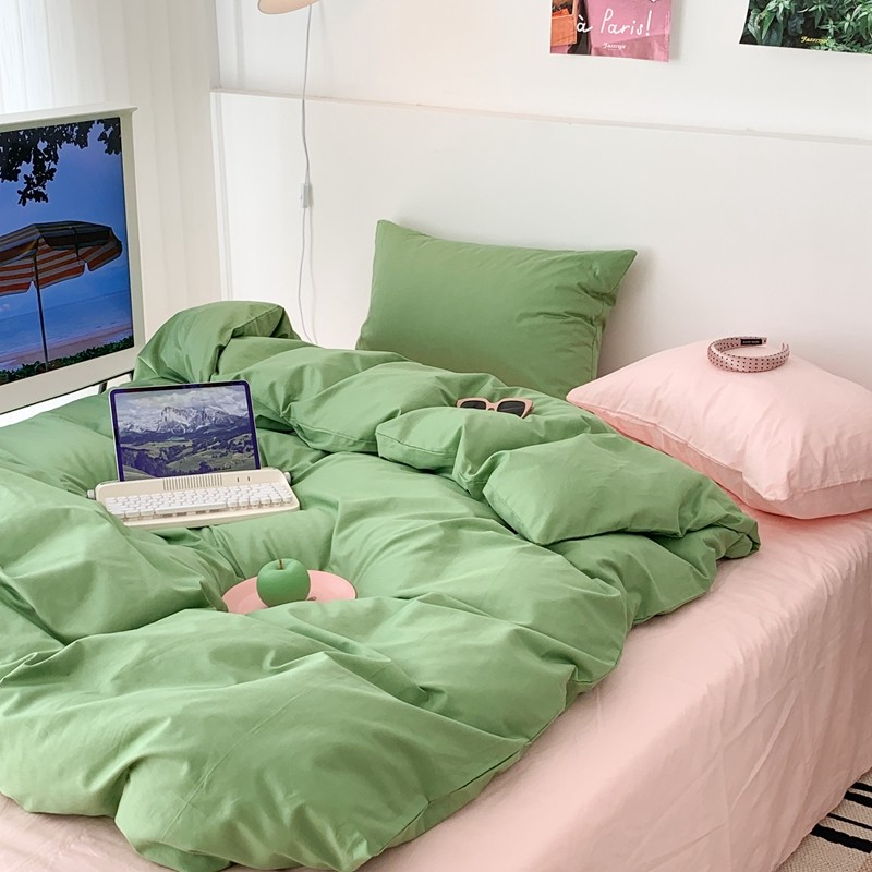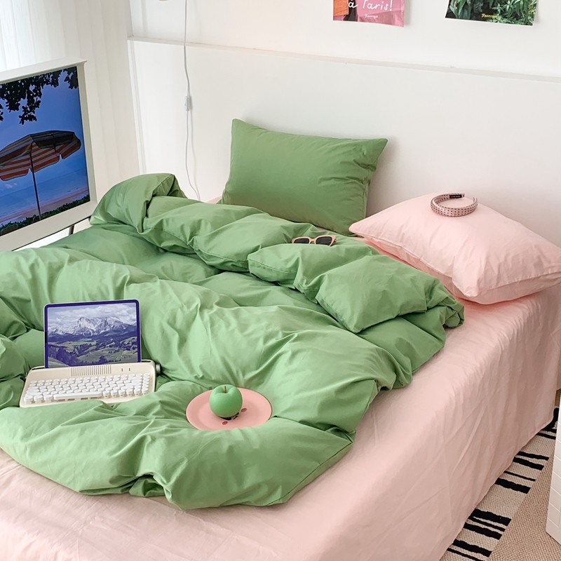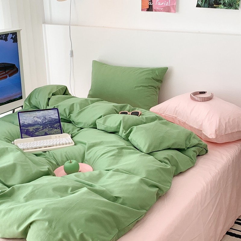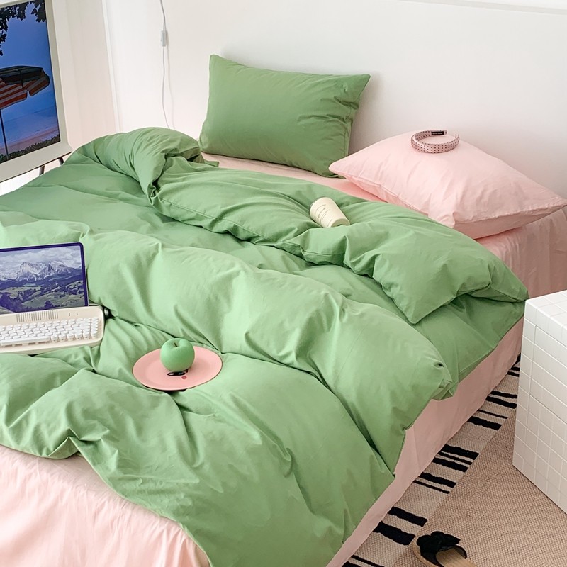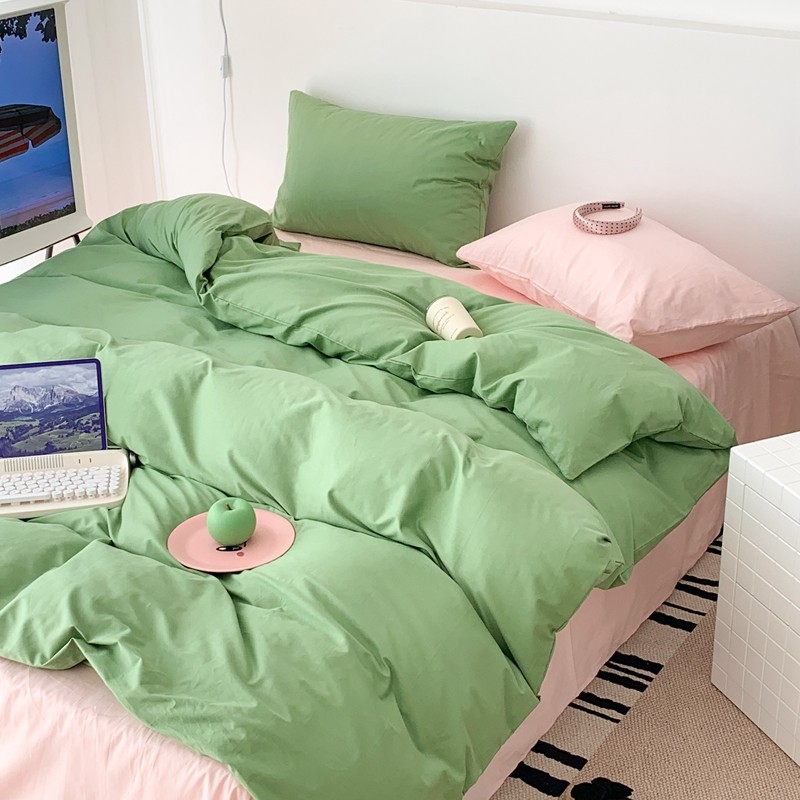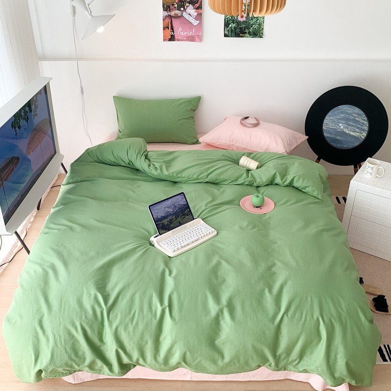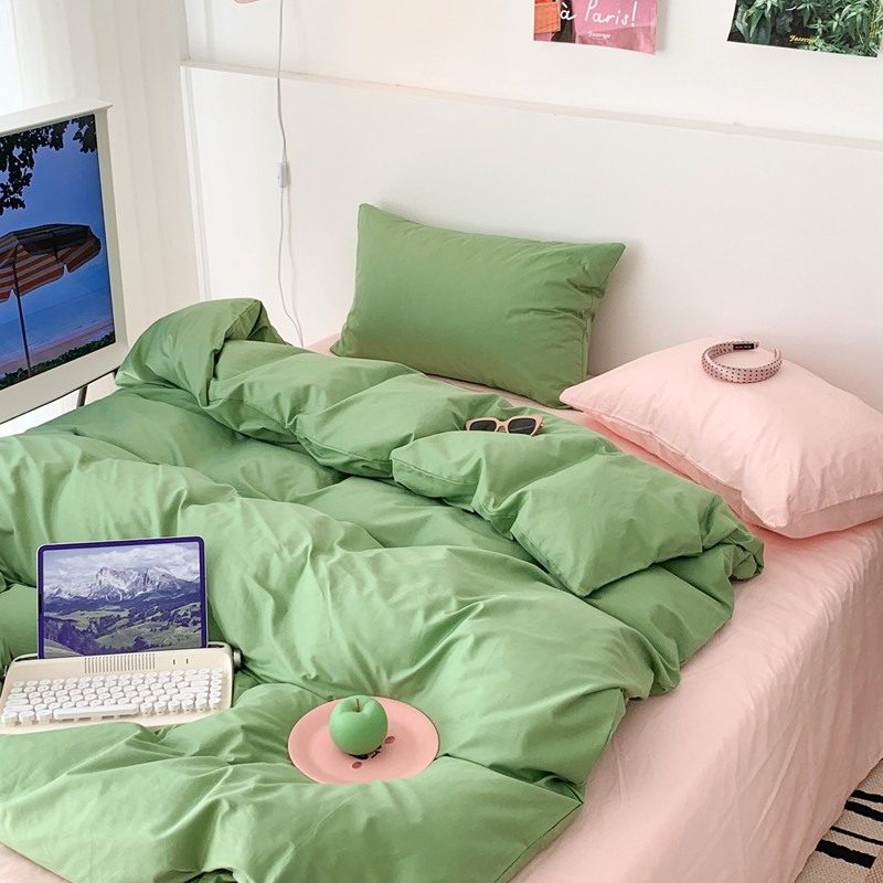 (总)昔可 2023新款全棉ins格子混搭系列四件套,ins简约绿格,粉蓝格,开心果格,学院格纹,粉绿格,海盐兰格,黄绿格,夏日蓝条,芝士黄条,紫芋泥芝士格