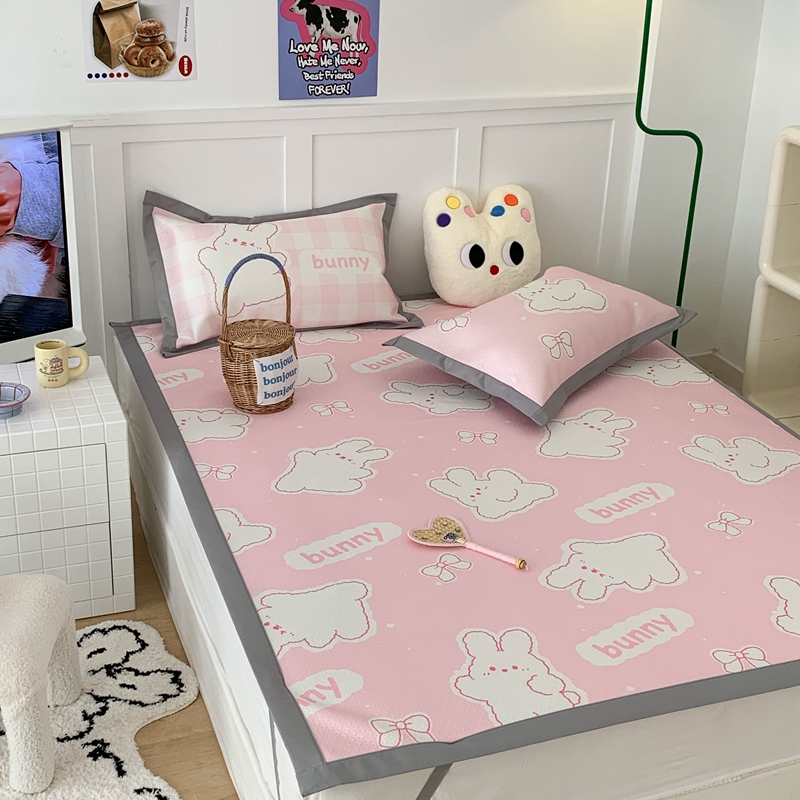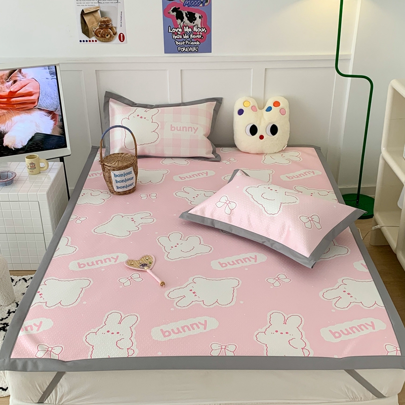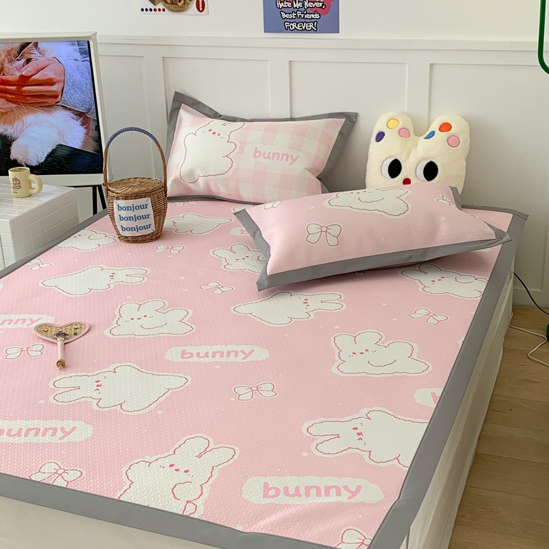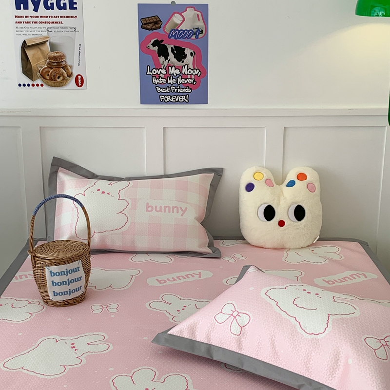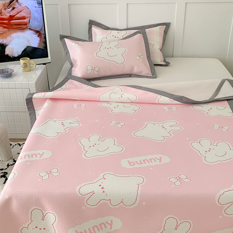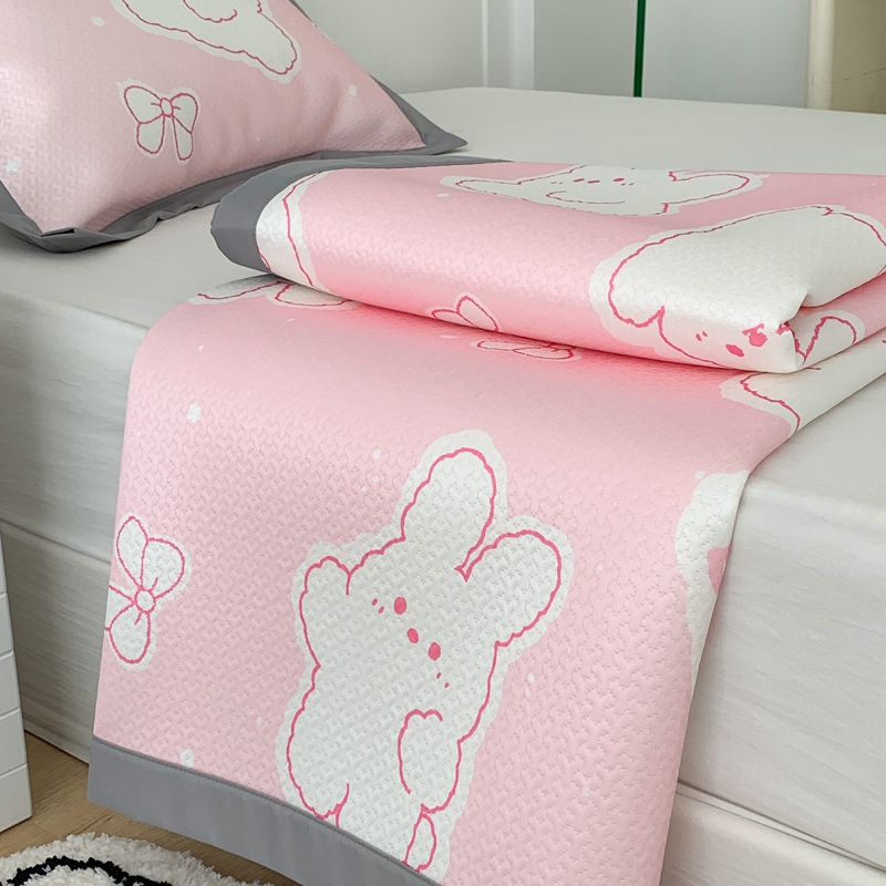 昔可 2023新款凉感海洋丝针织软席三件套 粉色花环兔