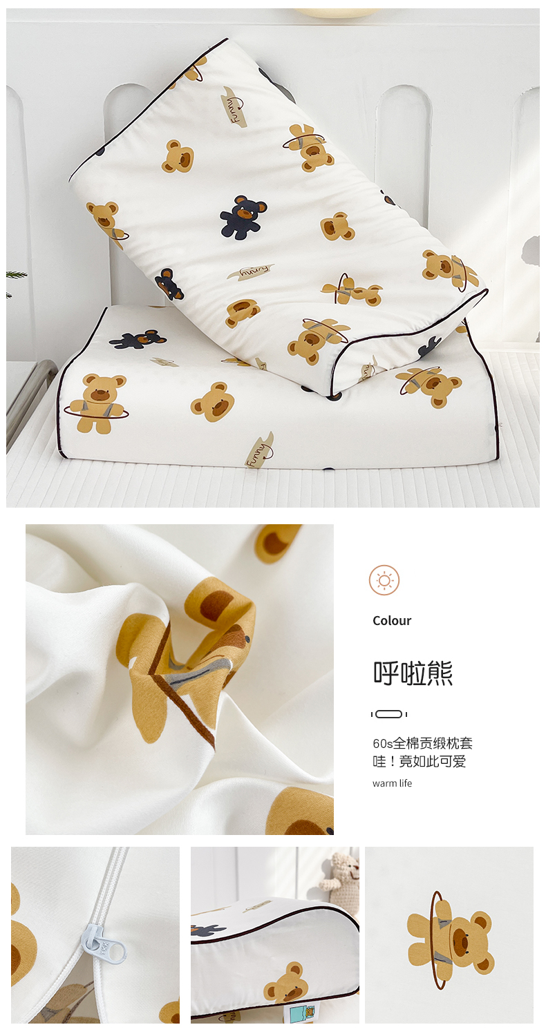 商品名称:良佐生活 2023新款A类60支全棉贡缎乳胶枕枕套 呼啦熊