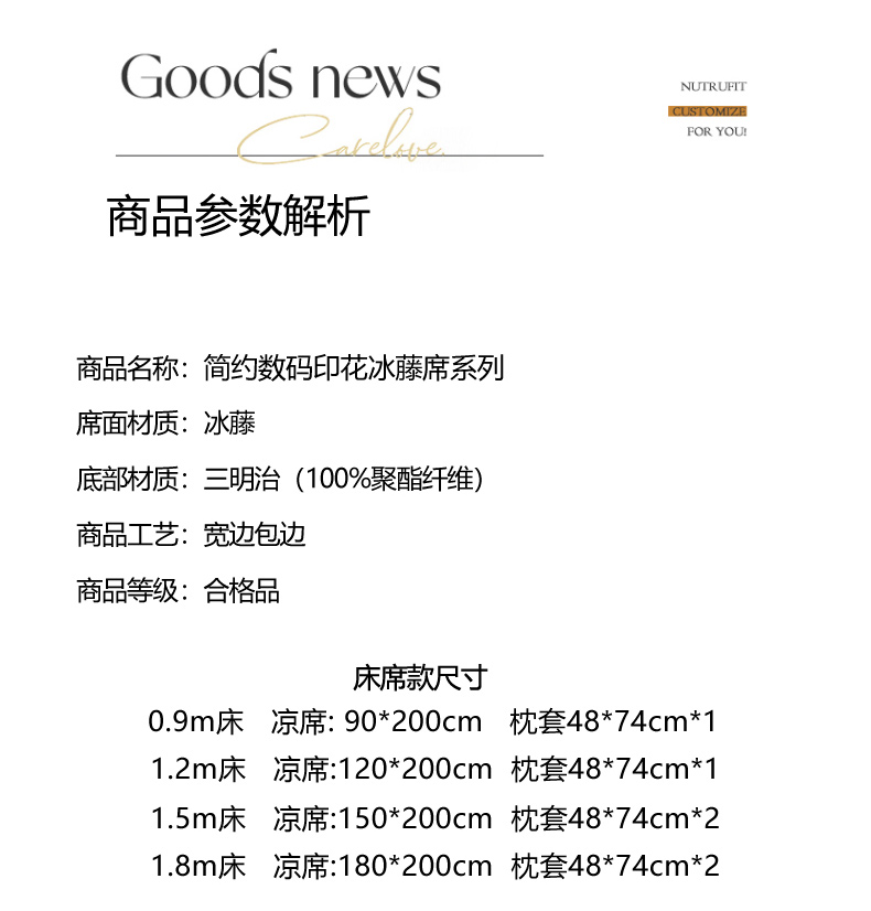 商品名称:慕尚家纺 2025新款简约数码印花冰藤席平铺+床笠款 流光岁月-平铺
