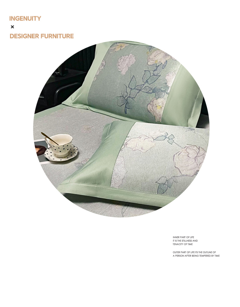 慕尚家纺 2025新款简约数码印花冰藤席平铺+床笠款 流光岁月-平铺