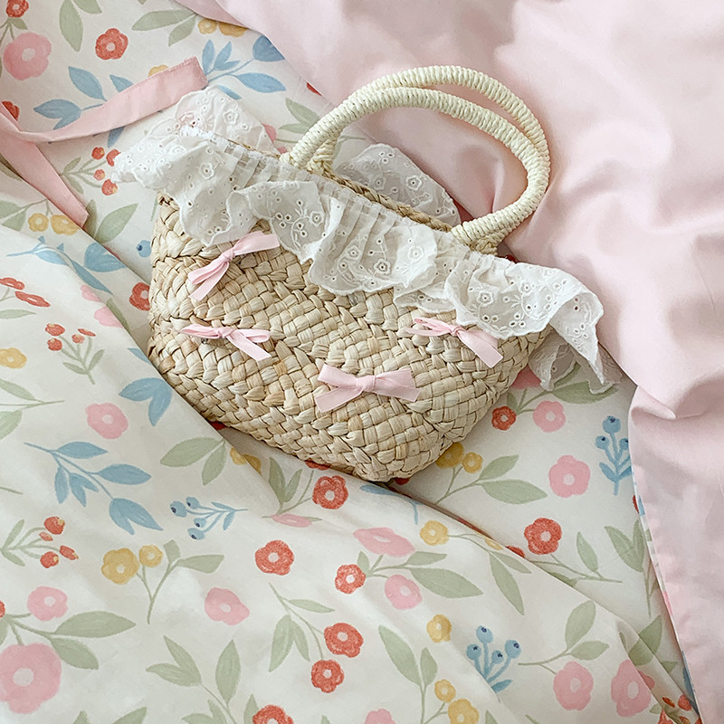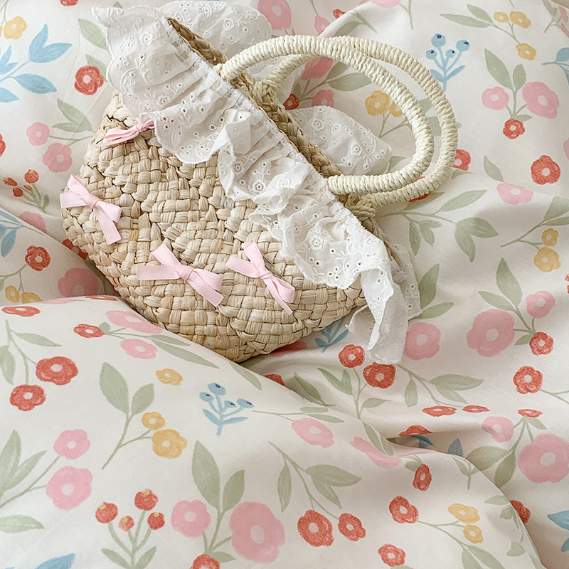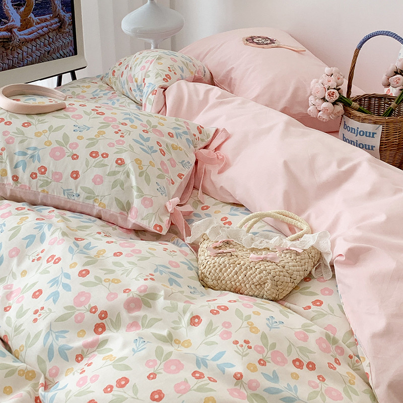 商品名称:昔可家纺 2023新款全棉蝴蝶结枕套普通款四件套 夏日佛罗伦萨