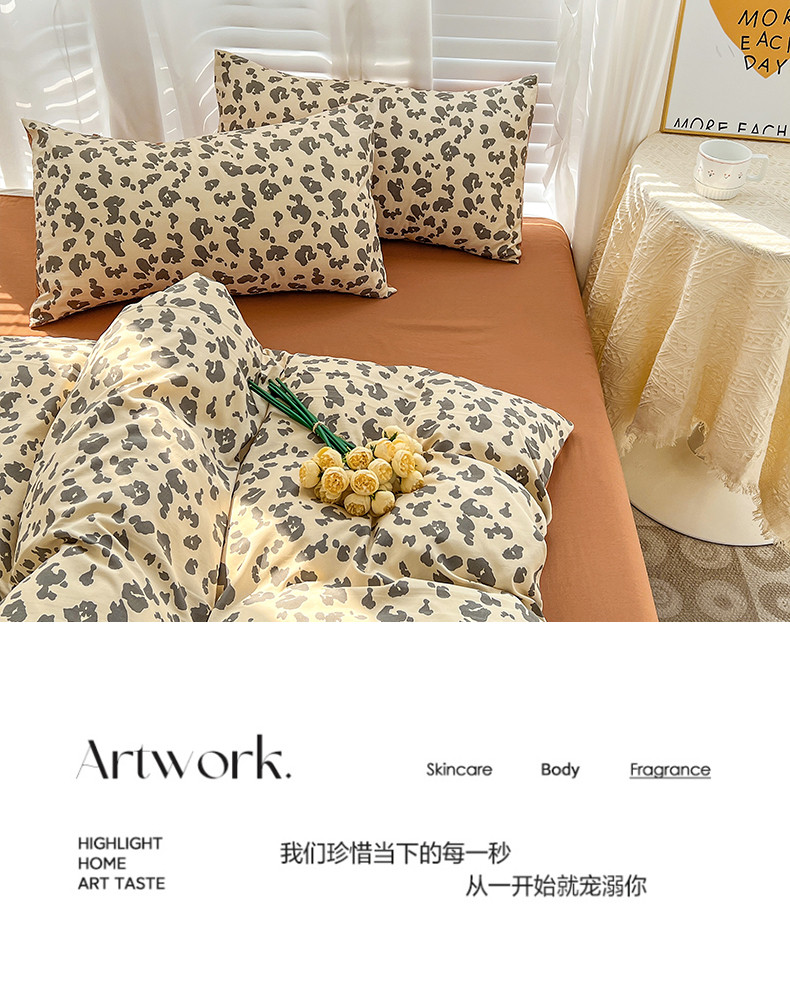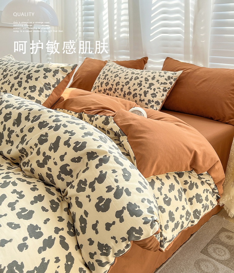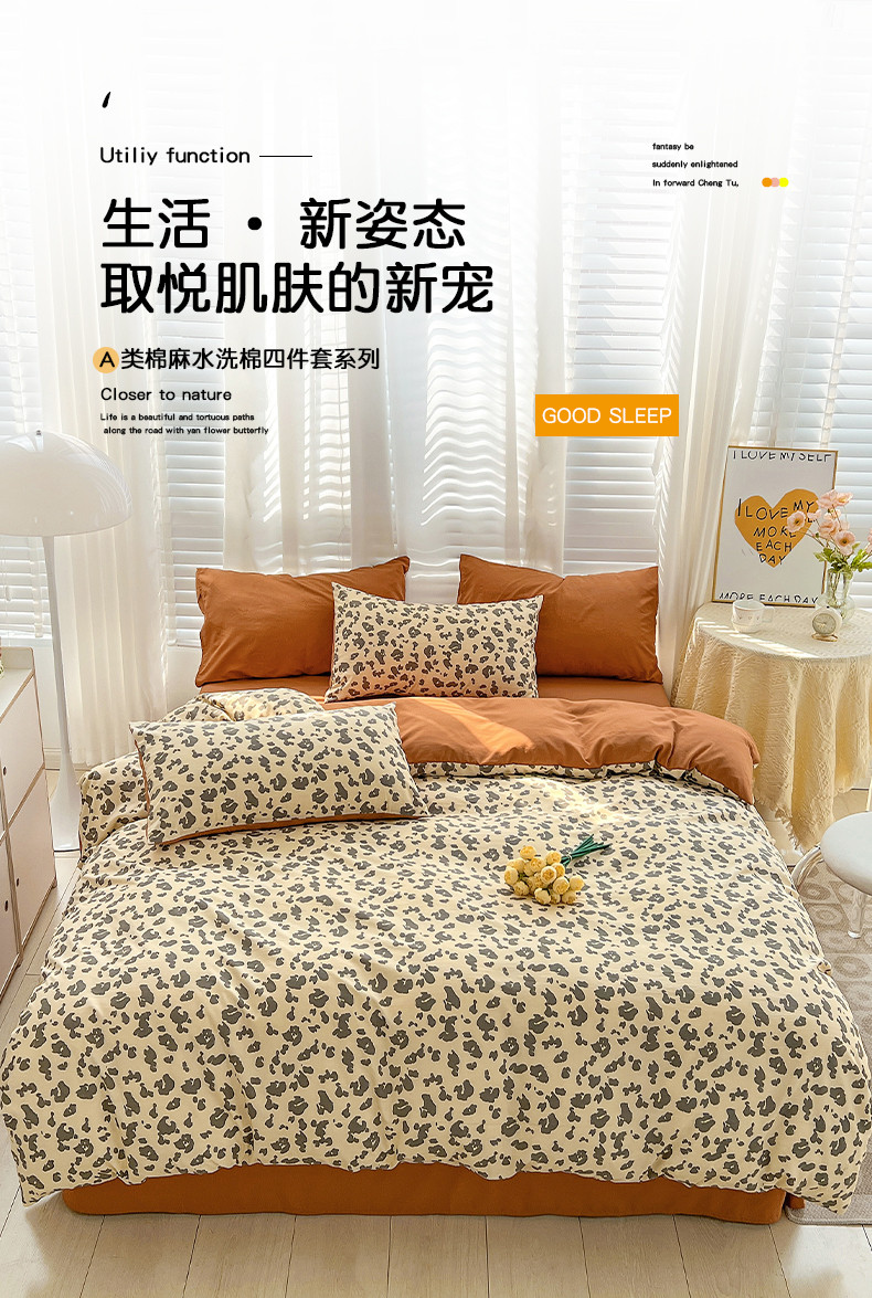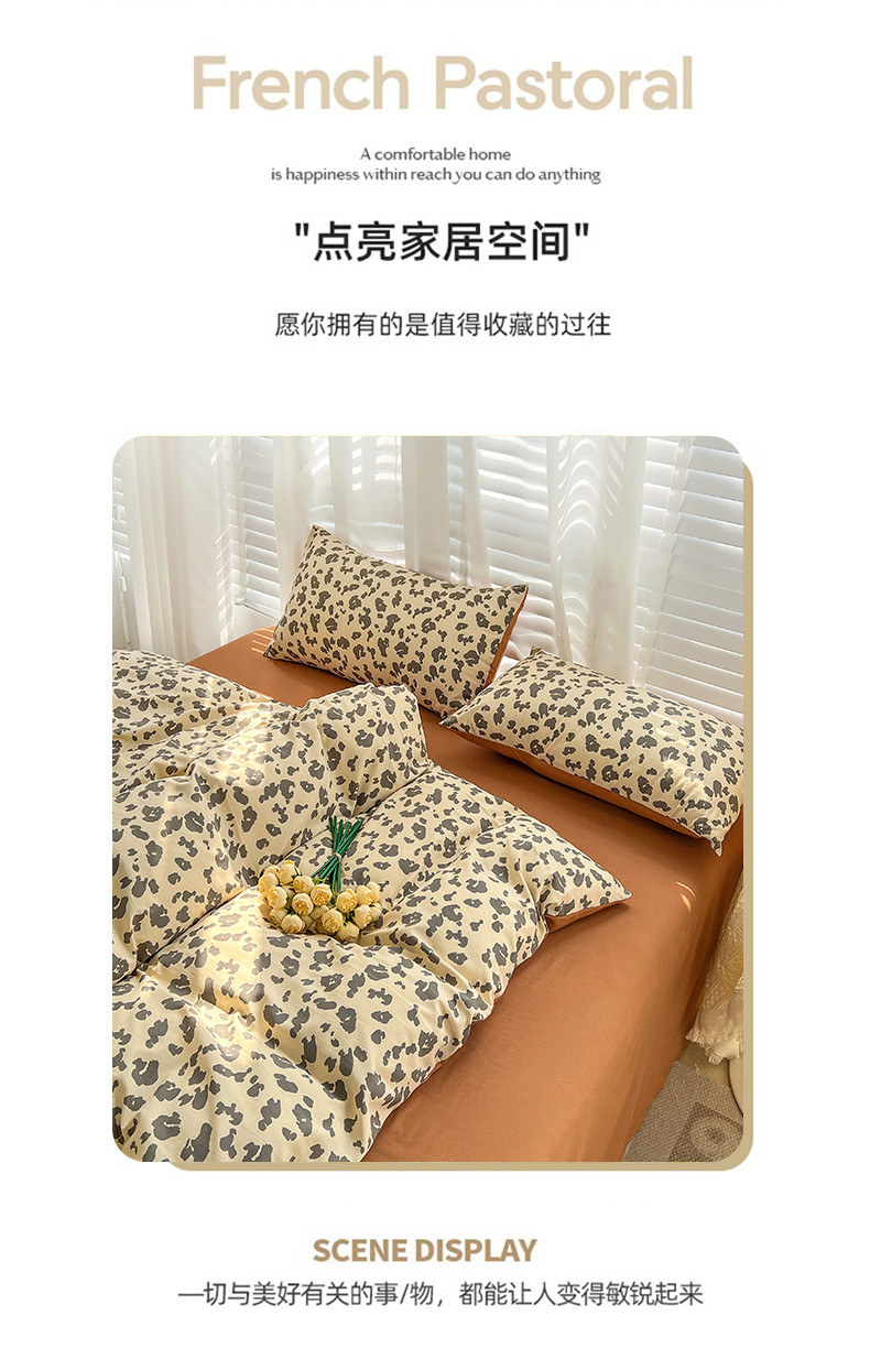 当前位置: 91家纺网 > 商品网购 > 床品套件 > 四件套 > 水洗棉四件套 > 直播爆款法式风双层纱棉麻水洗棉四件套 简约豹纹