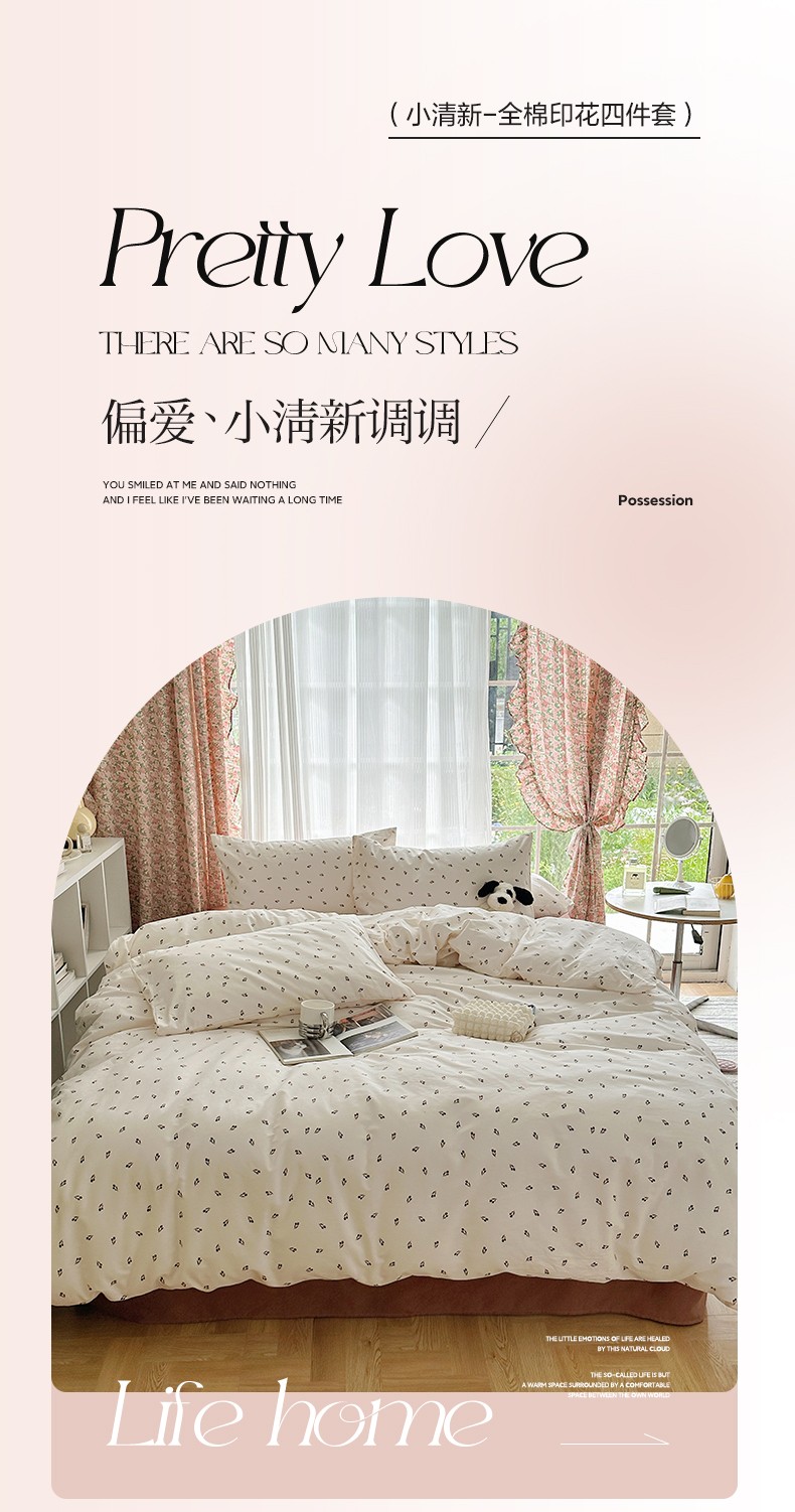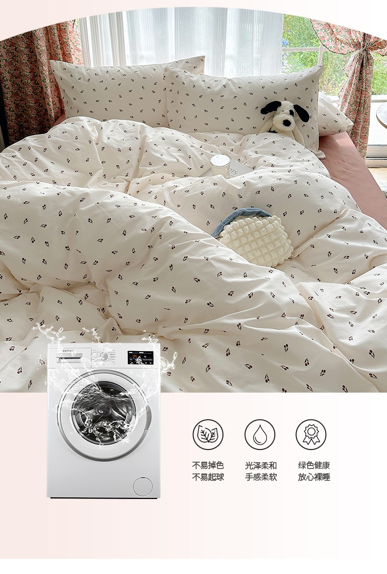 雅居纺 2023新款13070全棉印花四件套 小樱桃