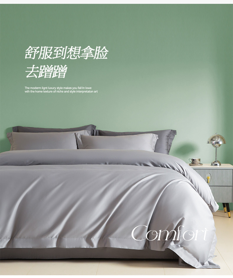 商品名称:艾佳 2025新款50s长绒棉纯色四件套 浅灰