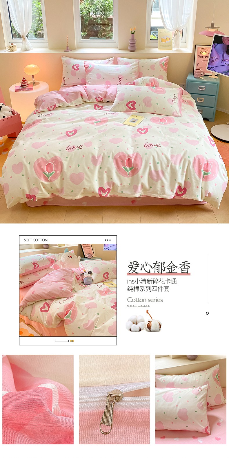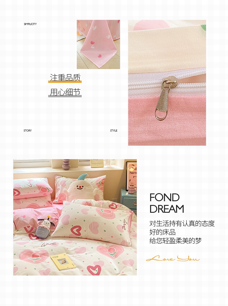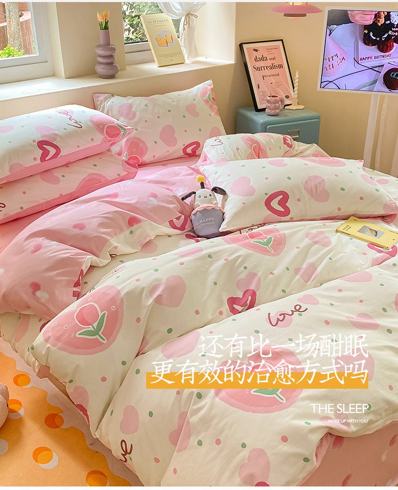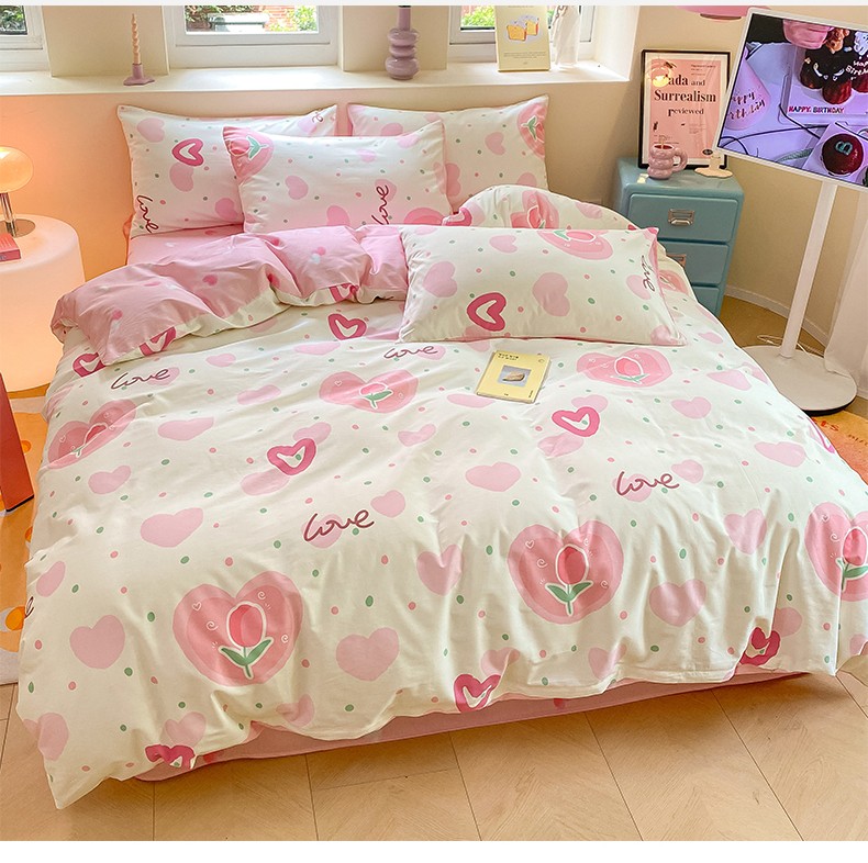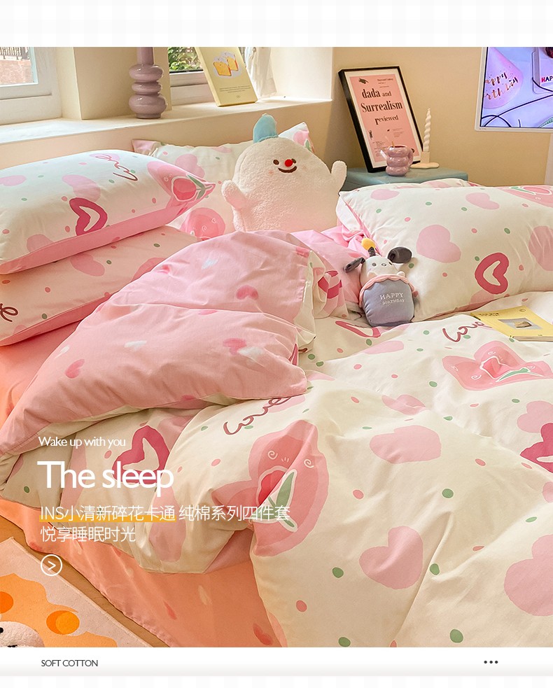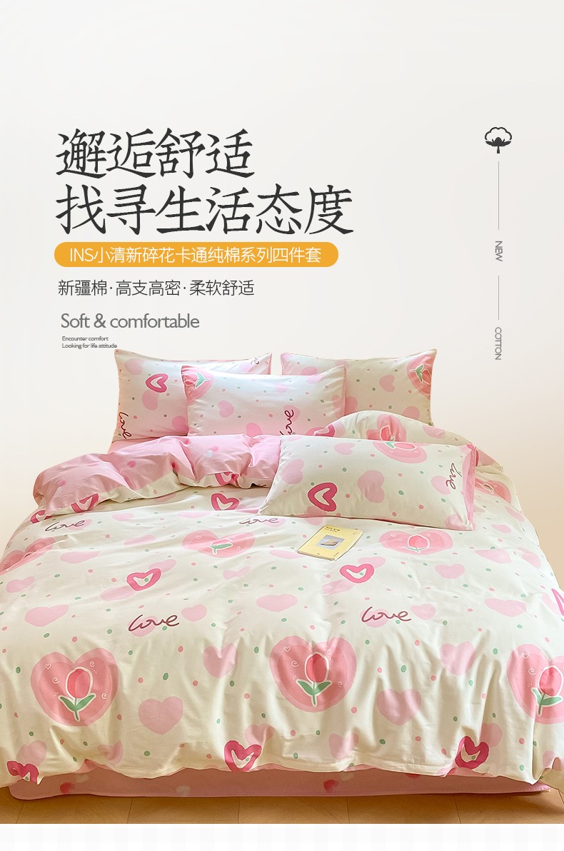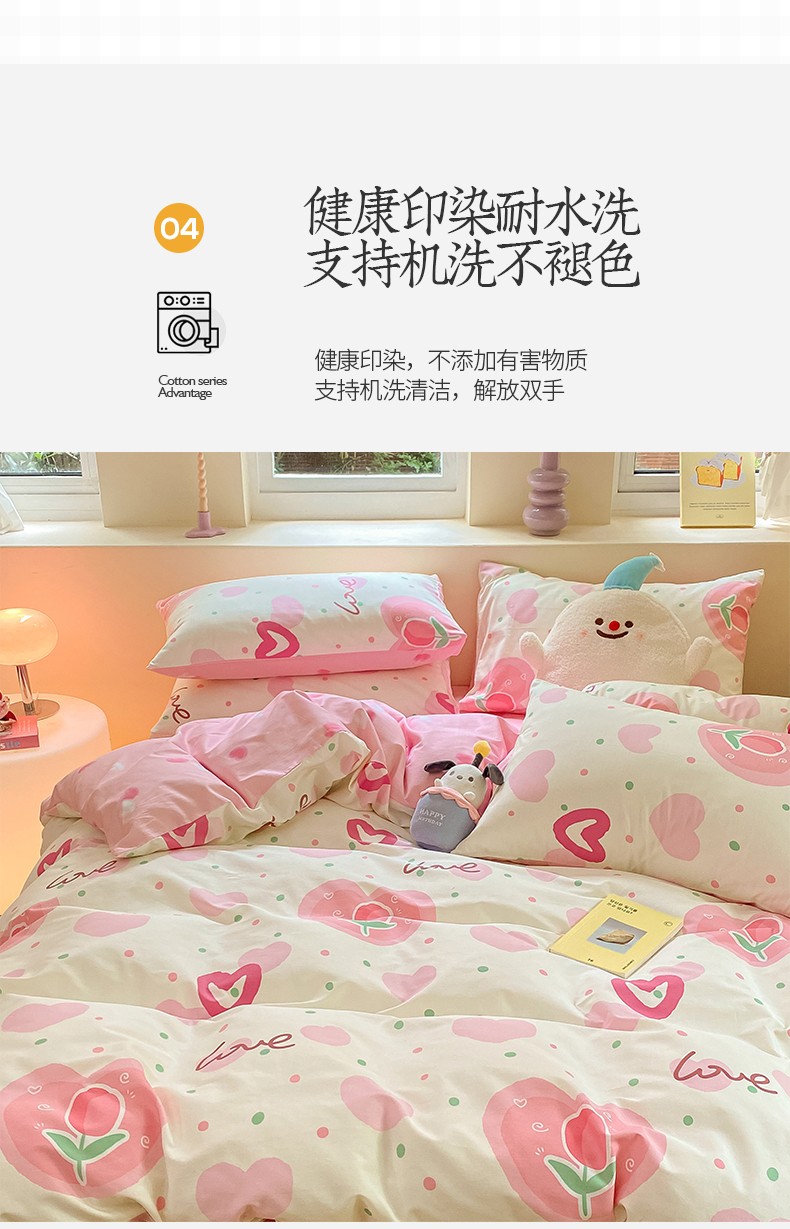 商品名称:桃子 2023新款ins小清新碎花卡通纯棉系列四件套 棉-爱心郁金香