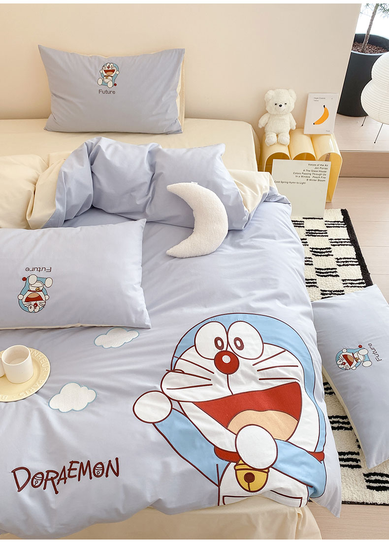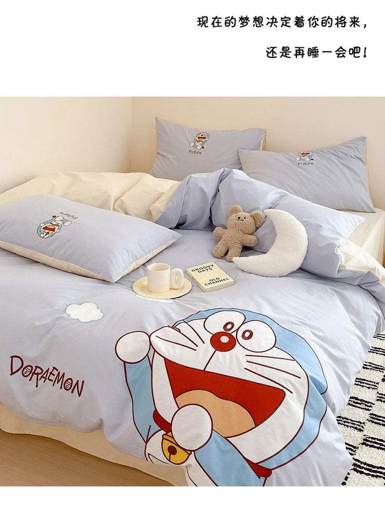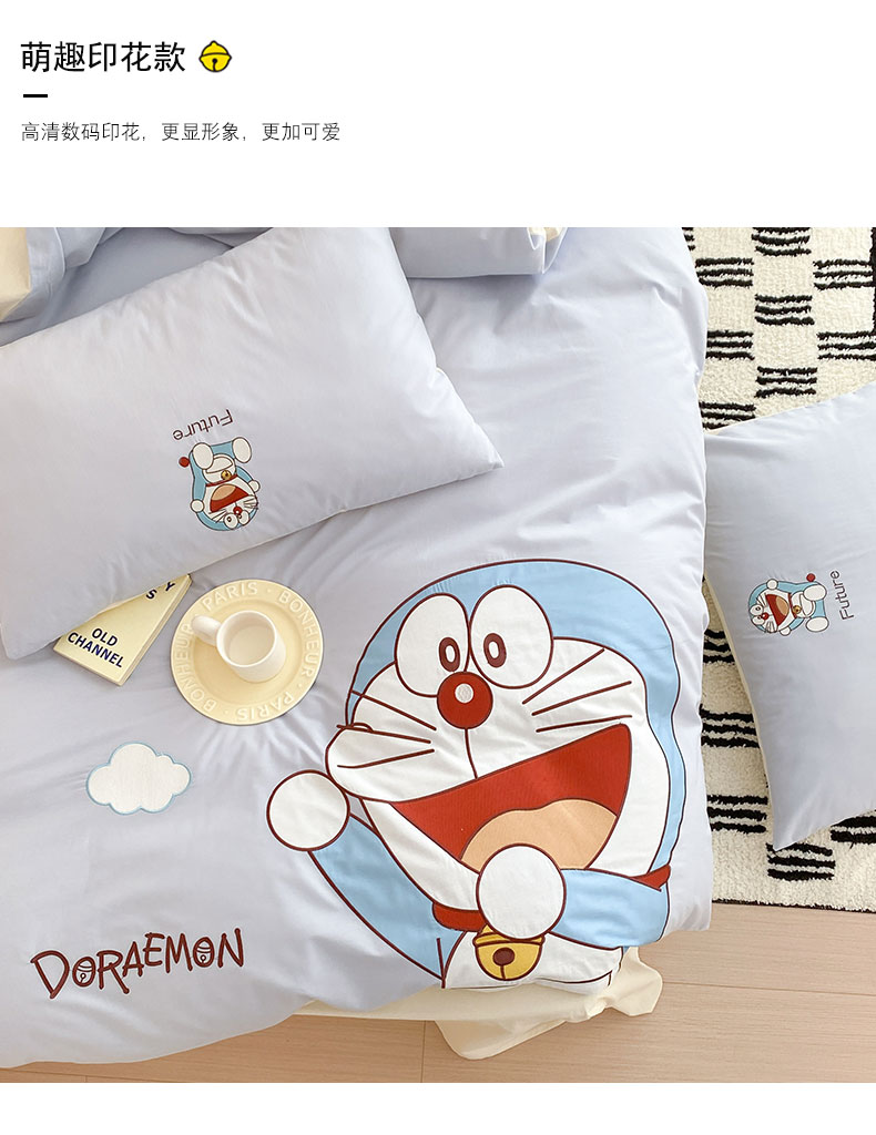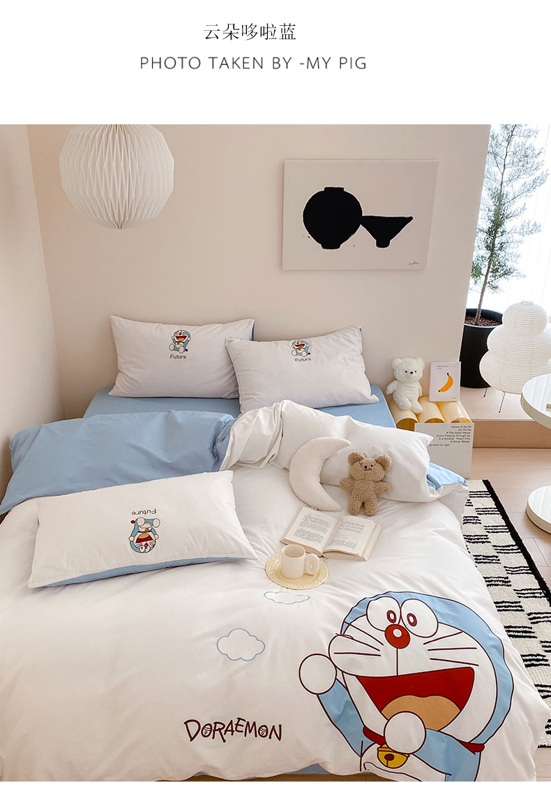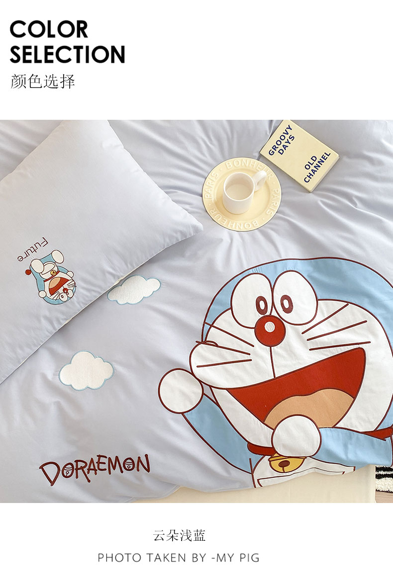 商品名称:猪先生 2023新款 叮当猫纯棉绣花四件套 云朵浅蓝