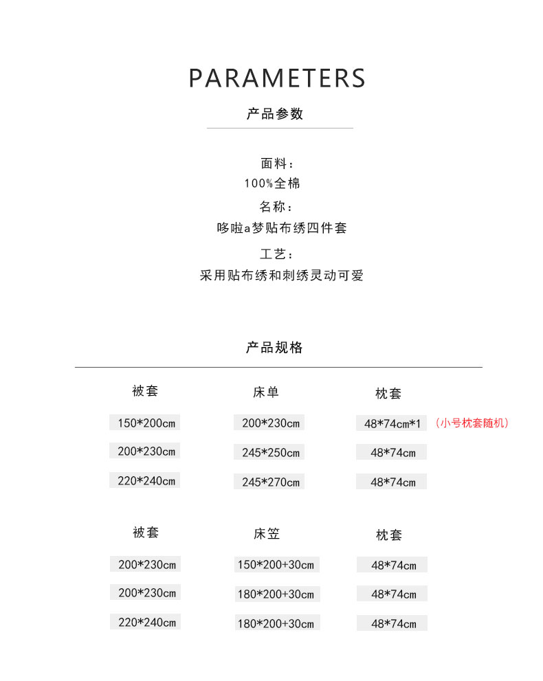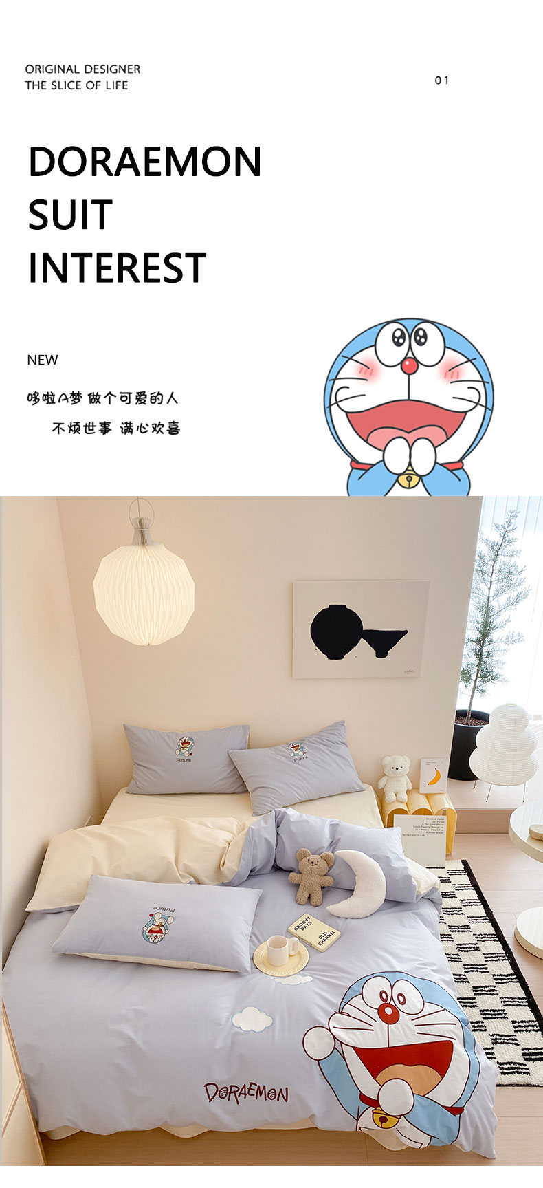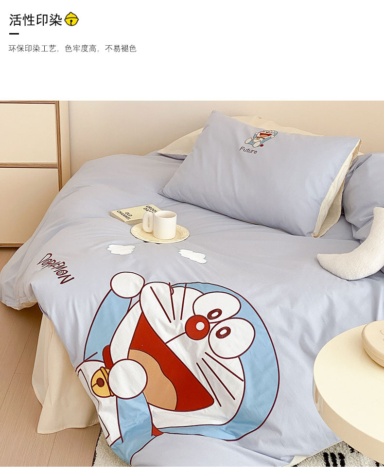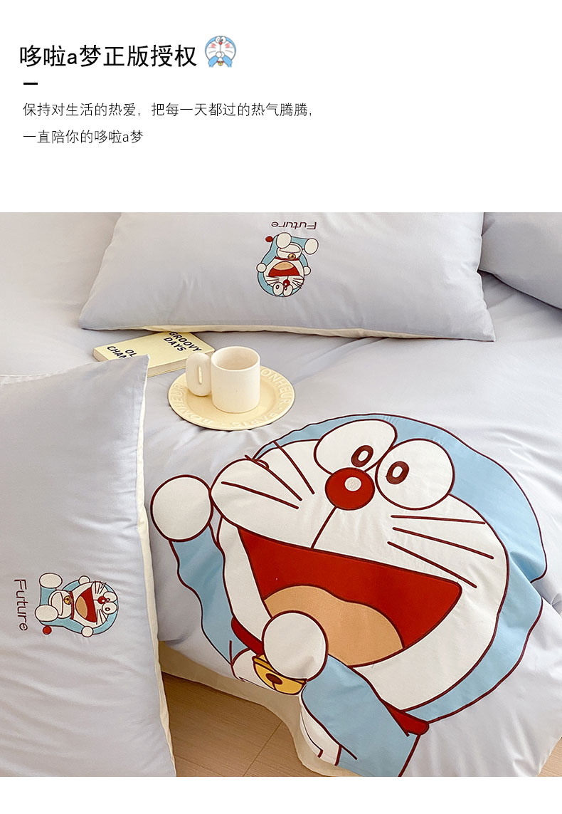 商品名称:猪先生 2023新款 叮当猫纯棉绣花四件套 云朵浅蓝