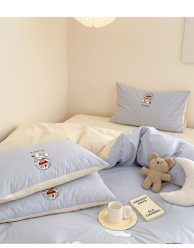 猪先生 2023新款 叮当猫纯棉绣花四件套 云朵浅蓝