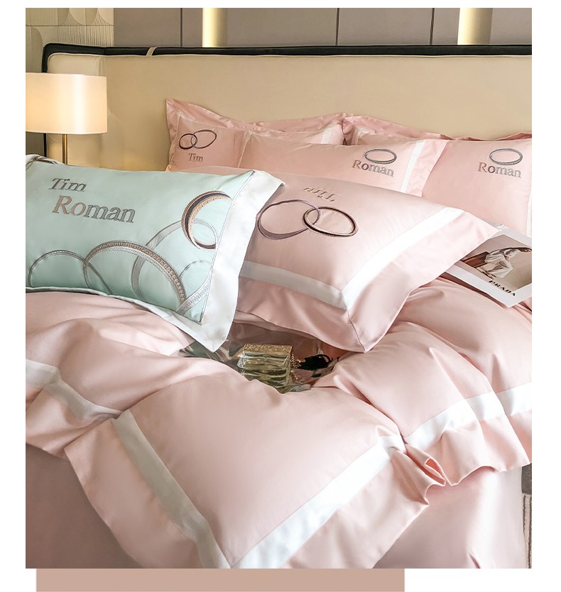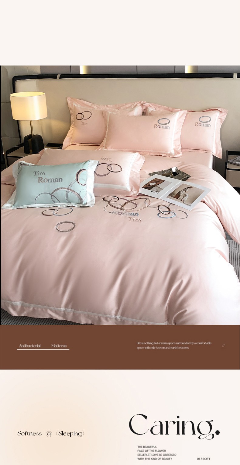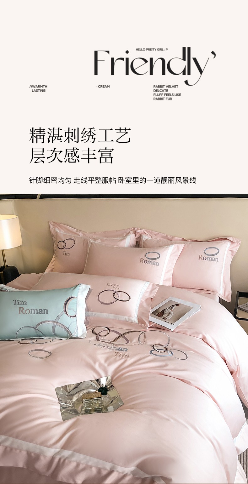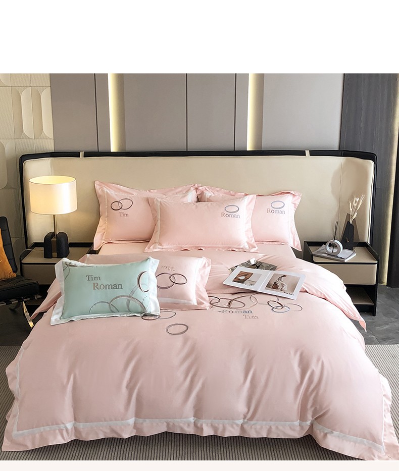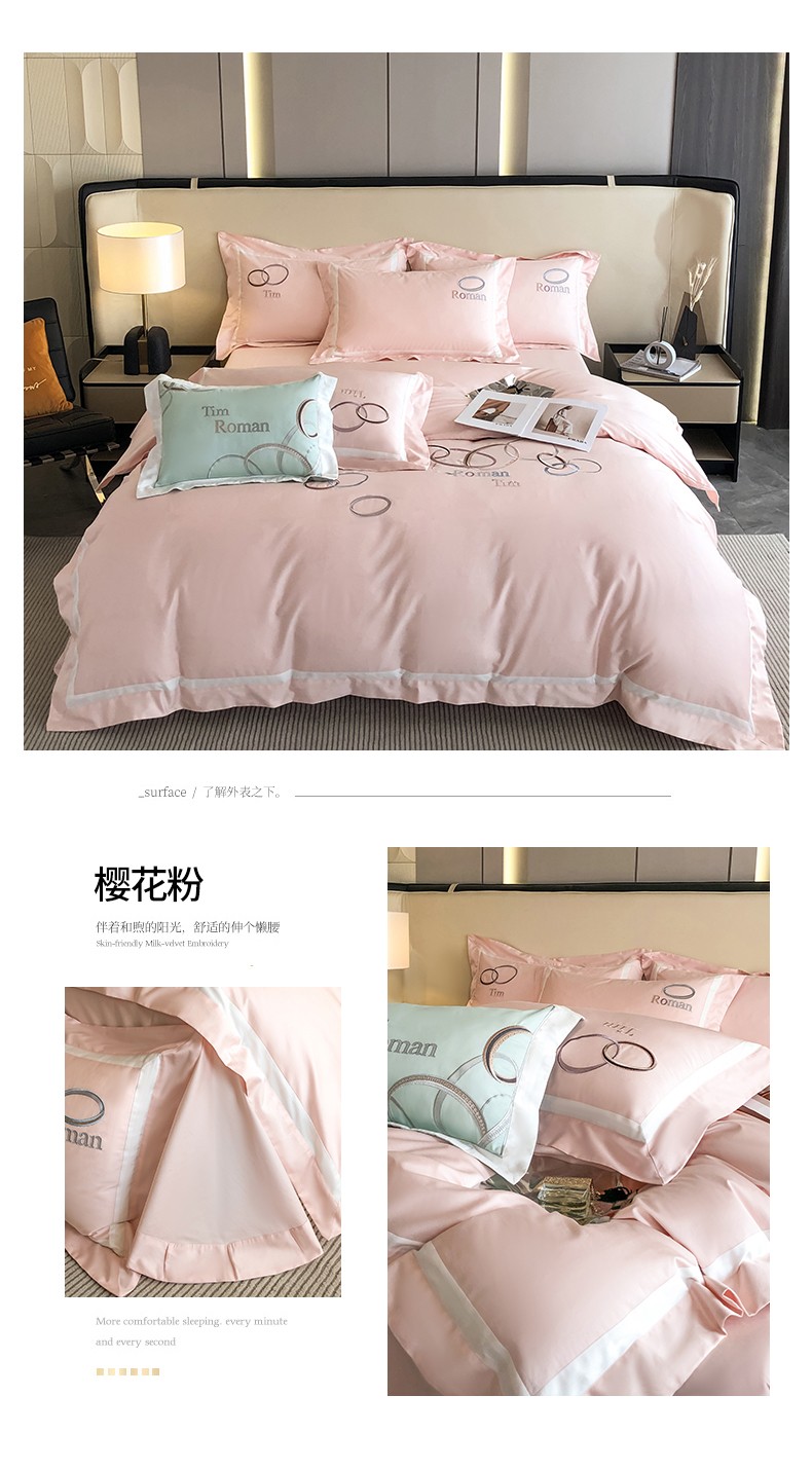 商品名称:魅都 2023新款100s长绒棉简约轻奢刺绣四件套-科迪亚 科迪亚-樱花粉