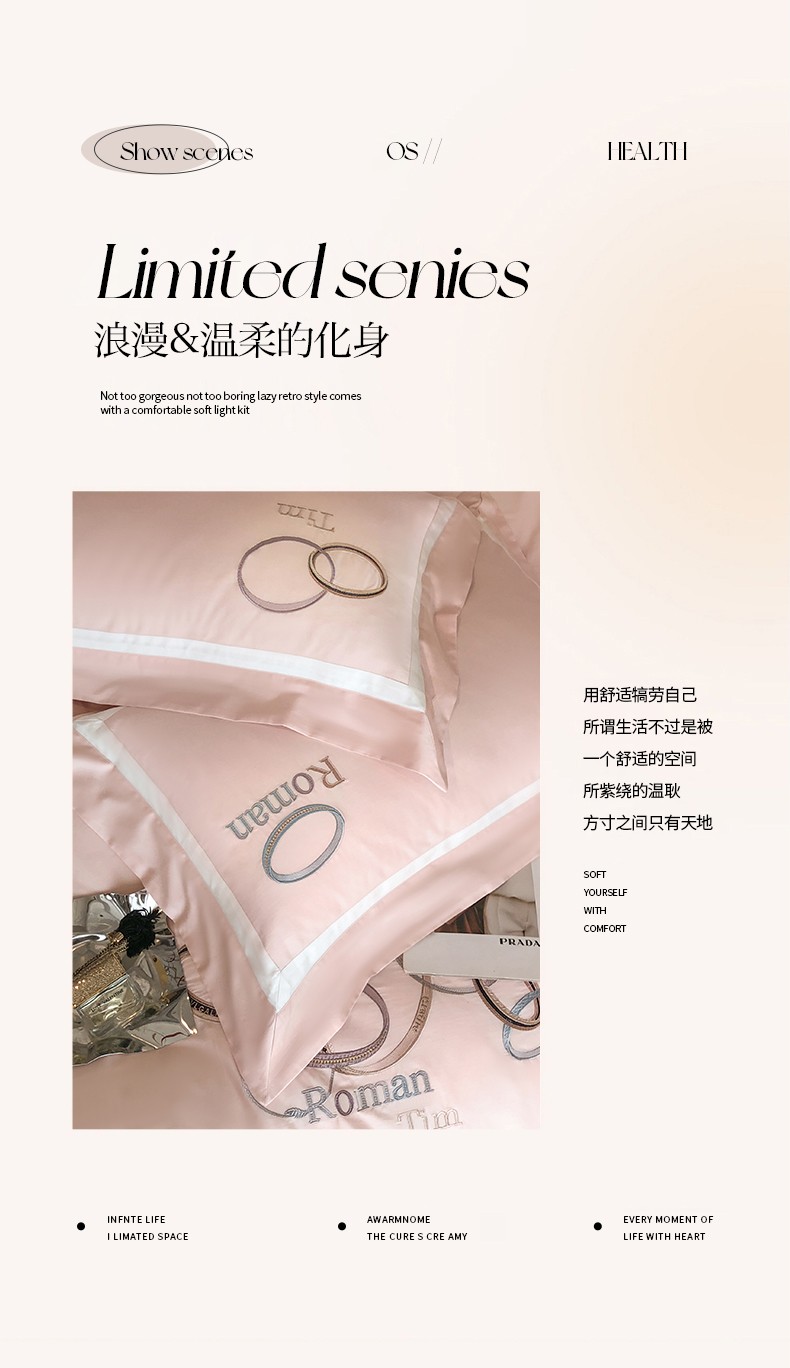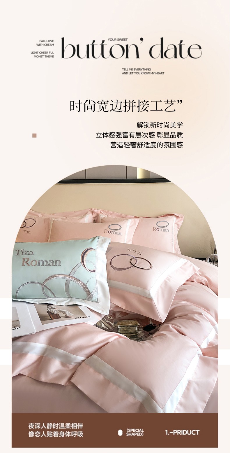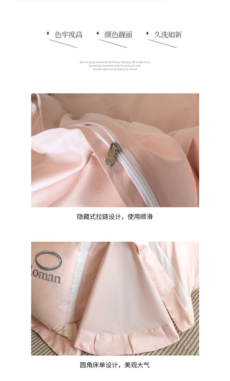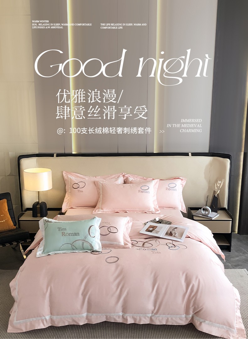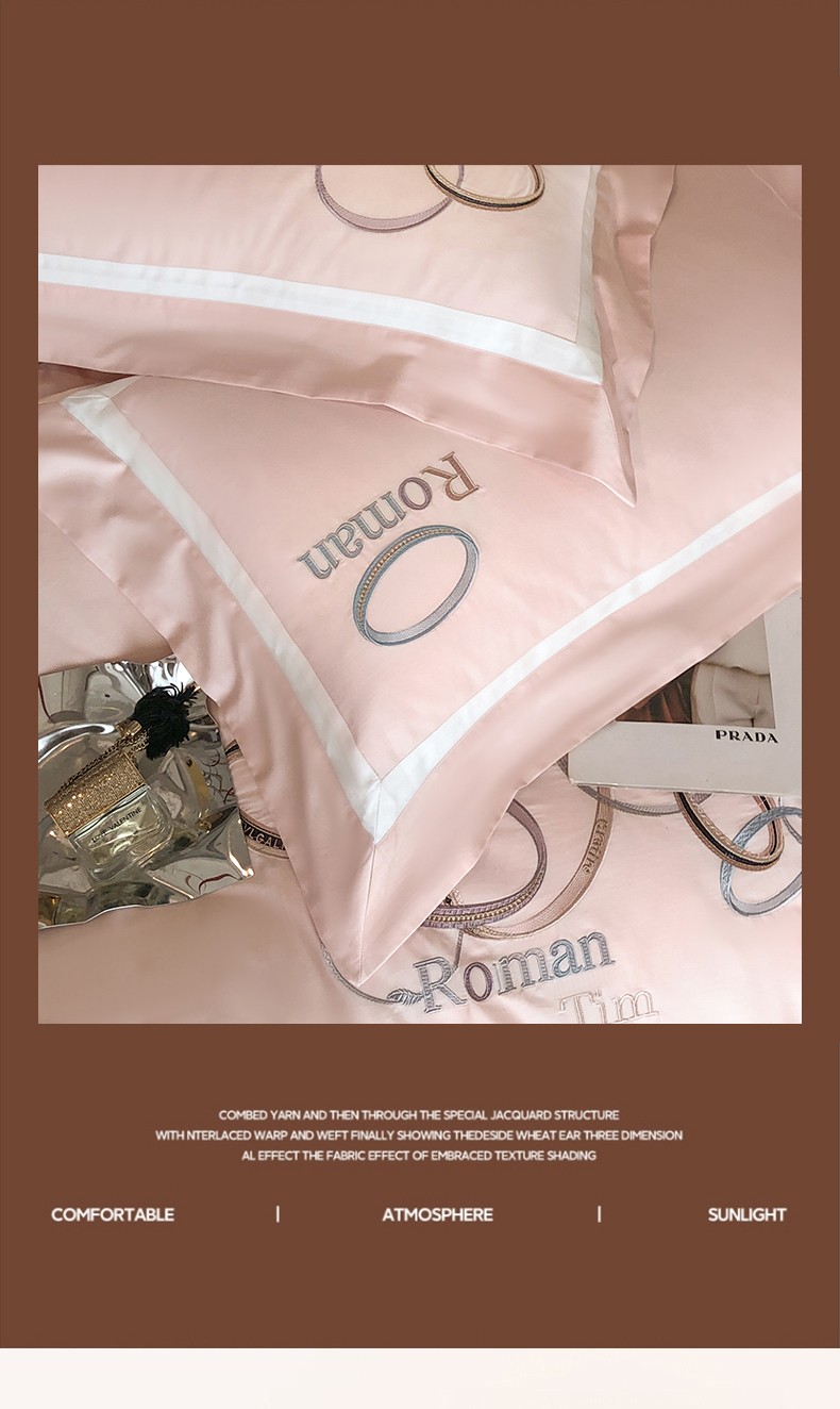 商品名称:魅都 2023新款100s长绒棉简约轻奢刺绣四件套-科迪亚 科迪亚-樱花粉