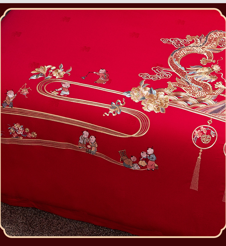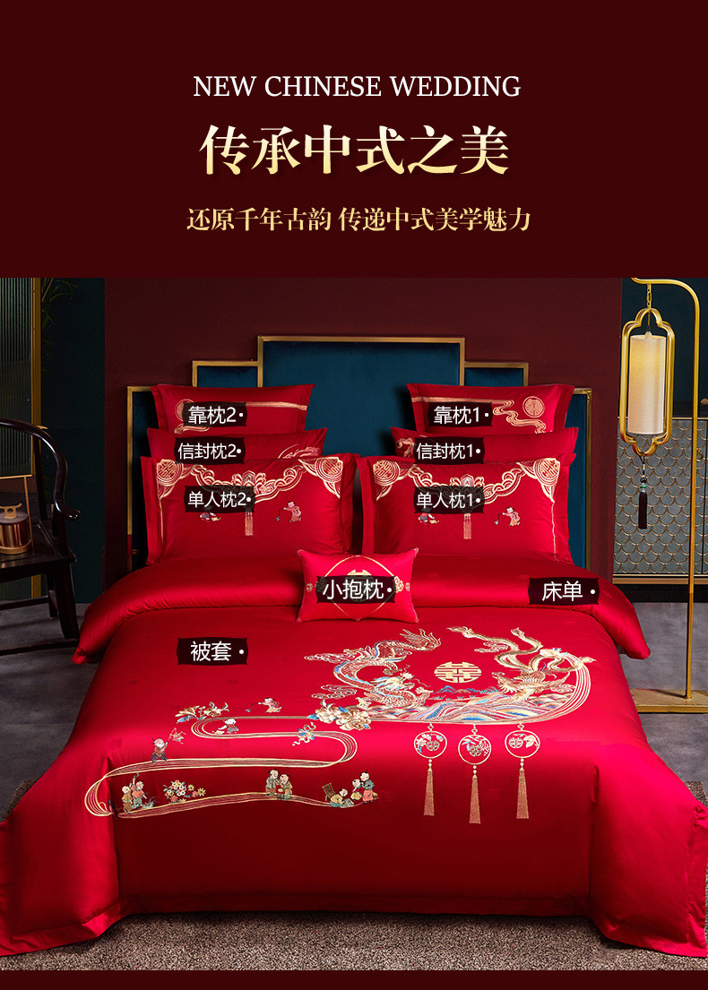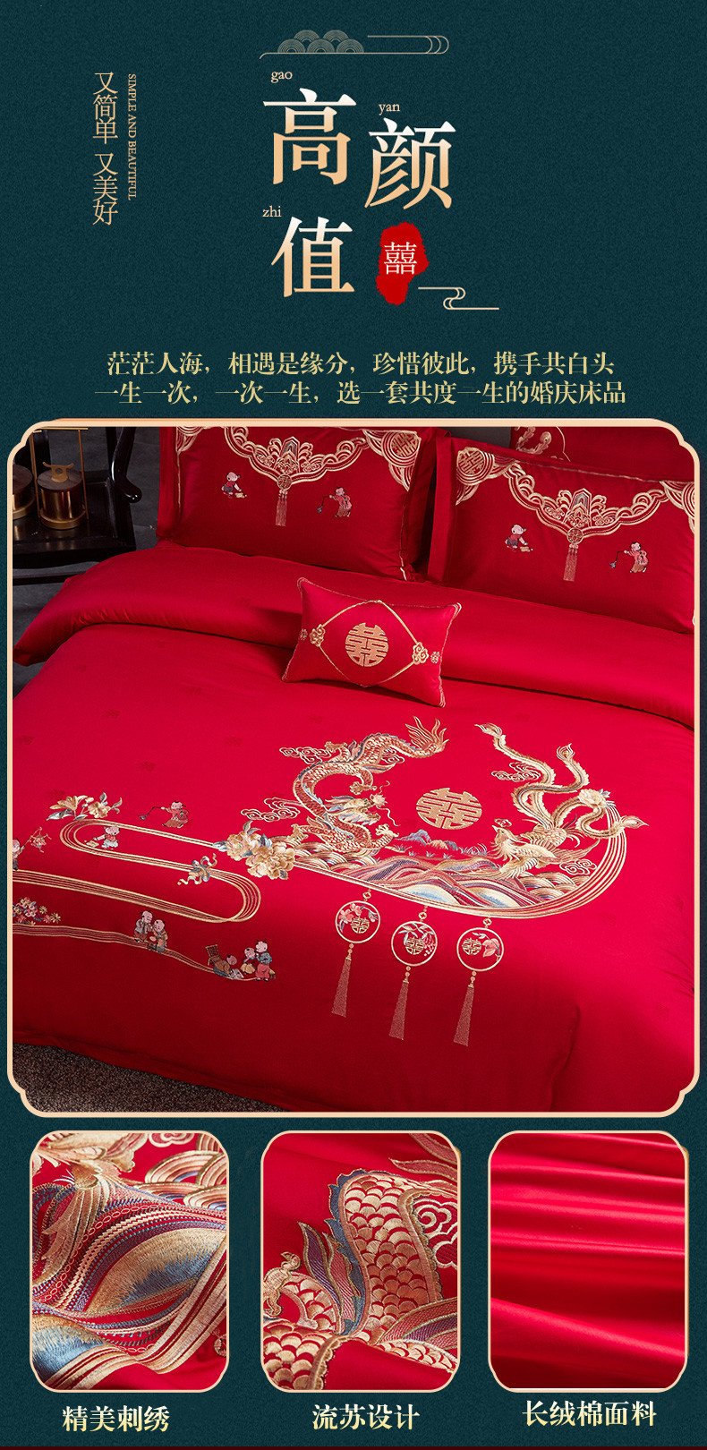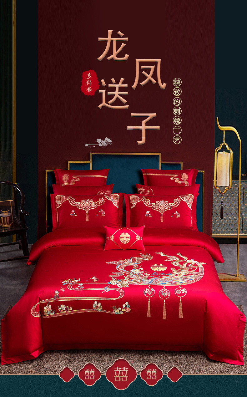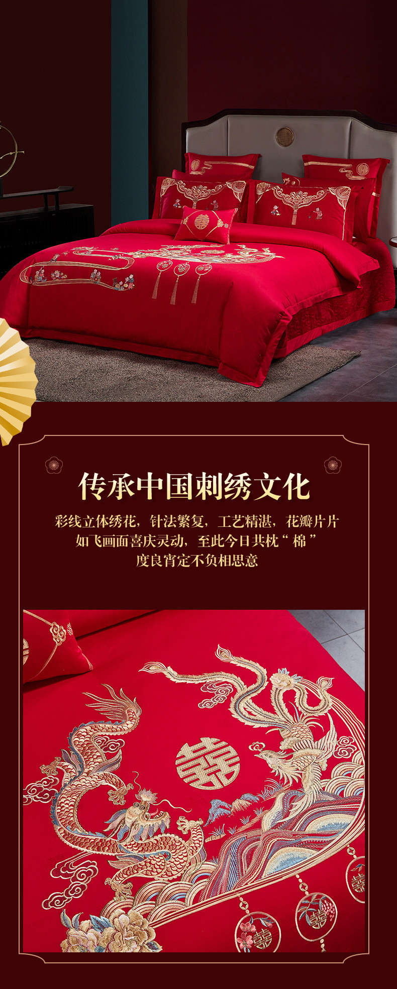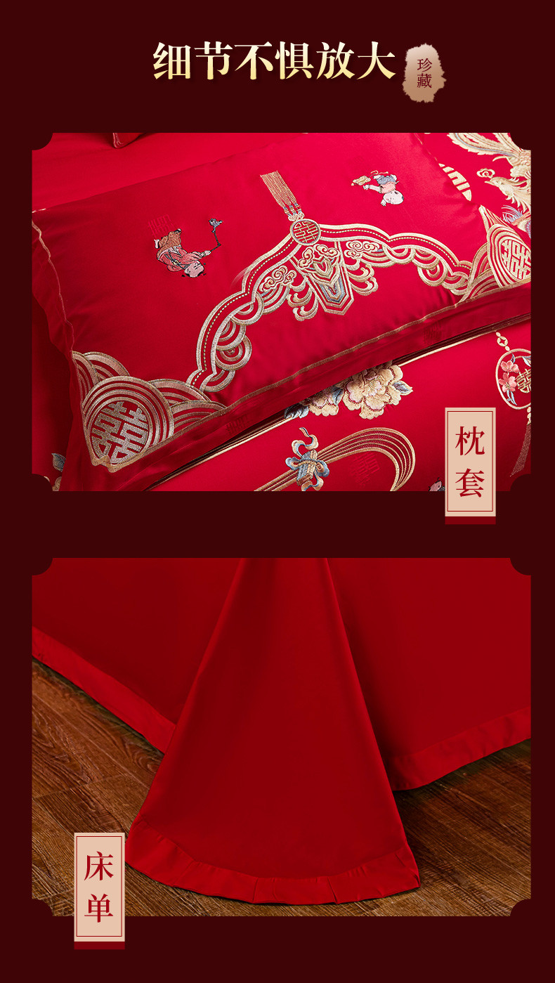 当前位置: 91家纺网 > 商品网购 > 床品套件 > 四件套 > 婚庆四件套 > 布乐意 2025新款全棉绣花大红婚庆四件套多件套直播 龙凤送子