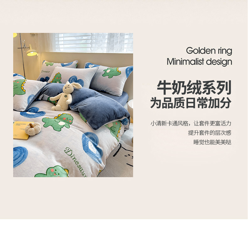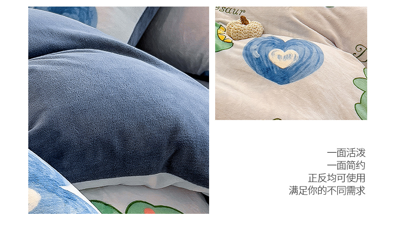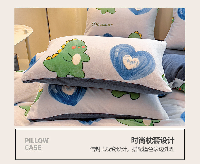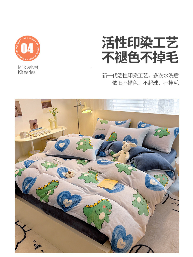 商品名称:芃成 2023新款双面牛奶绒印花四件套 爱心恐龙