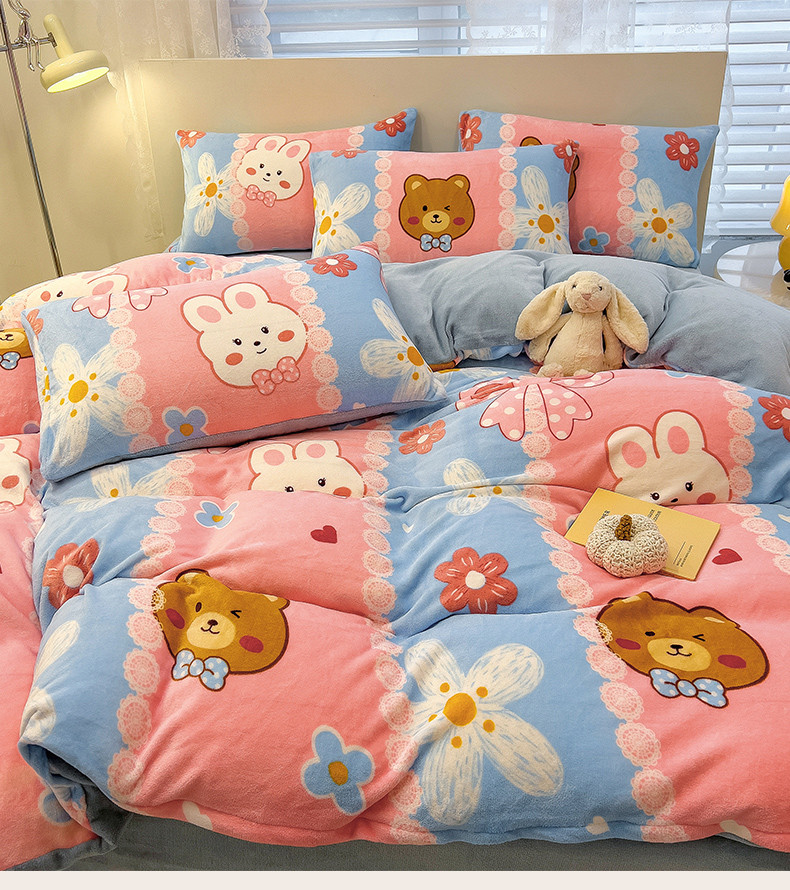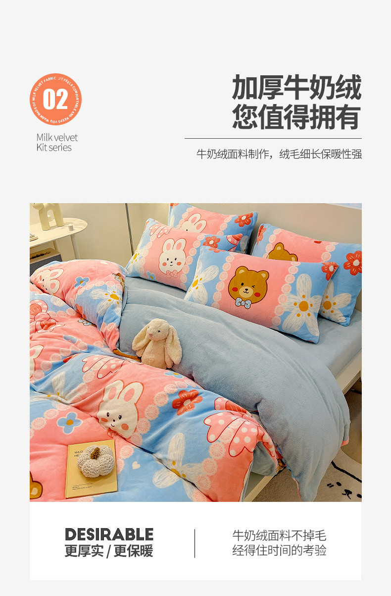商品名称:芃成 2023新款双面牛奶绒印花四件套 小伙伴