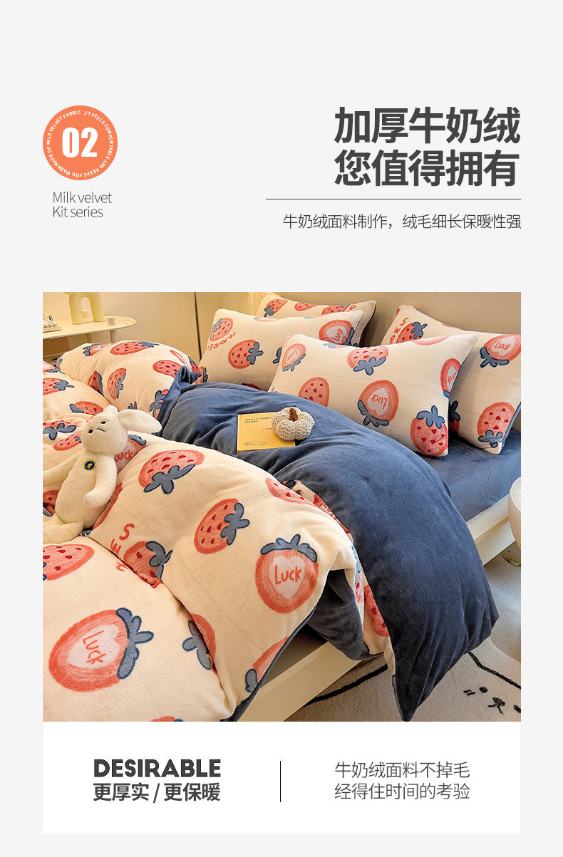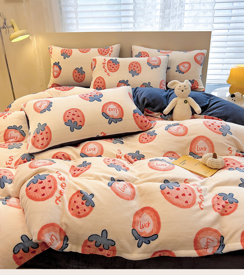 芃成 2023新款牛奶绒印花单被套 草莓奶昔