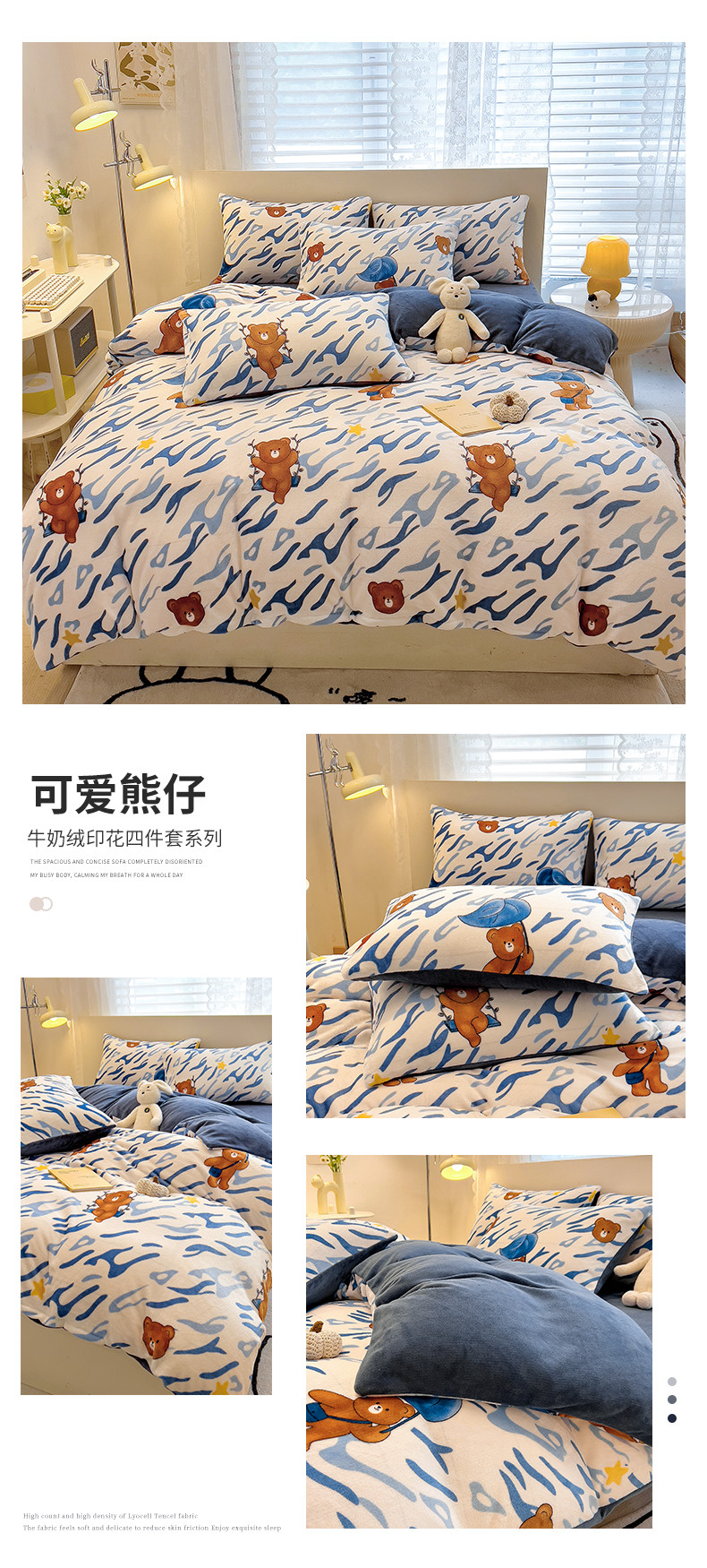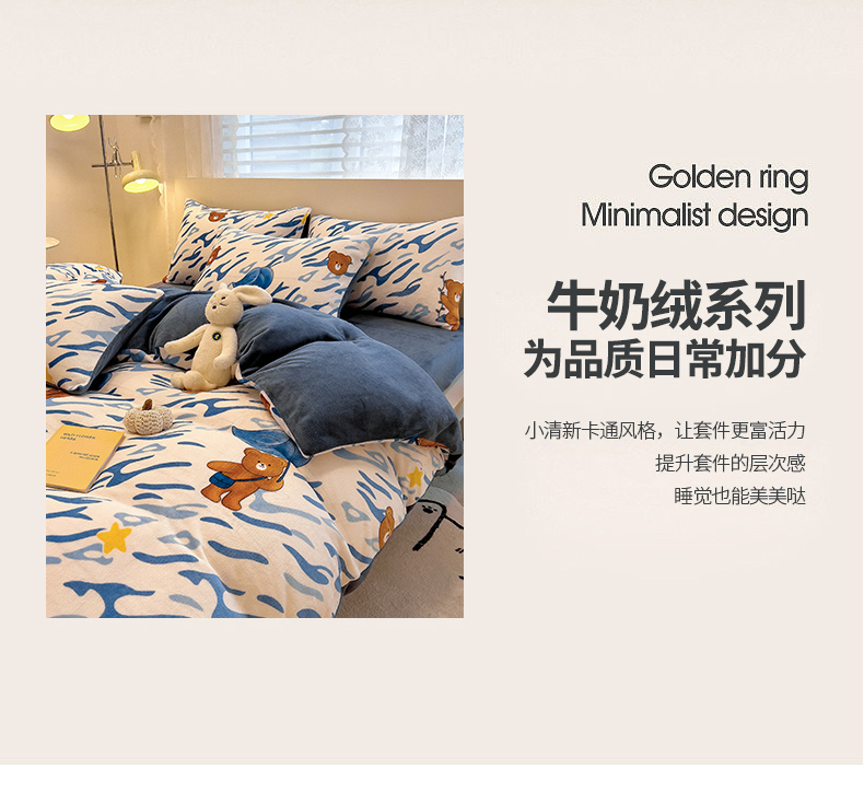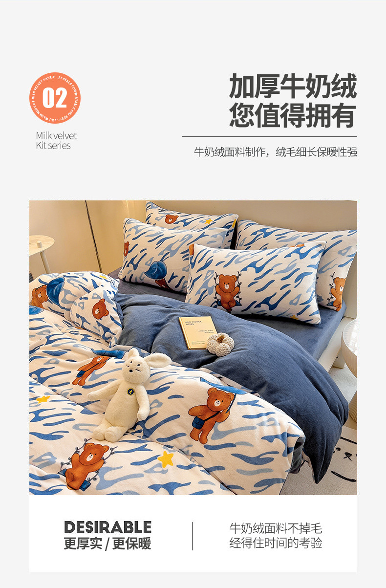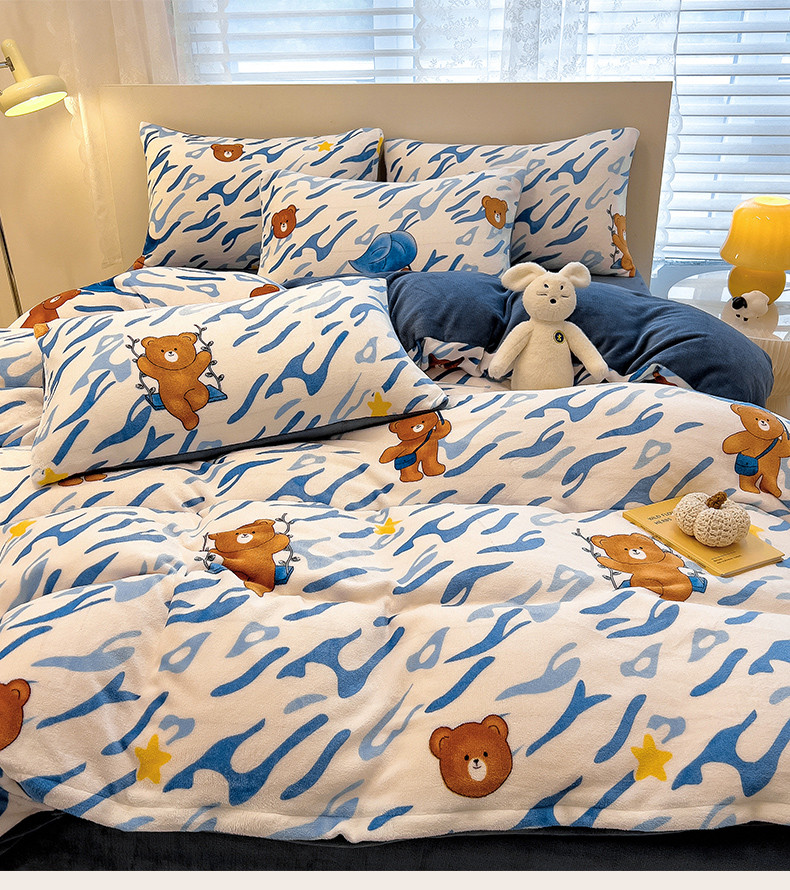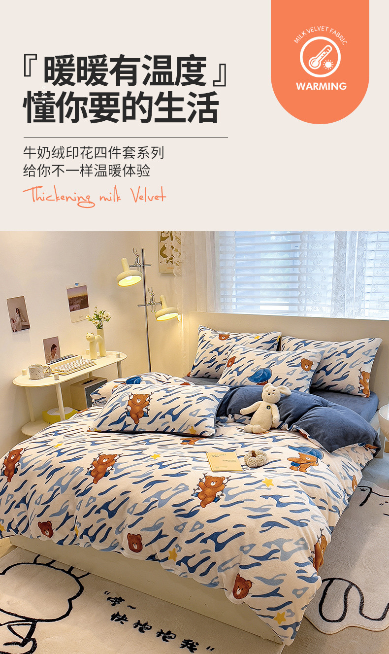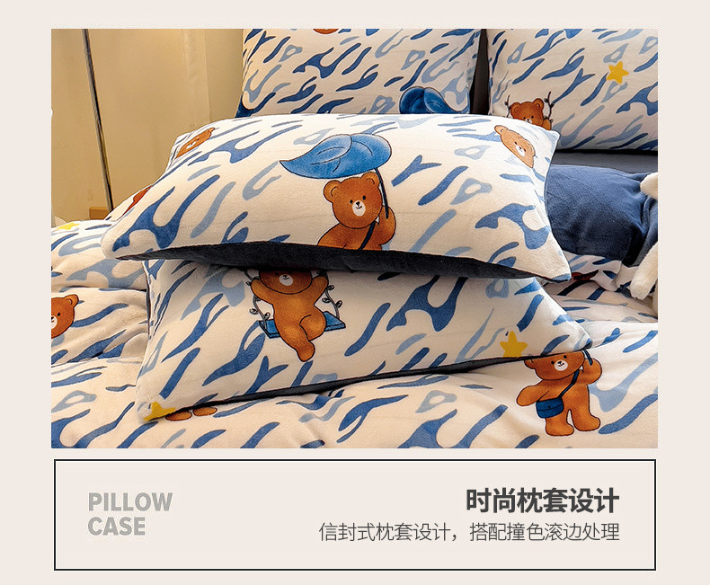• 91家纺网 家纺一手货源 找家纺 芃成 2023新款牛奶绒印花单被套 可爱熊仔