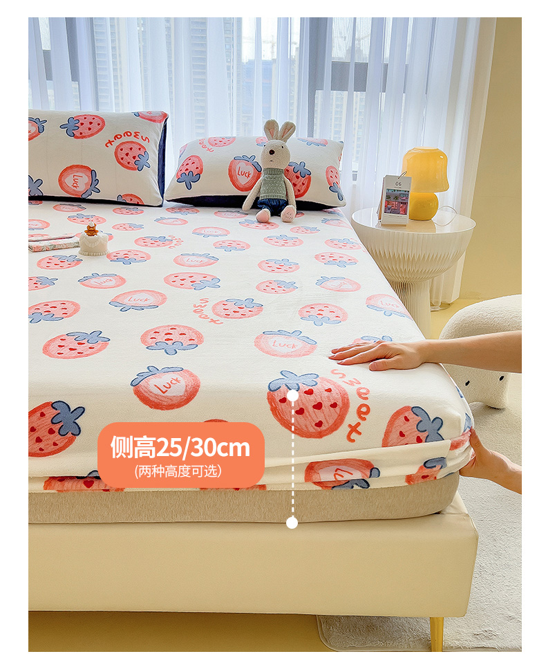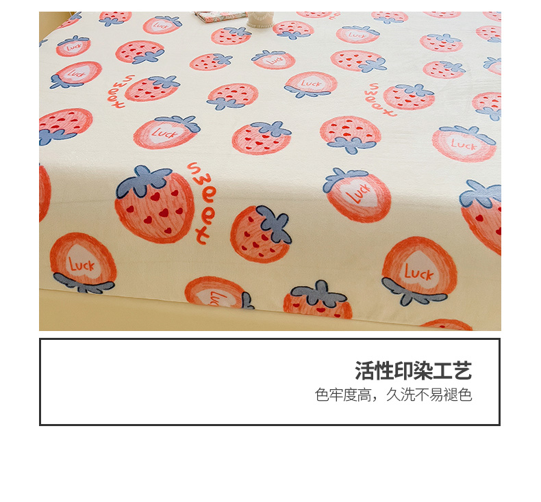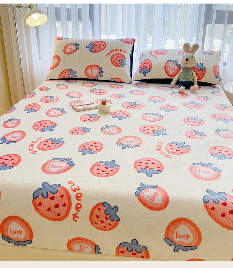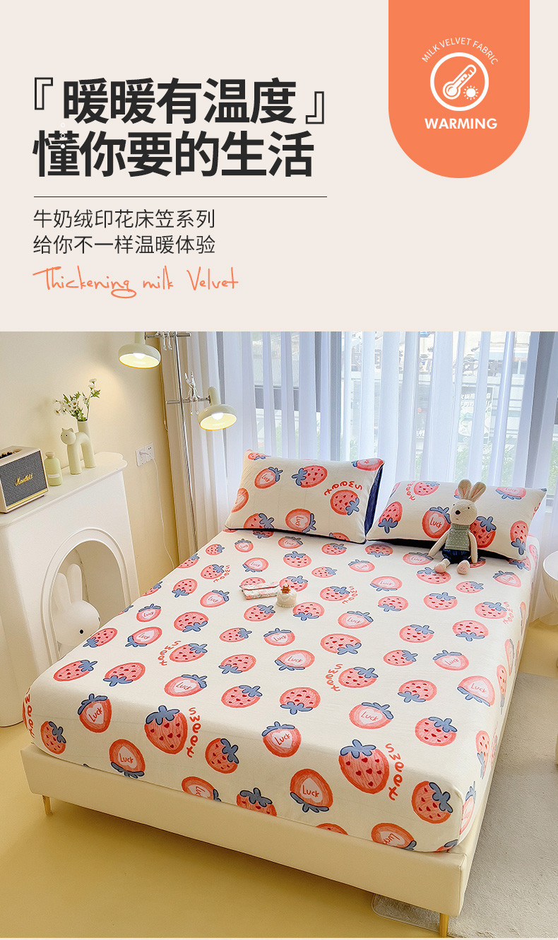 芃成家纺 2023新款牛奶绒印花床笠 草莓奶昔