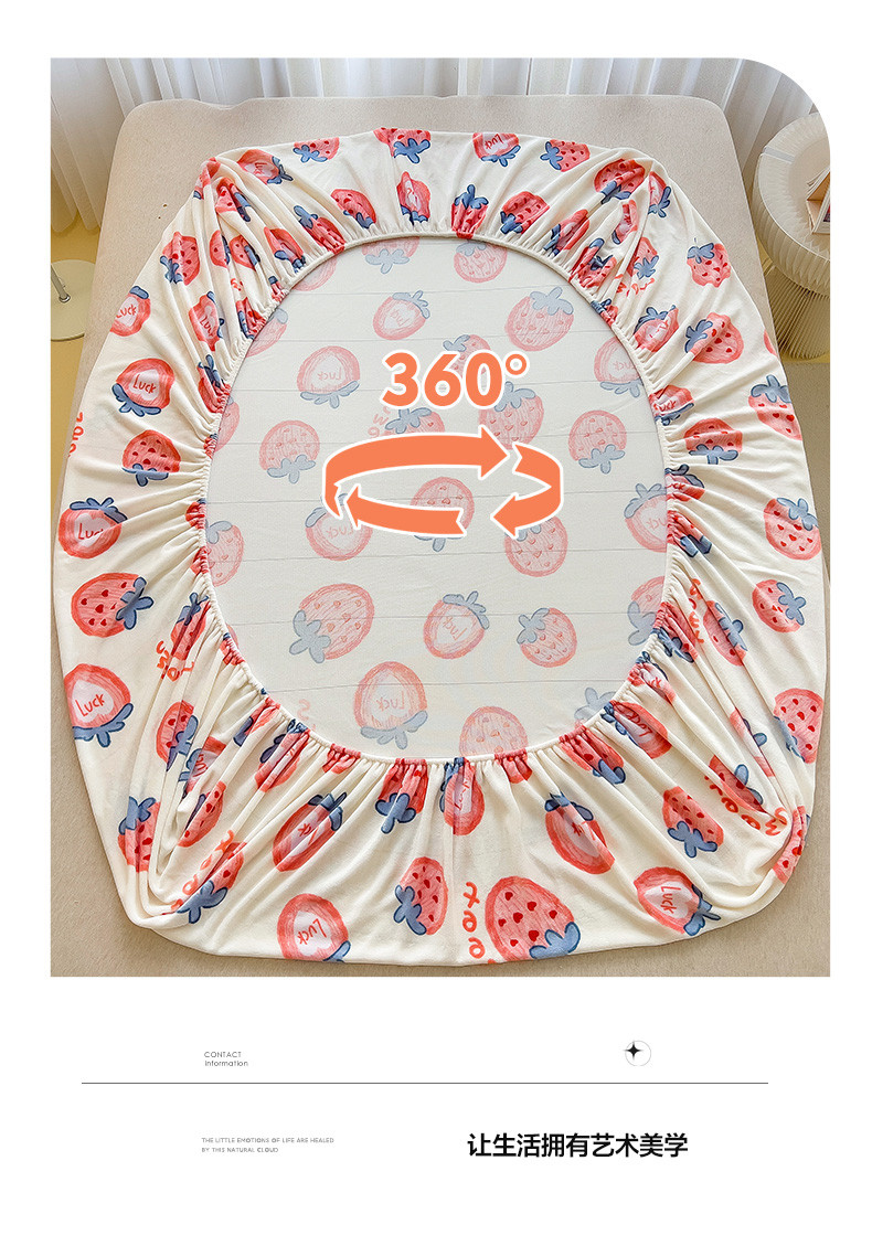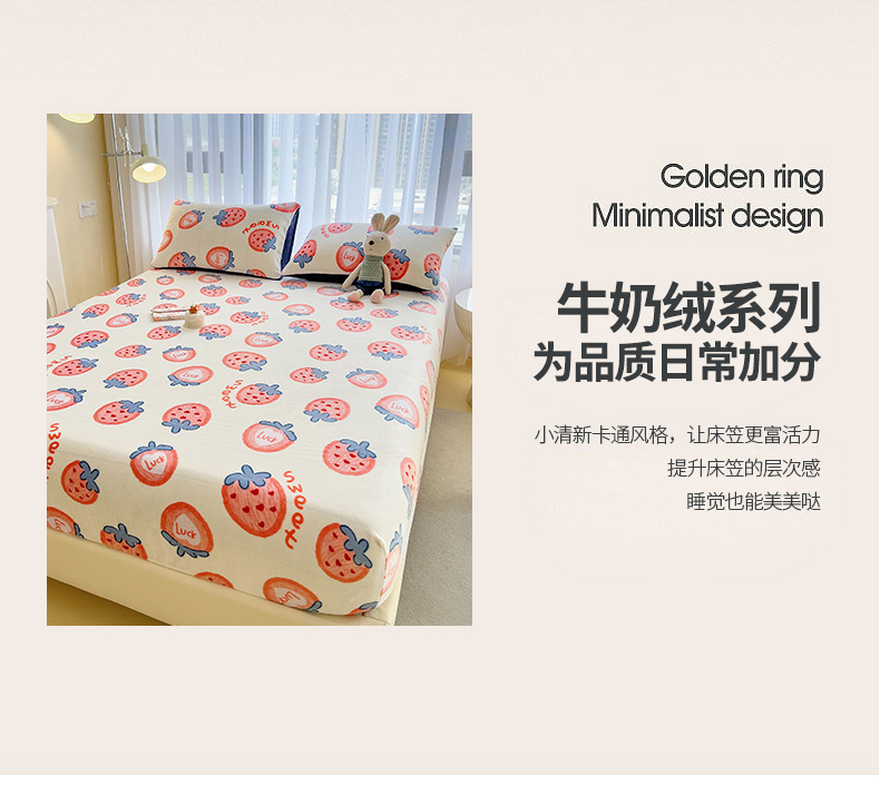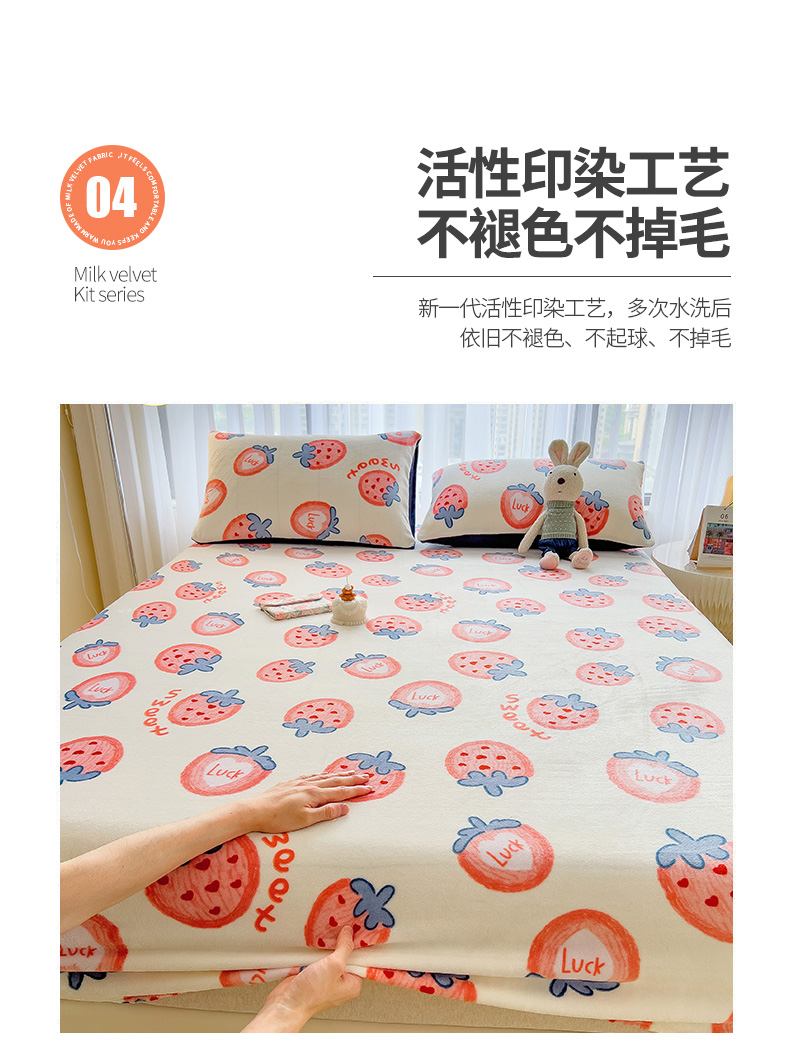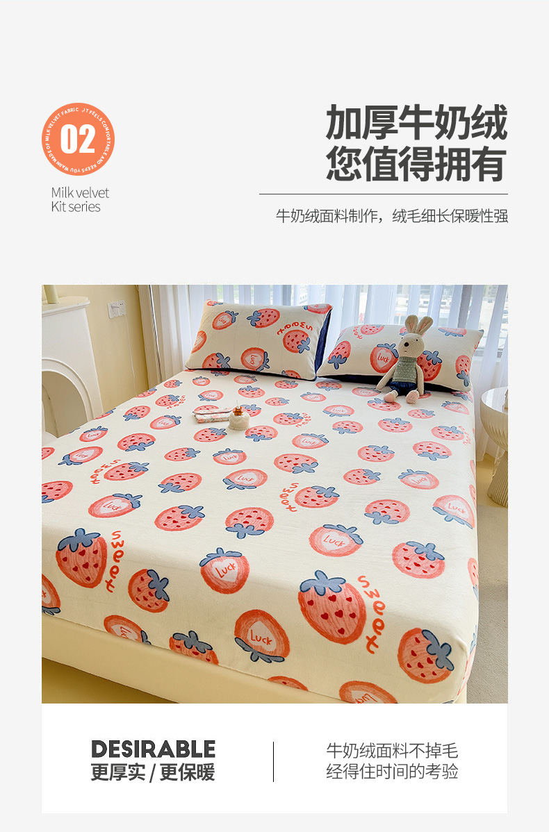 芃成家纺 2023新款牛奶绒印花床笠 草莓奶昔
