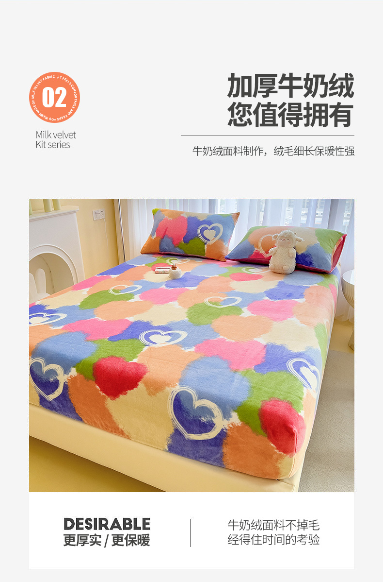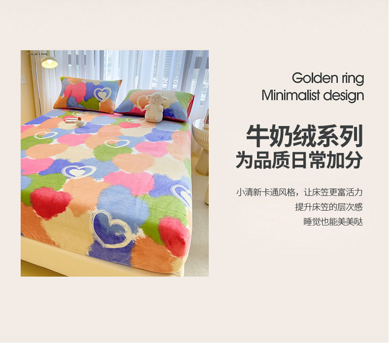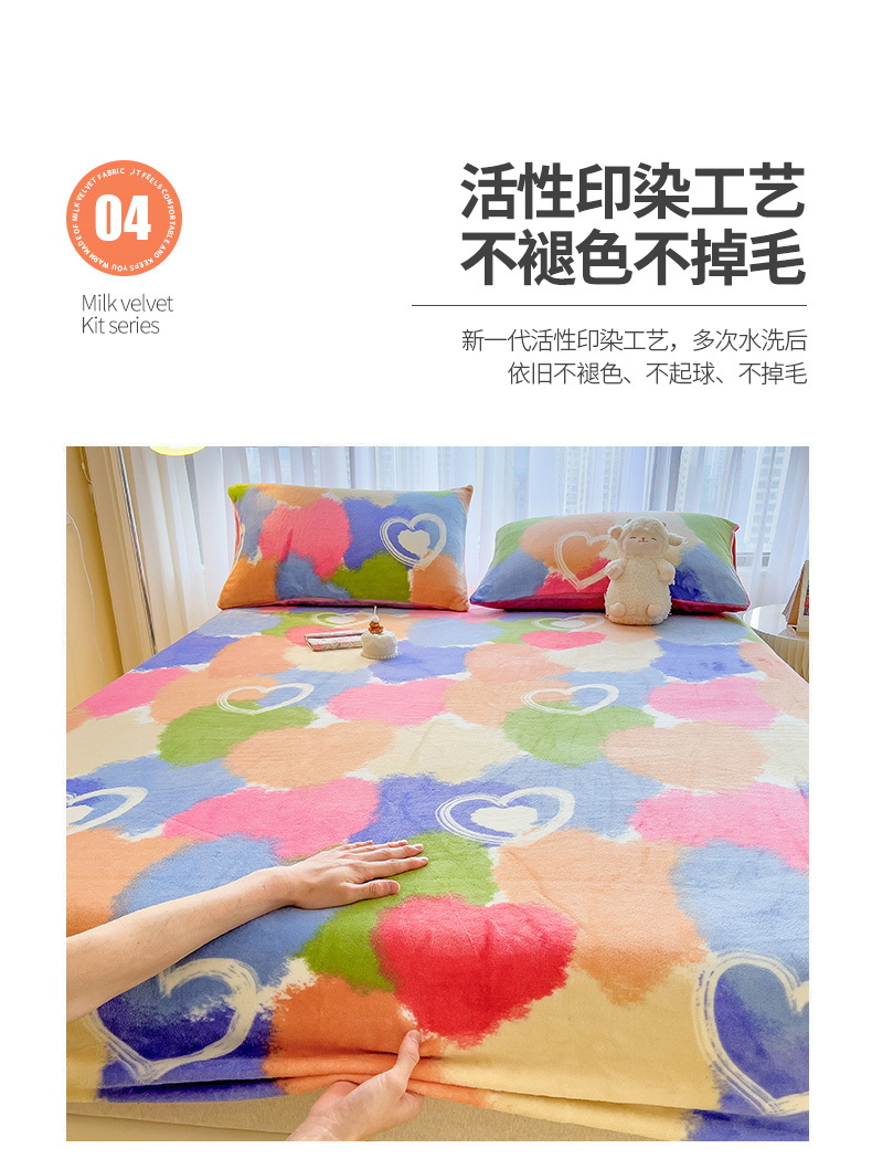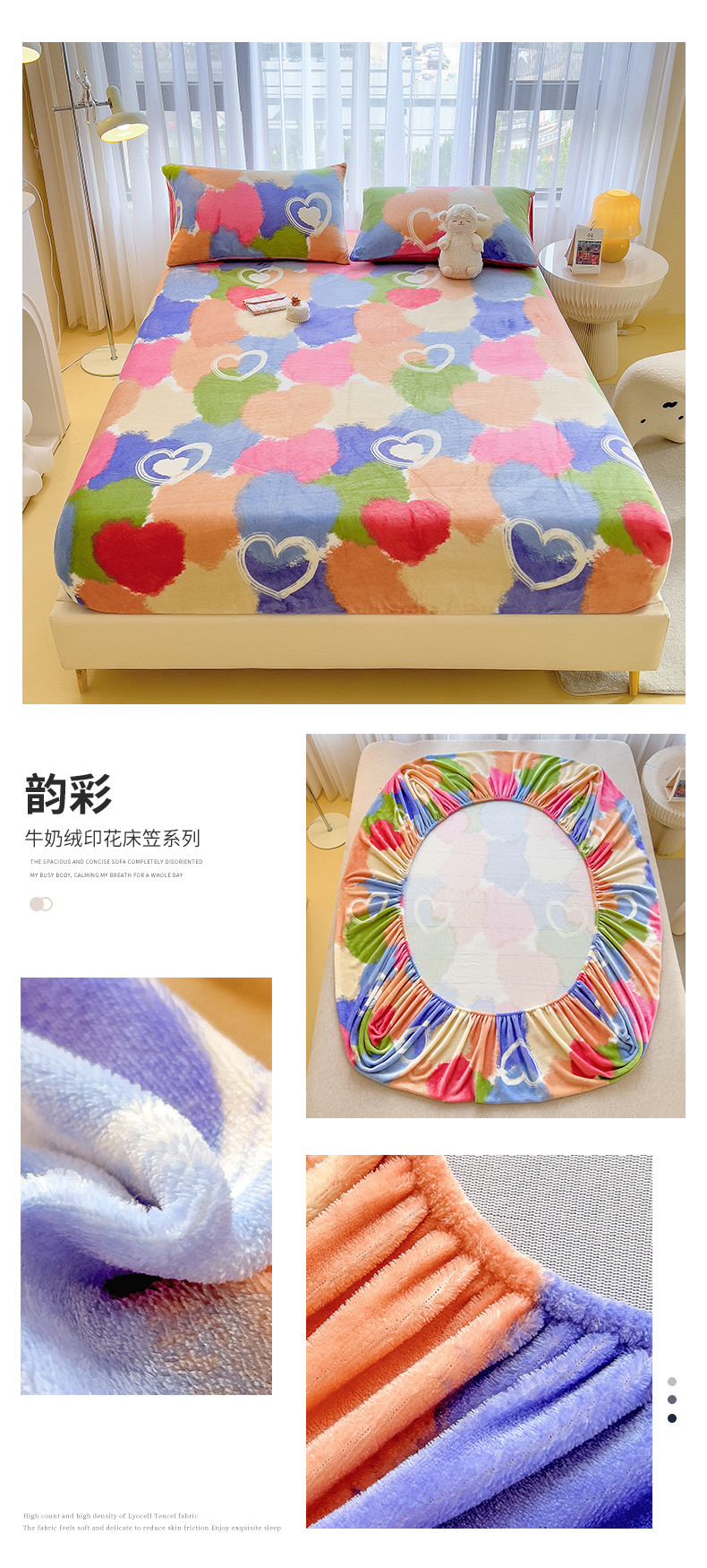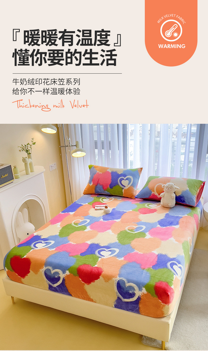 • 91家纺网 家纺一手货源 找家纺 芃成家纺 2023新款牛奶绒印花床笠 韵彩