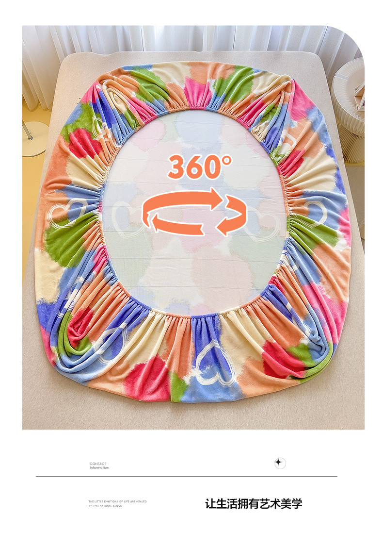 芃成家纺 2023新款牛奶绒印花床笠 韵彩