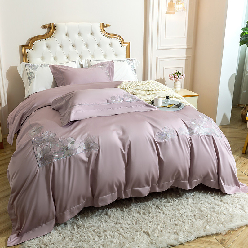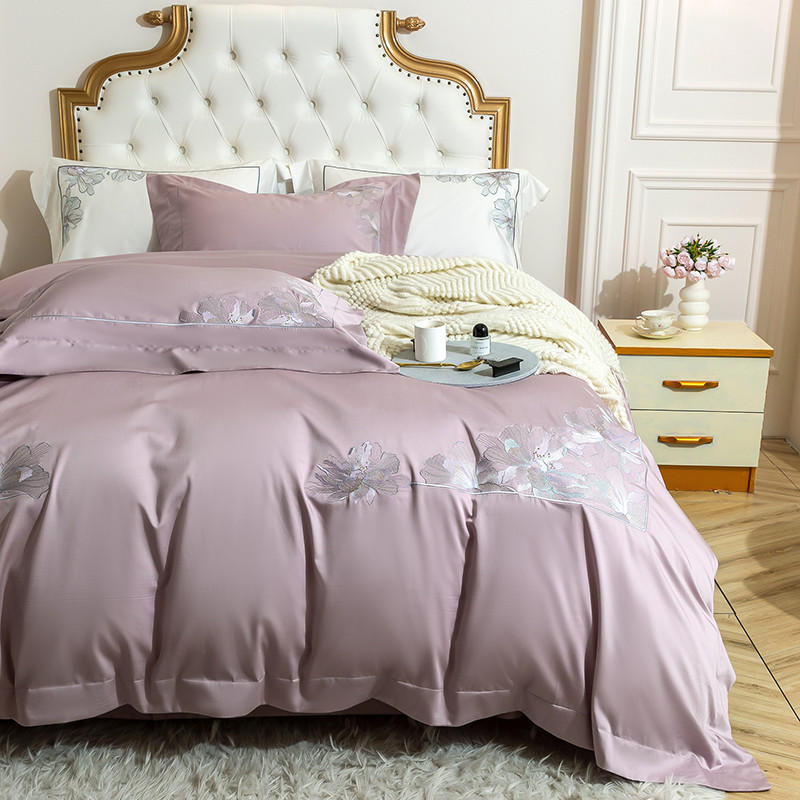商品名称:淼铭 2025新款天丝棉绣花四件套-花语系列 花语-紫