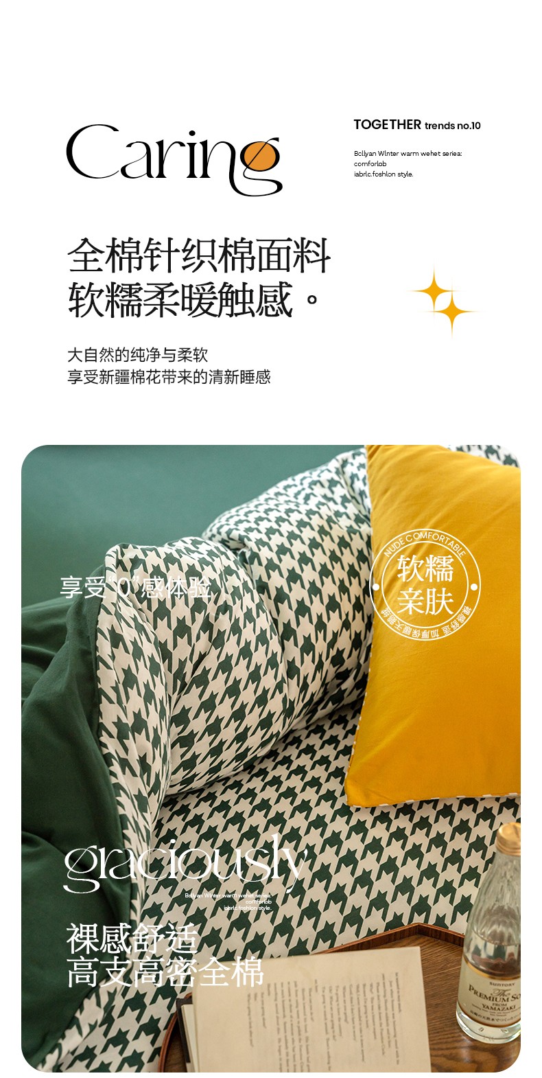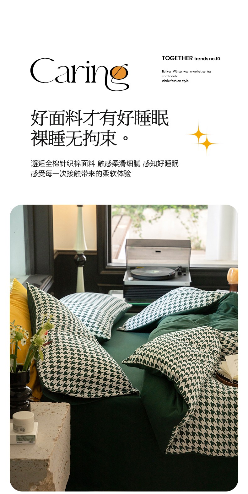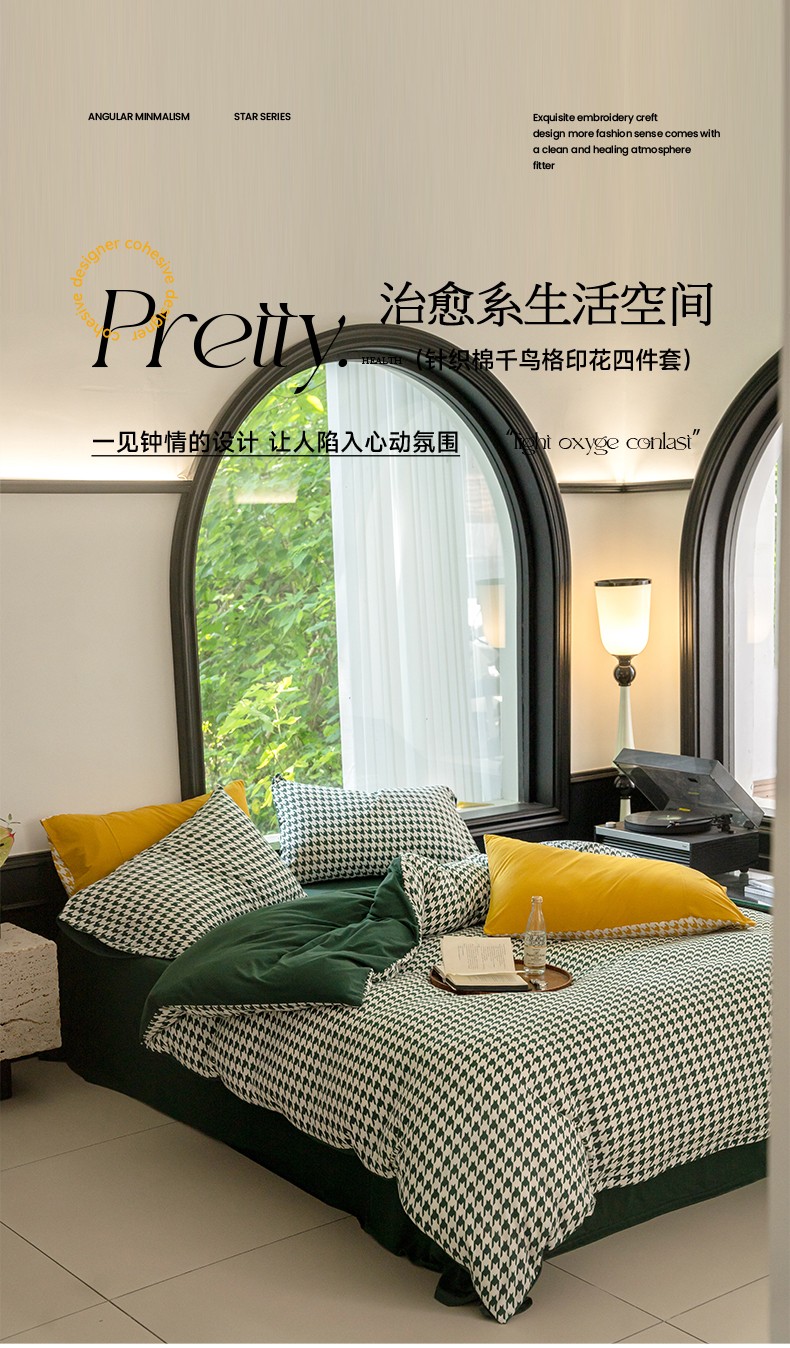 当前位置: 91家纺网 > 商品网购 > 床品套件 > 四件套 > 针织棉四件套 > 华超针织 2023新款针织棉千鸟格印花四件套 千鸟格墨绿