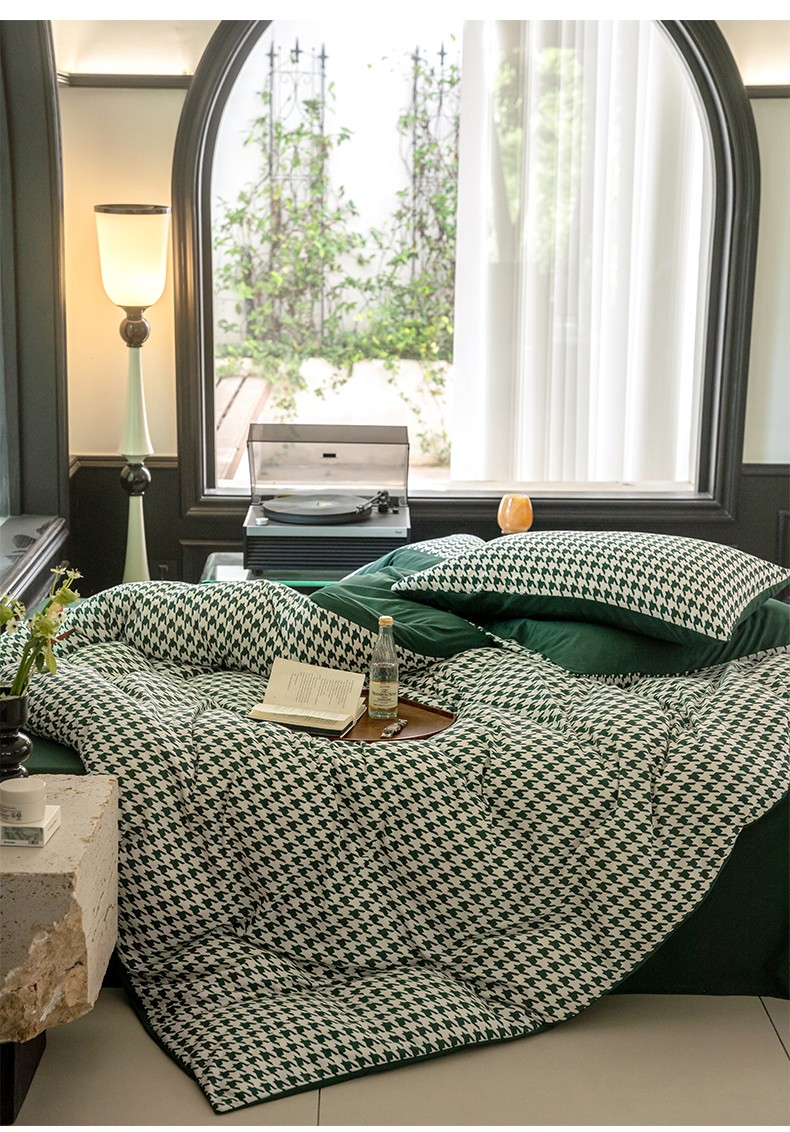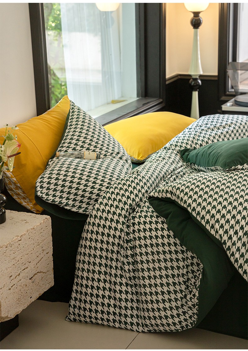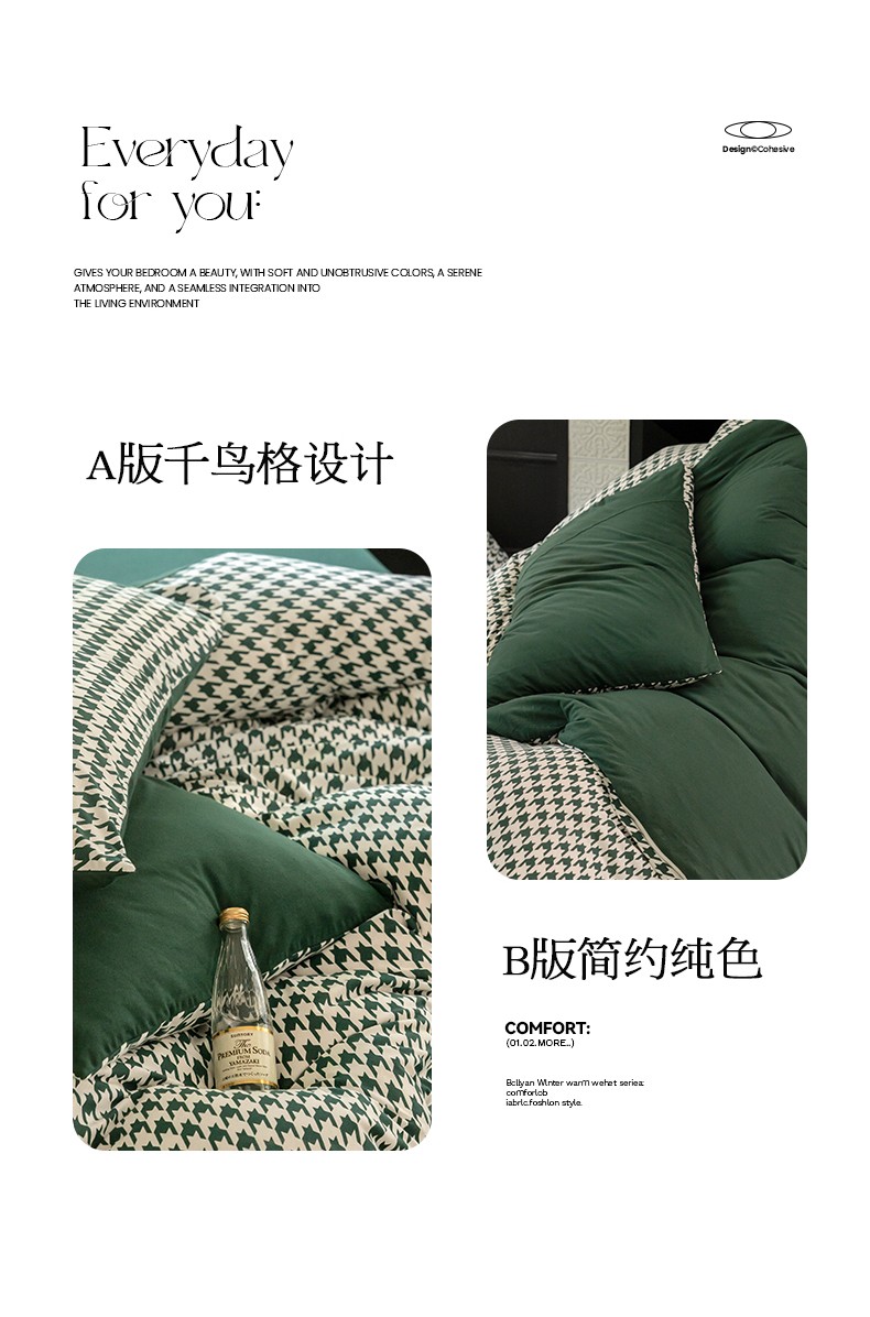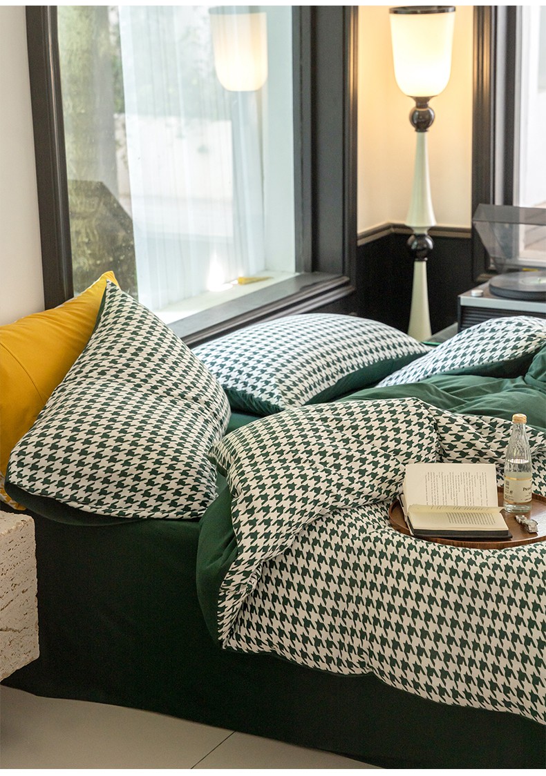 当前位置: 91家纺网 > 商品网购 > 床品套件 > 四件套 > 针织棉四件套 > 华超针织 2023新款针织棉千鸟格印花四件套 千鸟格墨绿