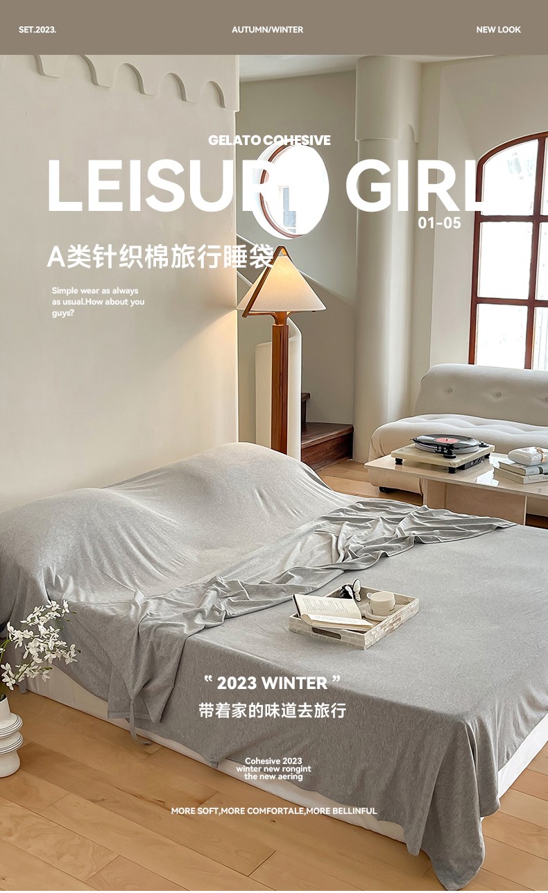 华超针织 2023新款A类针织棉旅行睡袋 麻灰纯