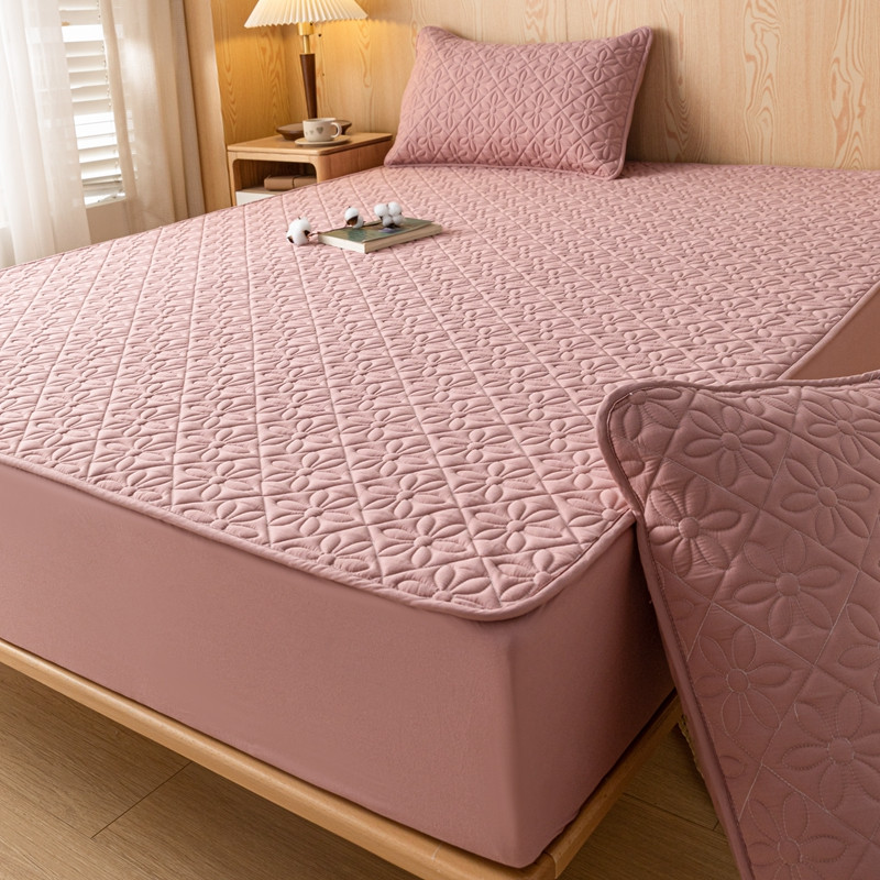 (总)鑫钰 2025新款A类纯棉夹棉床笠学生宿舍专用90x190-80x190-花漾山茶格,花漾山茶格-粉,花漾山茶格-蓝,花漾山茶格-灰
