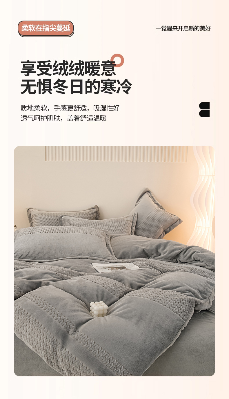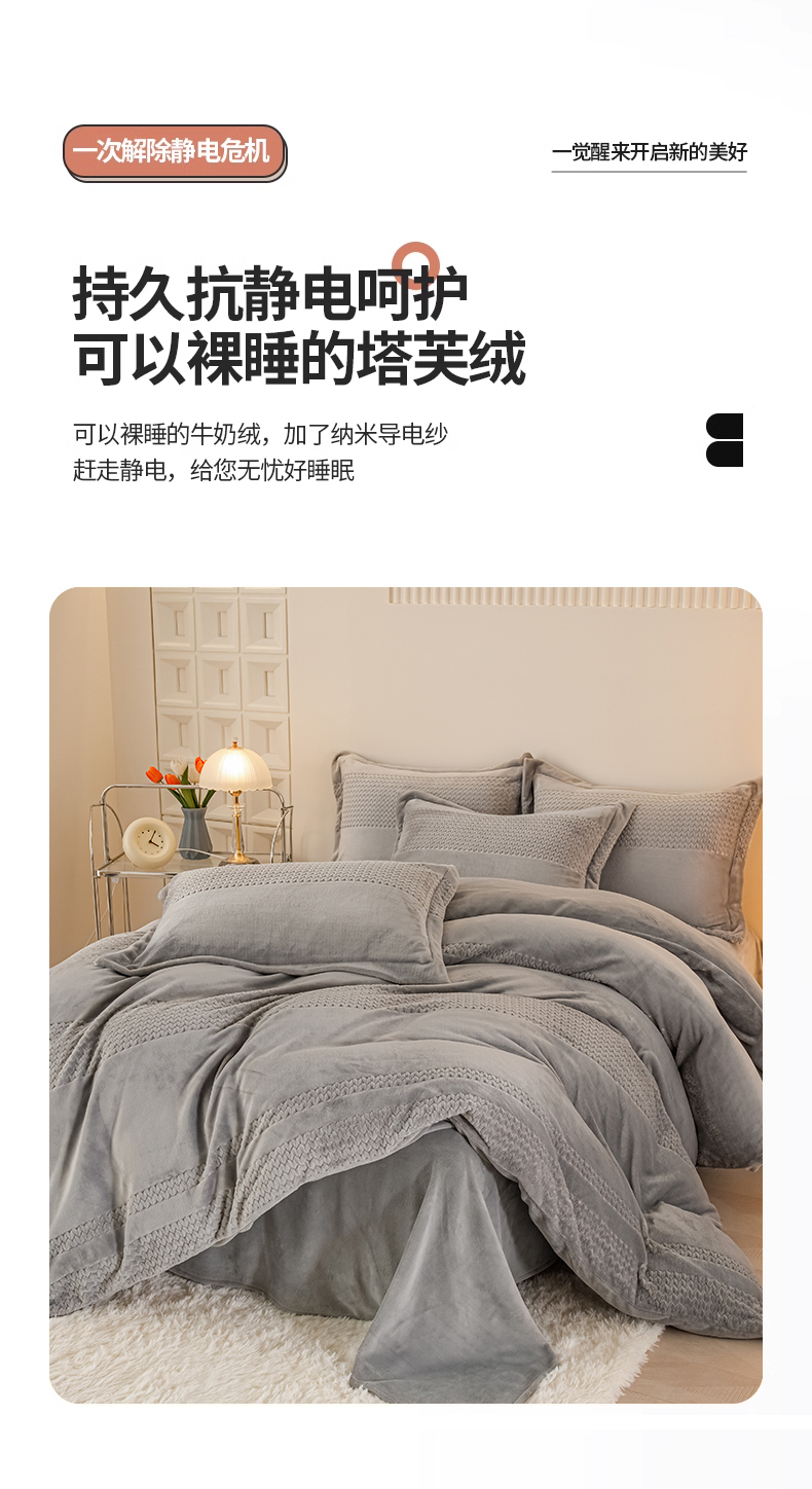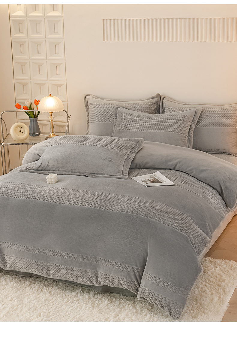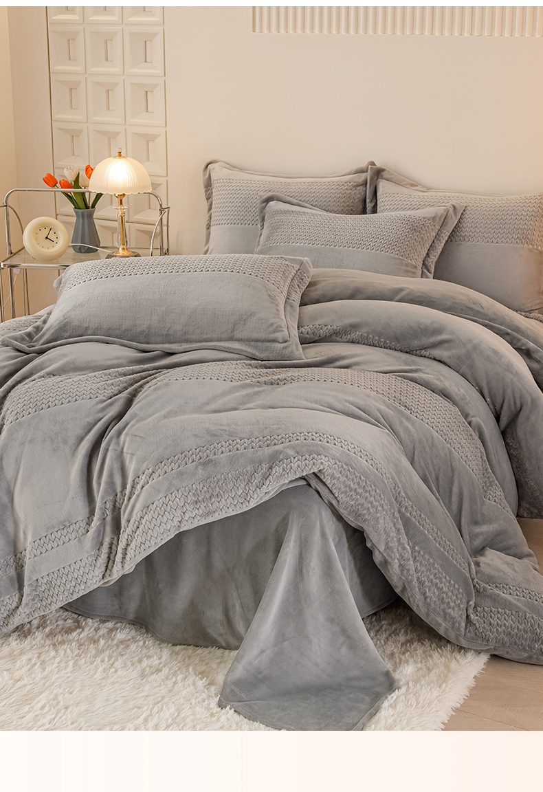 当前位置: 91家纺网 > 商品网购 > 床品套件 > 四件套 > 牛奶绒四件套 > 新品牛奶绒烂花230克四件套可定做 提花灰