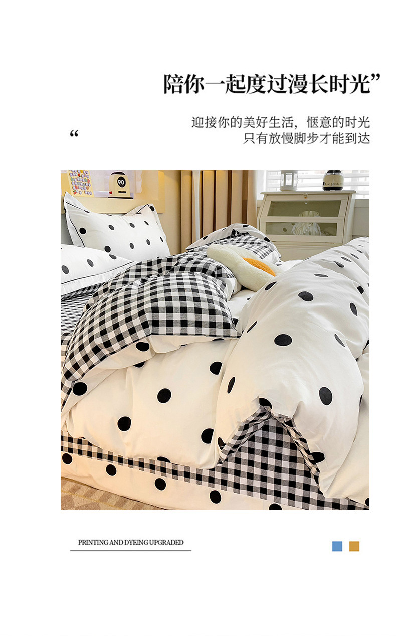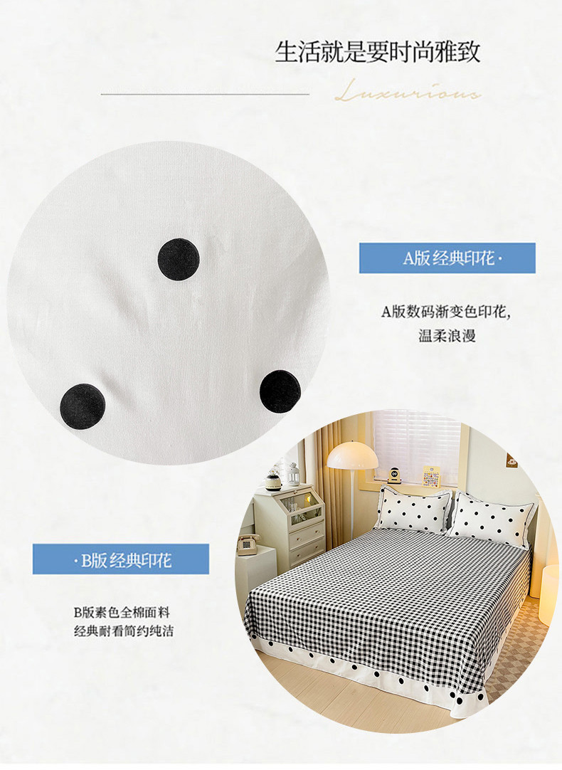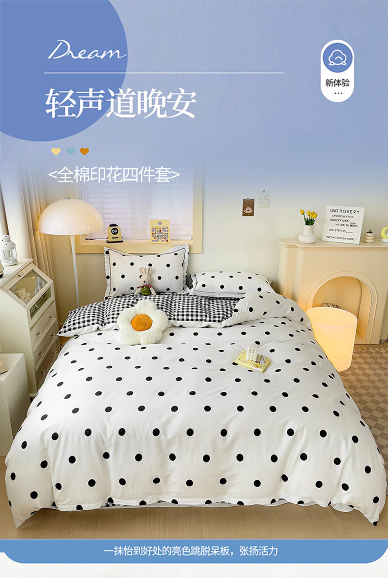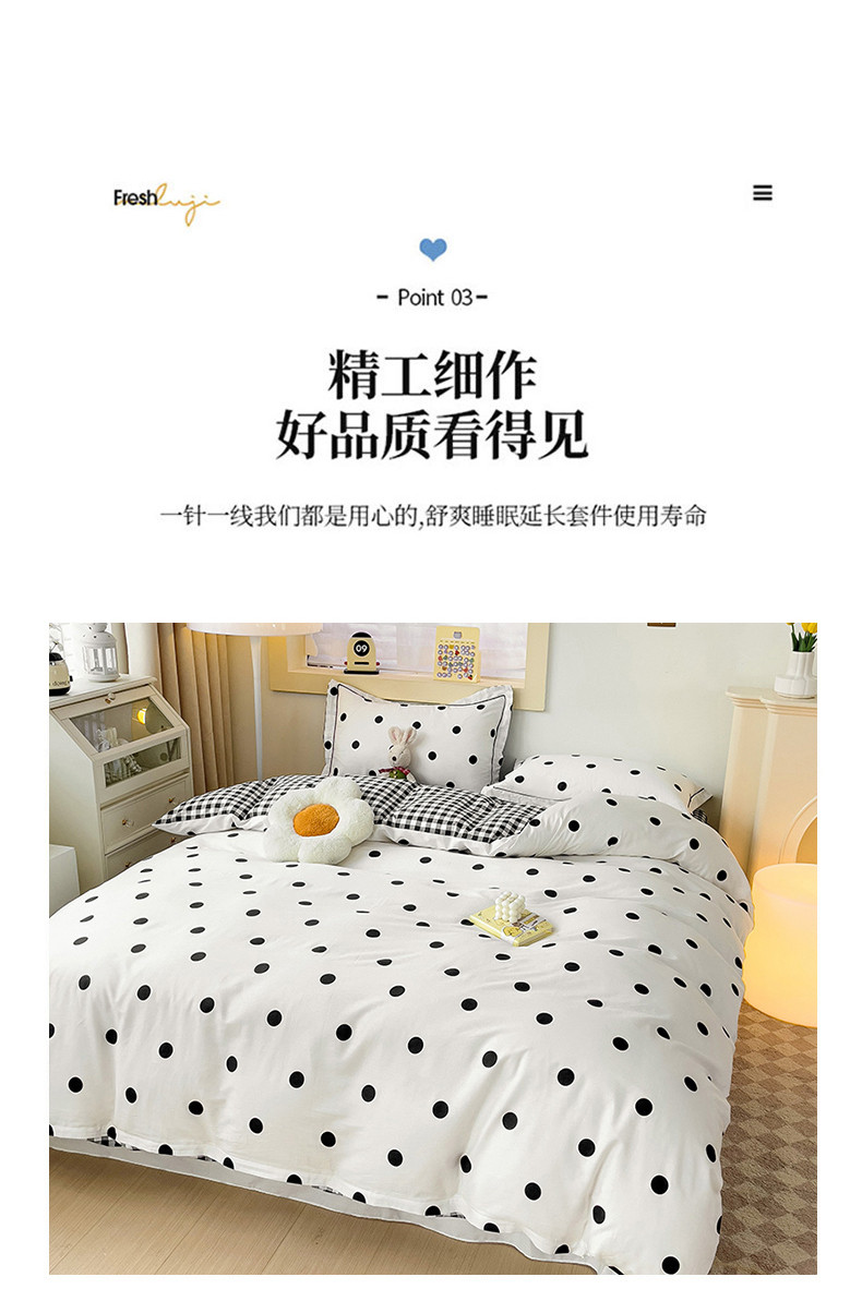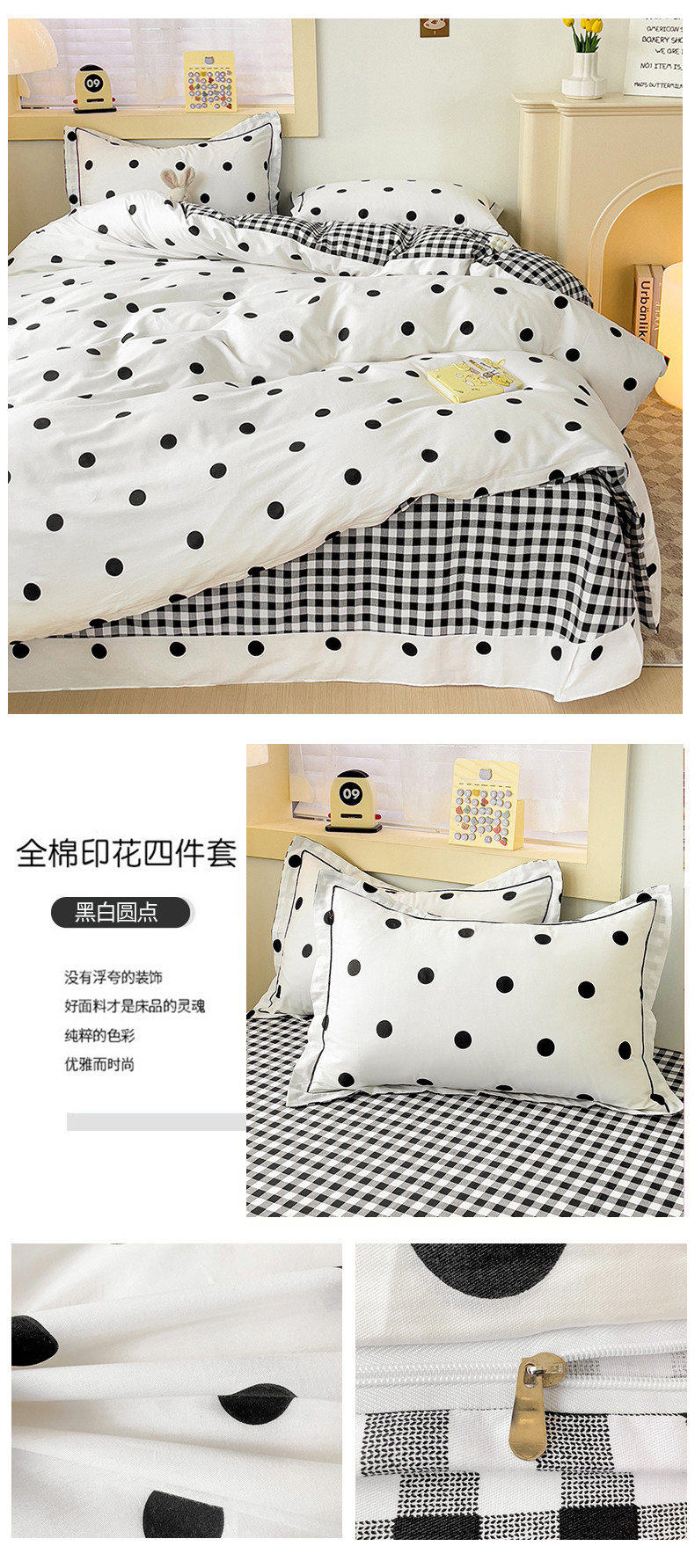 乐童家纺 2024新款网红直播爆款吊边+一字绣工艺款四件套(十一) 黑白圆点