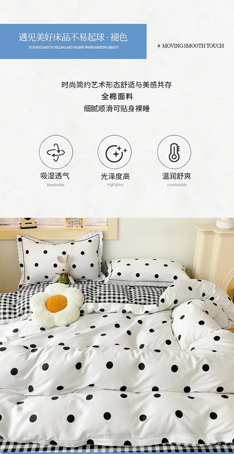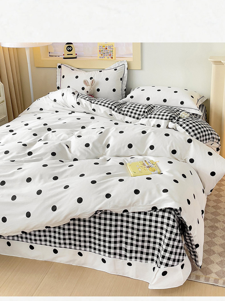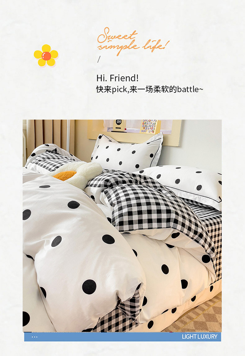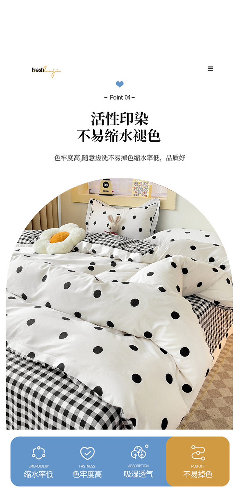 乐童家纺 2024新款网红直播爆款吊边+一字绣工艺款四件套(十一) 黑白圆点