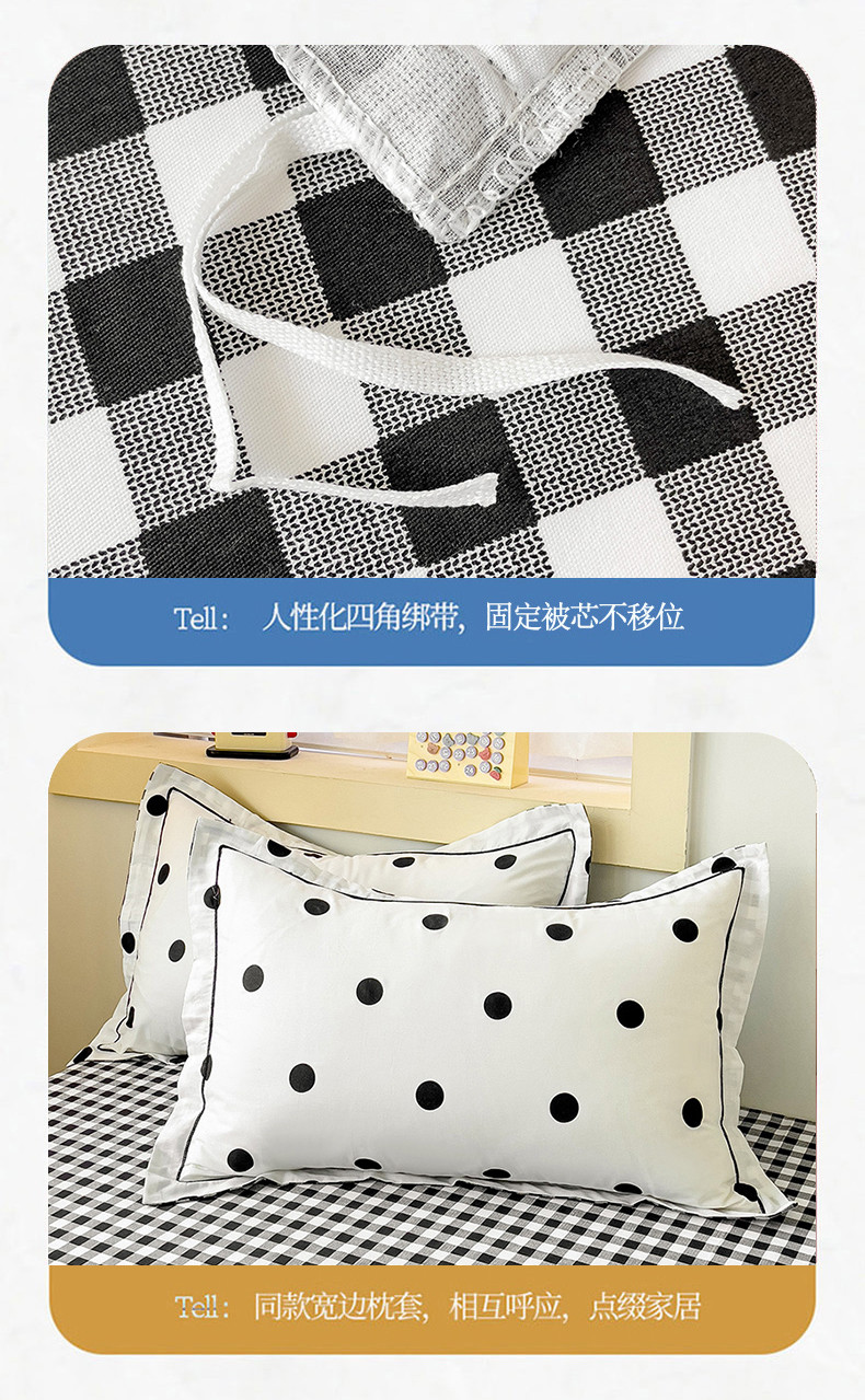 商品名称:乐童家纺 2024新款网红直播爆款吊边+一字绣工艺款四件套(十一) 黑白圆点
