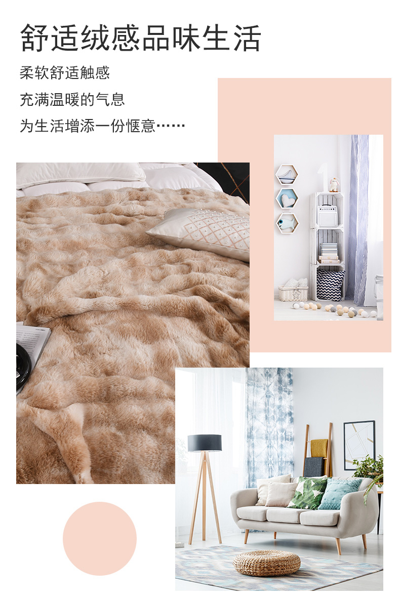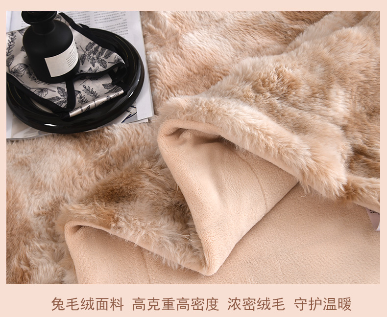 商品名称:2025新款托斯卡纳兔毛加厚双层毛毯晕染高端绒毯保暖毯子奢华沙发毯卡其色