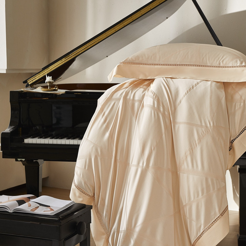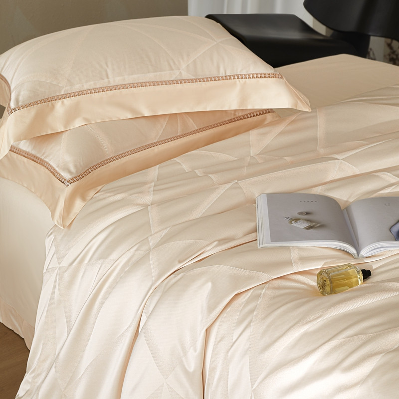 嘉恋 2023新款色织锦缎金银丝提花镂空四件套 几何-香槟