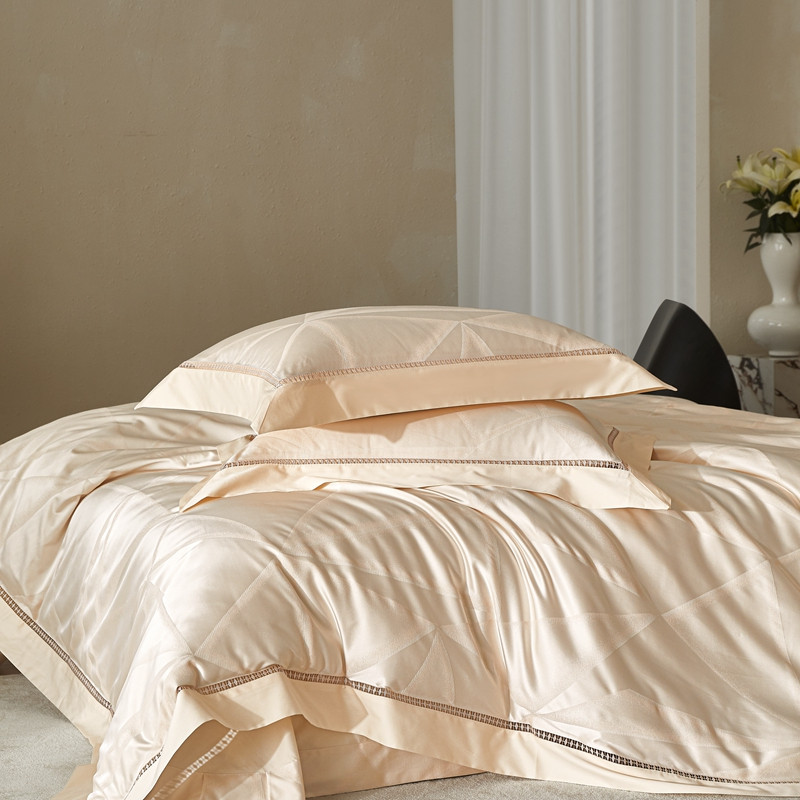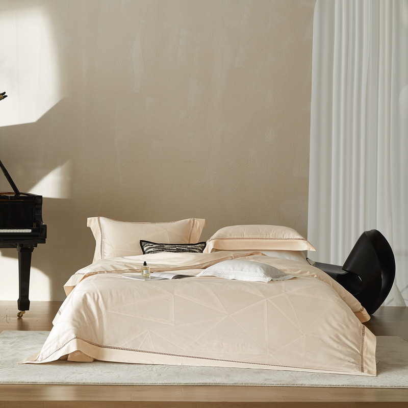 (总)嘉恋 2023新款100支全棉绣边四件套送礼盒包装-黄金几何,赤霞橘,香槟金