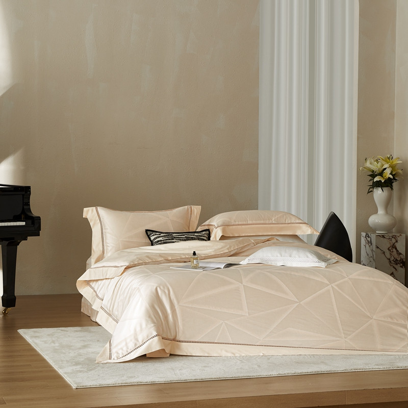 商品名称:嘉恋 2023新款色织锦缎金银丝提花镂空四件套 几何-香槟